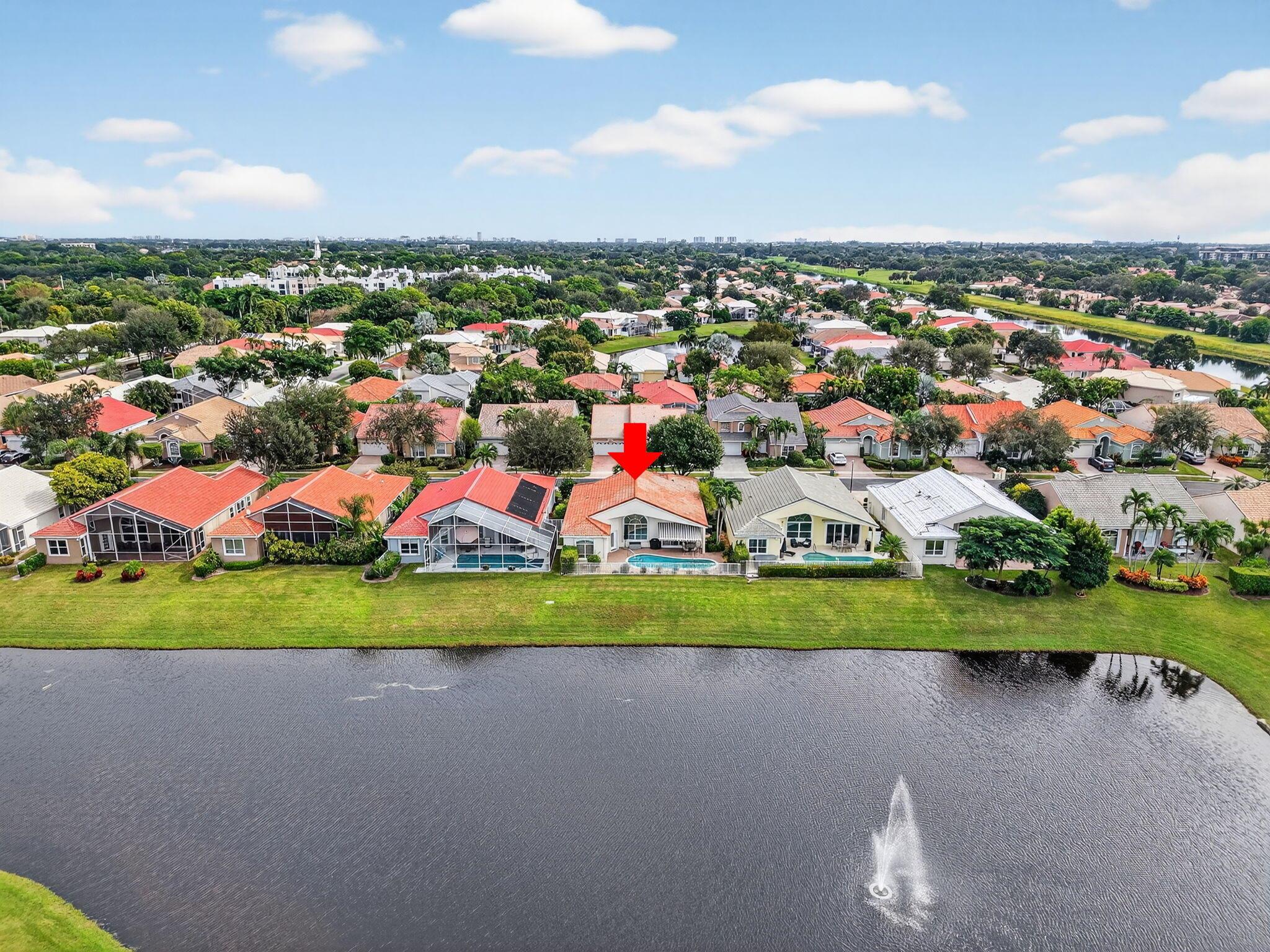 Enjoy the incredible sunset views overlooking the expansive lake & fountain from your own tropical paradise. The patio area has an electric awning which makes it so enjoyable on those bright days. Spotless and meticulously maintained 1-story home with 3 bedrooms & 2.1 baths plus 2-car garage. Ceramic tile and engineered wood flooring. Plantation shutters throughout. The kitchen has real wood cabinetry, granite counters & a full granite backsplash. The master bedroom features fully outfitted closets & en suite bath with dual sinks. New central vacuum system & new washer & dryer. Hurricane resistant garage door & accordion shutters.