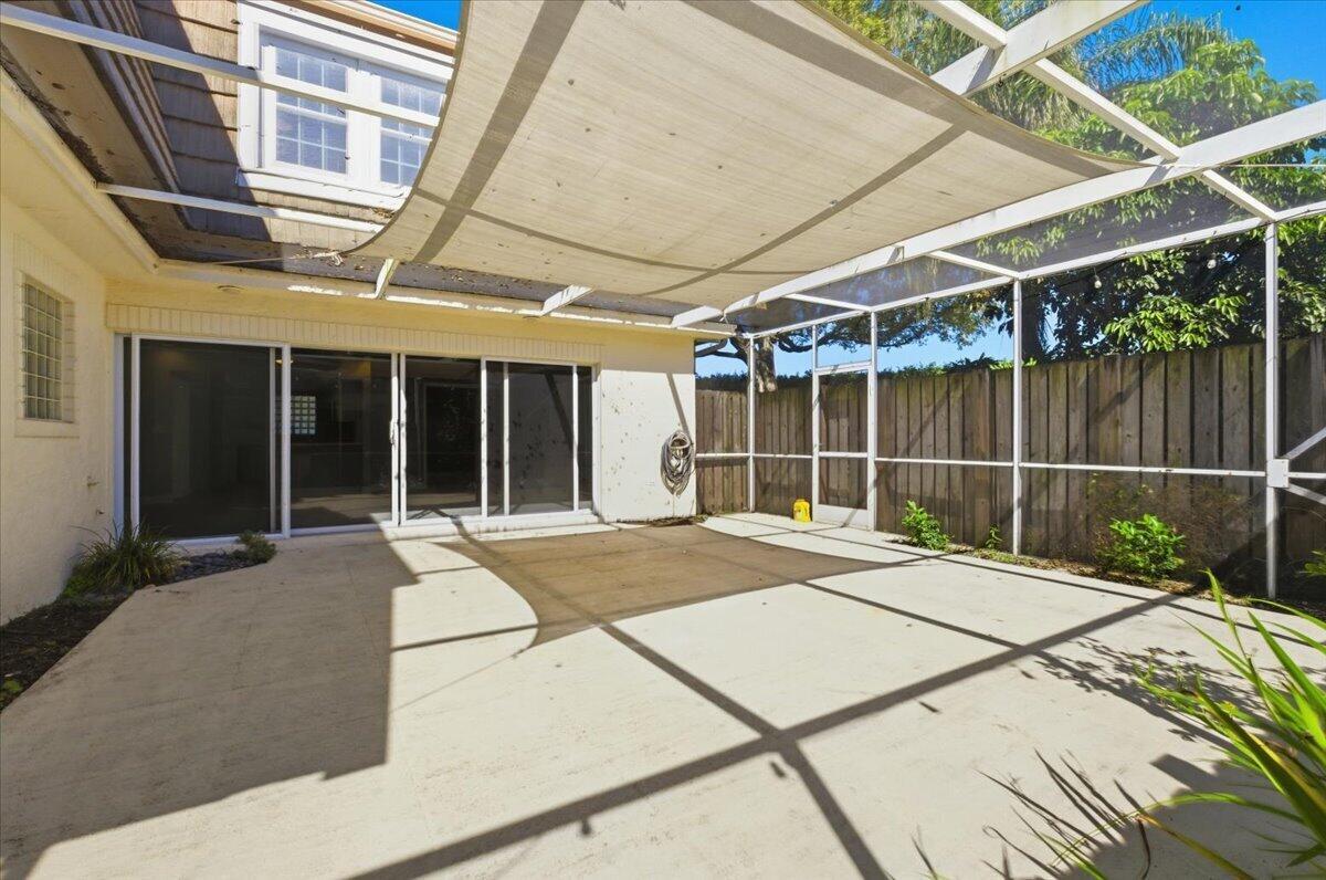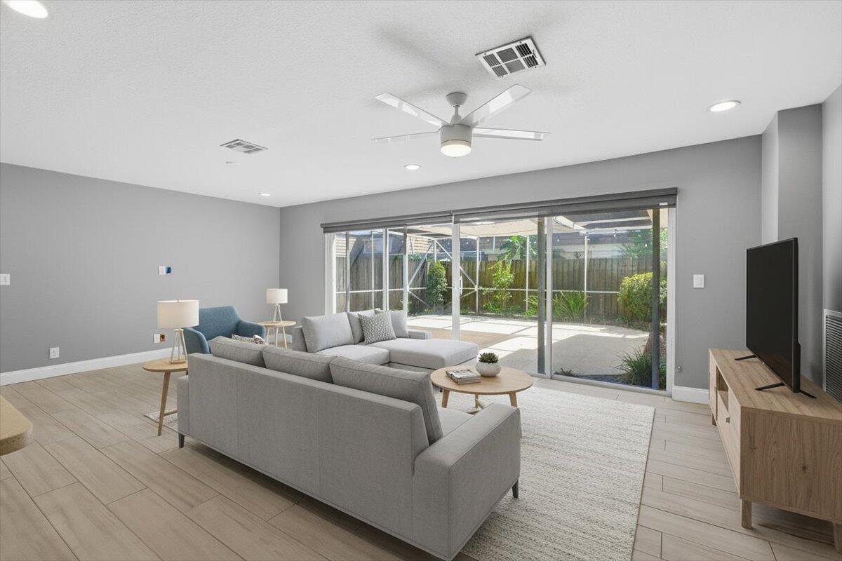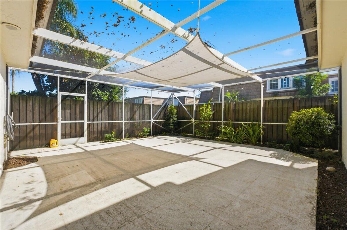 Beautifully updated 3-bedroom, 2.5-bath townhome in Winchester Courts. The open floor plan features light gray porcelain tile throughout the first floor, recessed LED lighting, and impact glass windows with solar shades on all windows. The kitchen includes white shaker cabinetry, quartz countertops, stainless steel appliances, and a large pantry. Sliding glass doors open to a spacious screened courtyard--perfect for outdoor dining or relaxing. Bathrooms feature modern tile and fixtures, and bedrooms offer generous closet space. The roof was replaced in 2023. Homeowners Insurance of $329 per month paid separate from HOA fee. Centrally located near shopping, dining, and major routes, this move-in ready home offers comfort, style, and convenience in a desirable community!