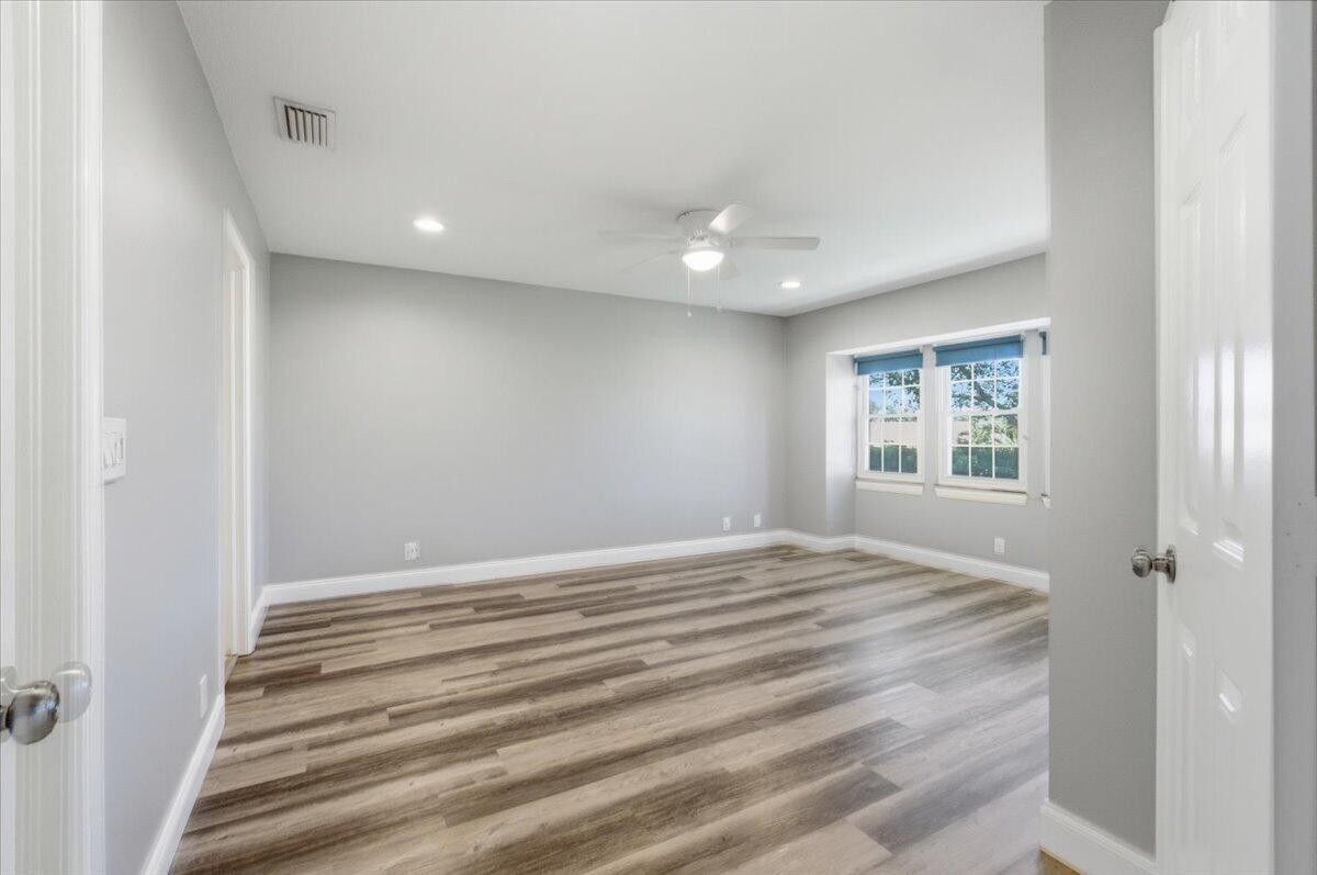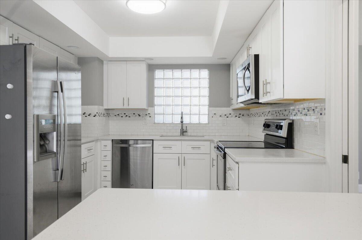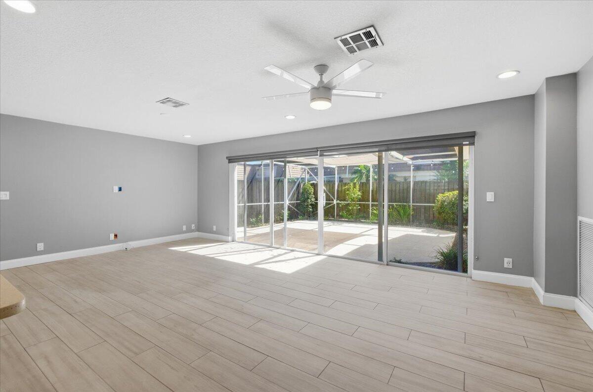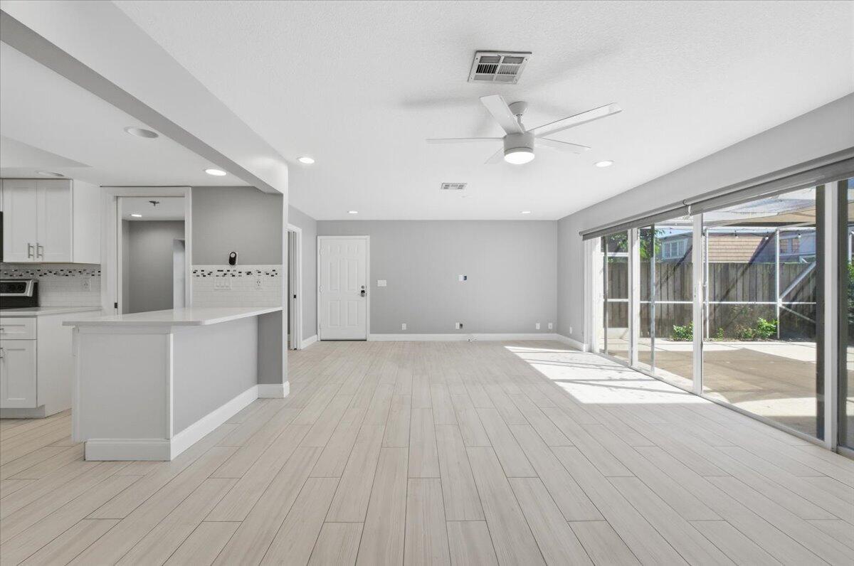 Beautifully updated 3-bedroom, 2.5-bath townhome in Winchester Courts. The open floor plan features light gray porcelain tile throughout the first floor, recessed LED lighting, and impact glass windows with solar shades on all windows. The kitchen includes white shaker cabinetry, quartz countertops, stainless steel appliances, and a large pantry. Sliding glass doors open to a spacious screened courtyard--perfect for outdoor dining or relaxing. Bathrooms feature modern tile and fixtures, and bedrooms offer generous closet space. The roof was replaced in 2023. Homeowners Insurance of $329 per month paid separate from HOA fee. Centrally located near shopping, dining, and major routes, this move-in ready home offers comfort, style, and convenience in a desirable community!