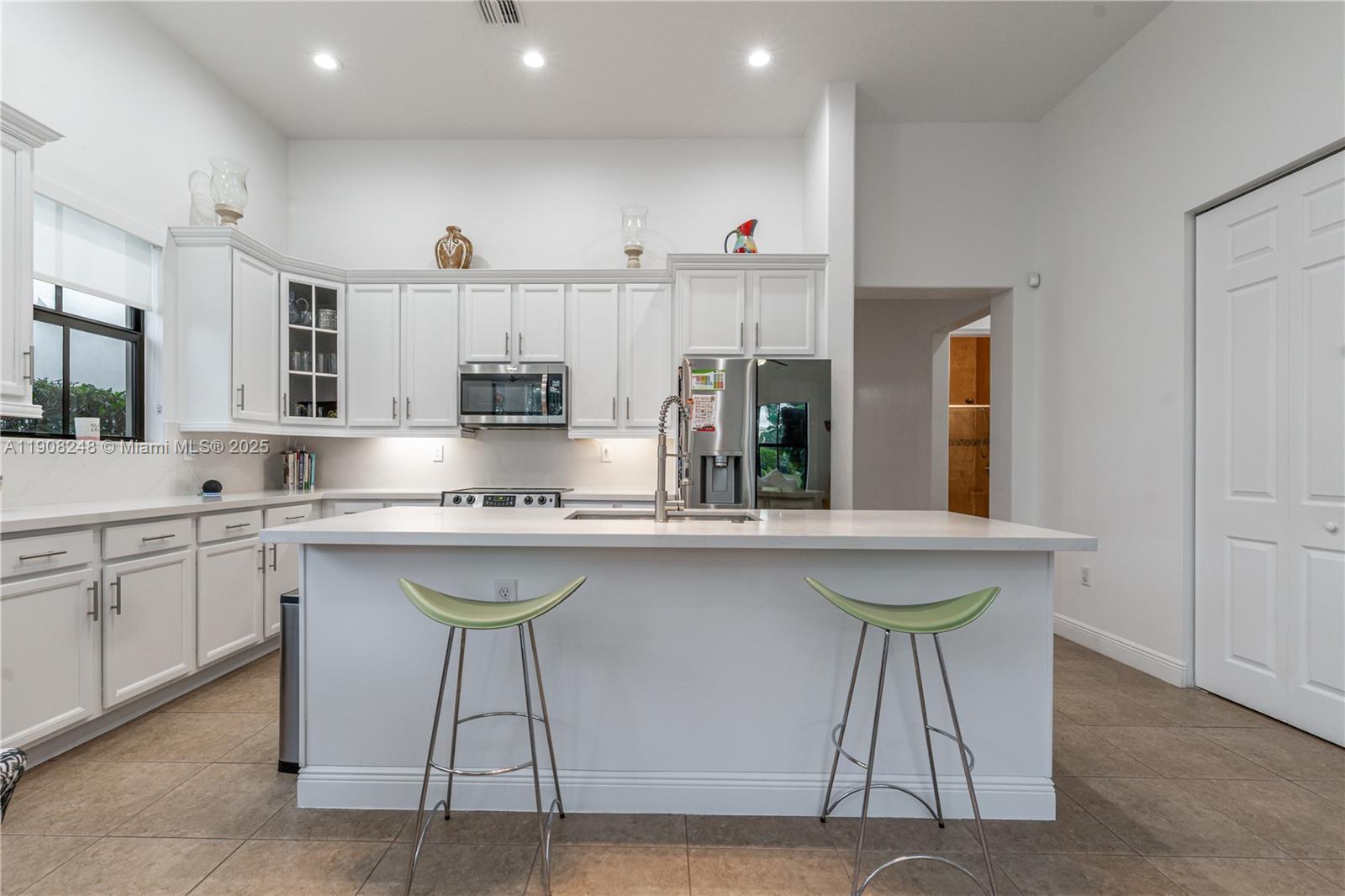GORGEOUS 4-BED, 3-BATH CHAPALA MODEL LOCATED IN THE LUXURIOUS GATED COMMUNITY OF MONTERRA! BRIGHT & FUNCTIONAL FLOORPLAN FEATURING TILE FLOORING & SOARING VOLUME CEILINGS THROUGHOUT. THE UPGRADED KITCHEN FEATURES QUARTZ COUNTERTOPS, WHITE SHAKER CABINETS, STAINLESS STEEL APPLIANCES, & OPENS TO THE SPACIOUS LIVING AREA - PERFECT FOR ENTERTAINING! ENJOY PEACE OF MIND WITH IMPACT WINDOWS & DOORS THROUGHOUT & A BRAND NEW A/C UNIT (2025). THE BACKYARD IS YOUR PRIVATE RETREAT! FEATURING A HEATED POOL, MOTORIZED RETRACTABLE AWNING, & TRANQUIL WATER VIEWS IN A FULLY FENCED SETTING. MONTERRA OFFERS RESORT-STYLE AMENITIES INCLUDING A CLUBHOUSE, POOL, FITNESS CENTER, TENNIS & BASKETBALL COURT, DOG PARK, & MORE. PRIME LOCATION CLOSE TO A+ SCHOOLS, MAJOR HIGHWAYS, & EXCELLENT SHOPPING & DINING OPTIONS!