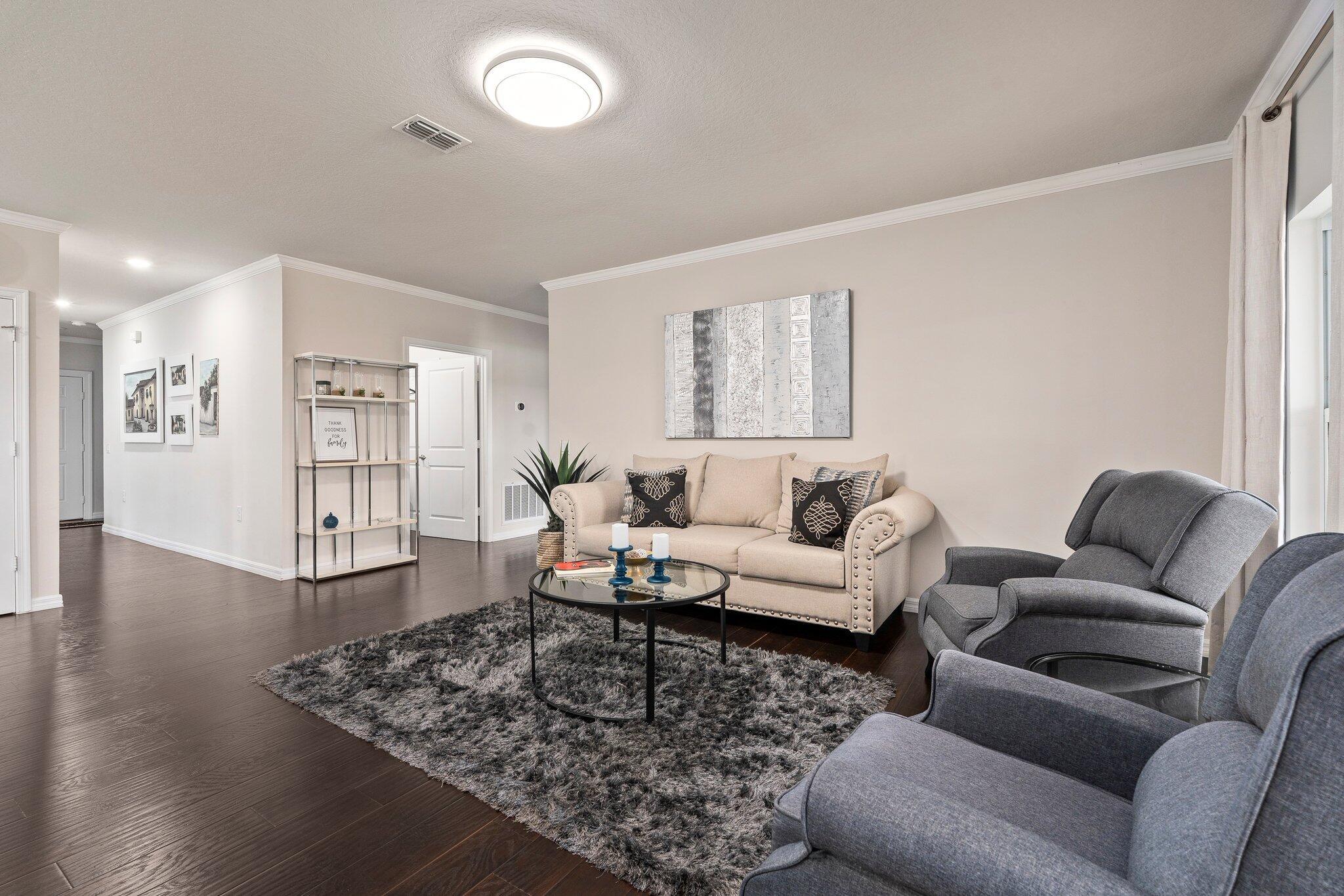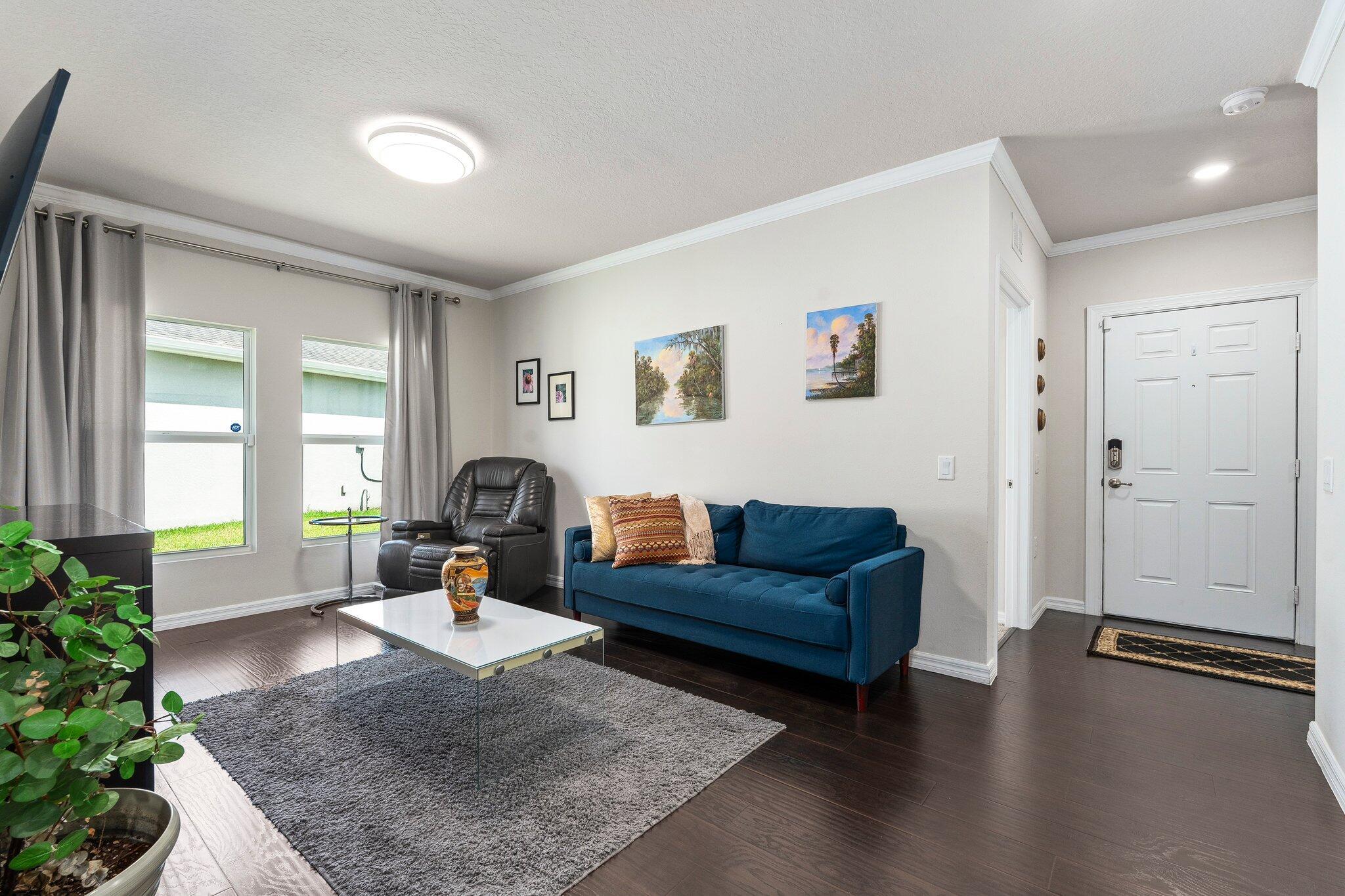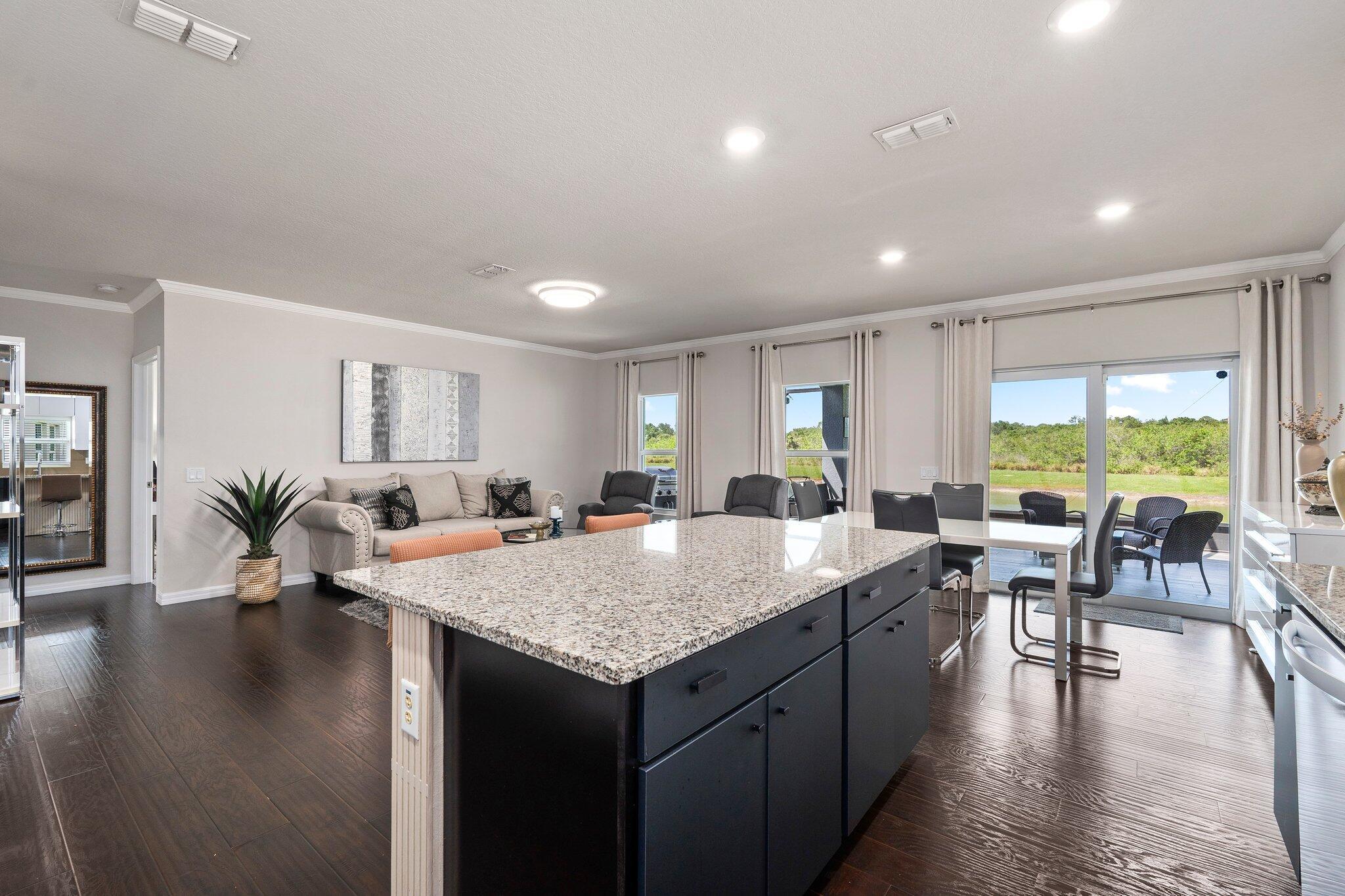 Check out this upgraded 3-bedroom, 2-bath home in the gated Carriage Pointe community. The widened driveway and custom stonework out front give it great curb appeal, and the tiled walkway leads you right to the front door.Inside, you'll find a modern kitchen with granite countertops, brand-new appliances, and easy-access roll-out drawers in the cabinets. Crown molding and updated light fixtures add a nice touch throughout, and impact windows help with safety, quiet, and lower energy bills.The community includes a playground, picnic areas and a dog park--perfect for kids and pets. With peaceful lake views and thoughtful upgrades, this home is ready for you to move in and enjoy.