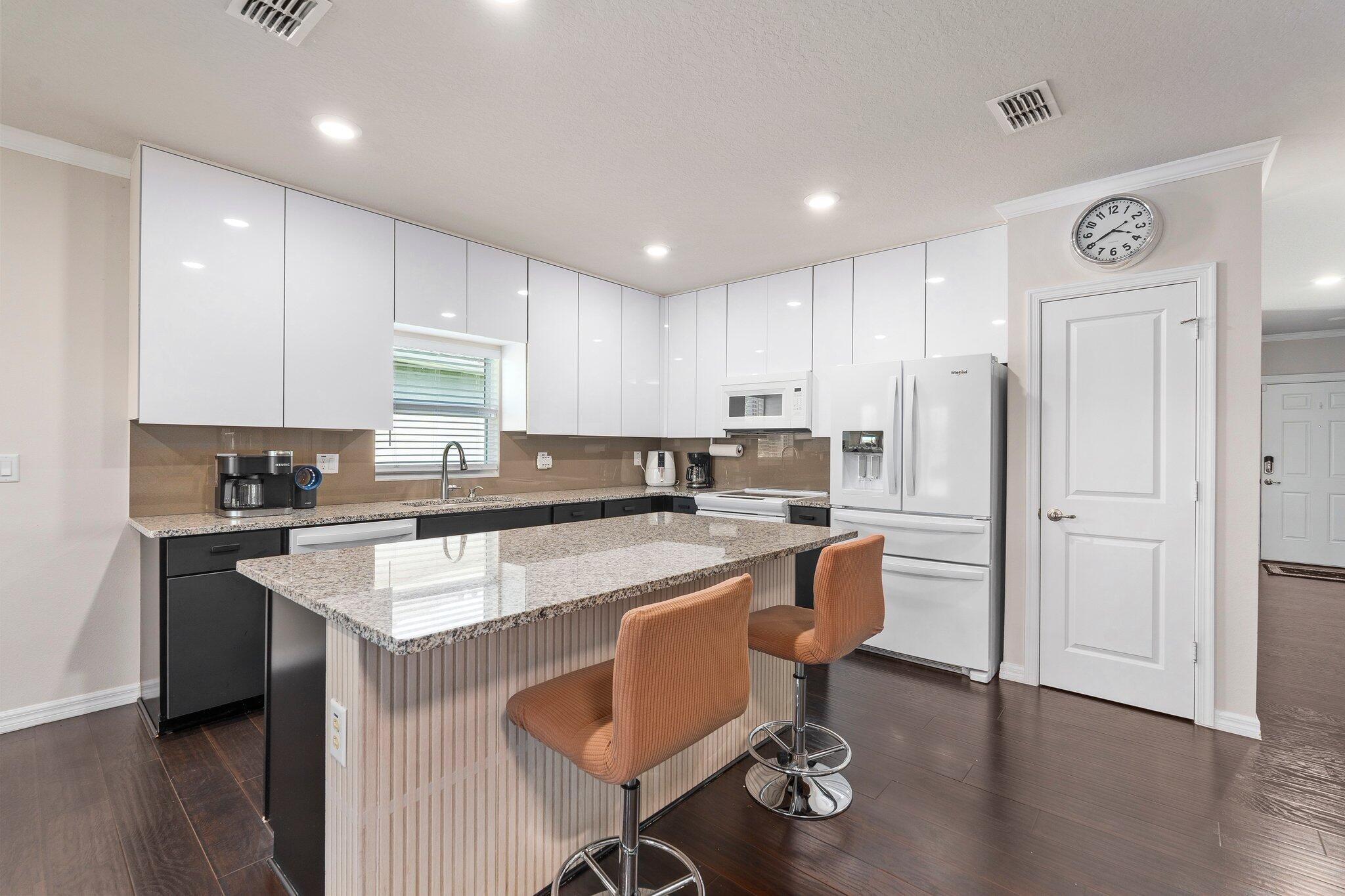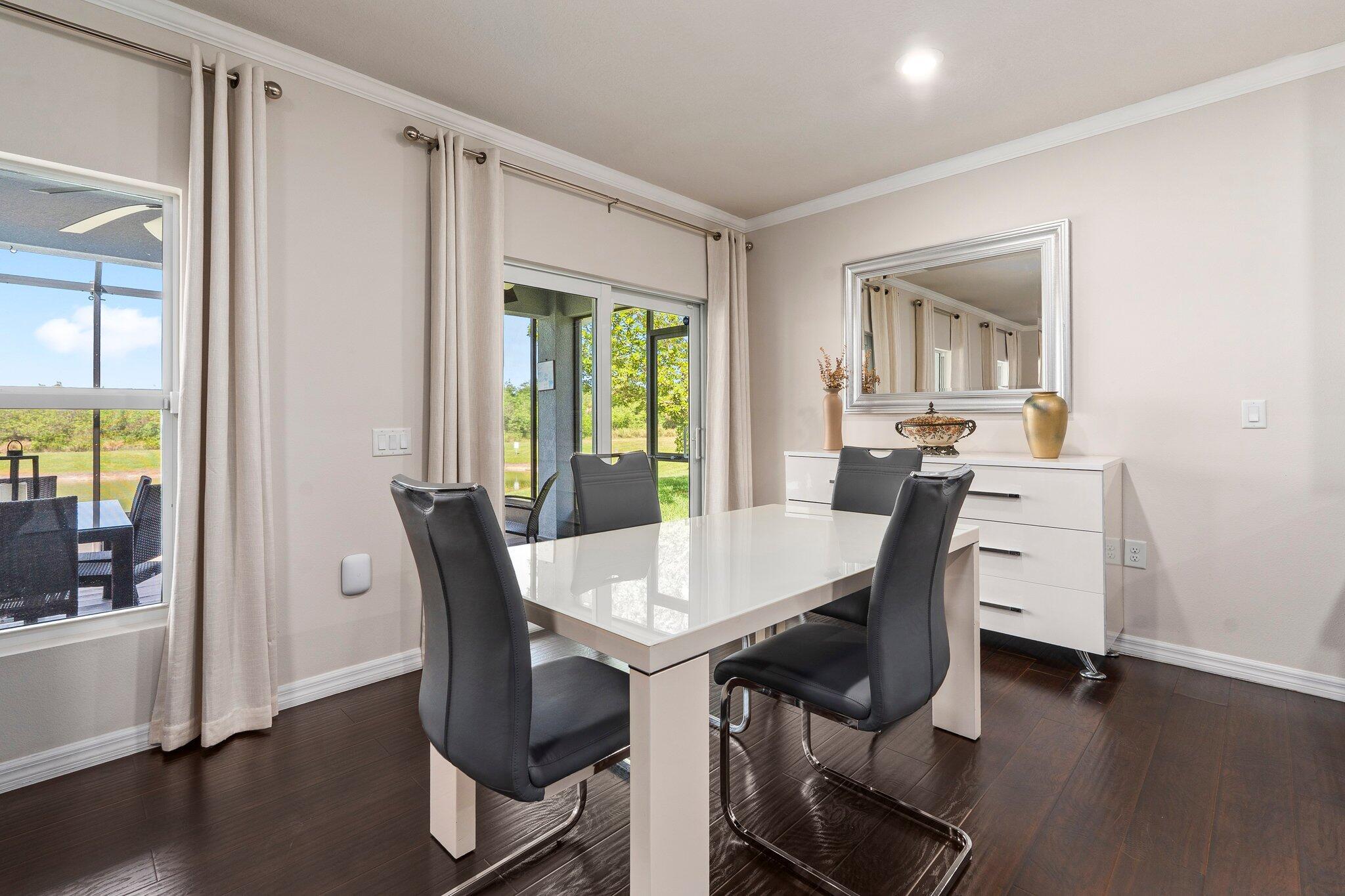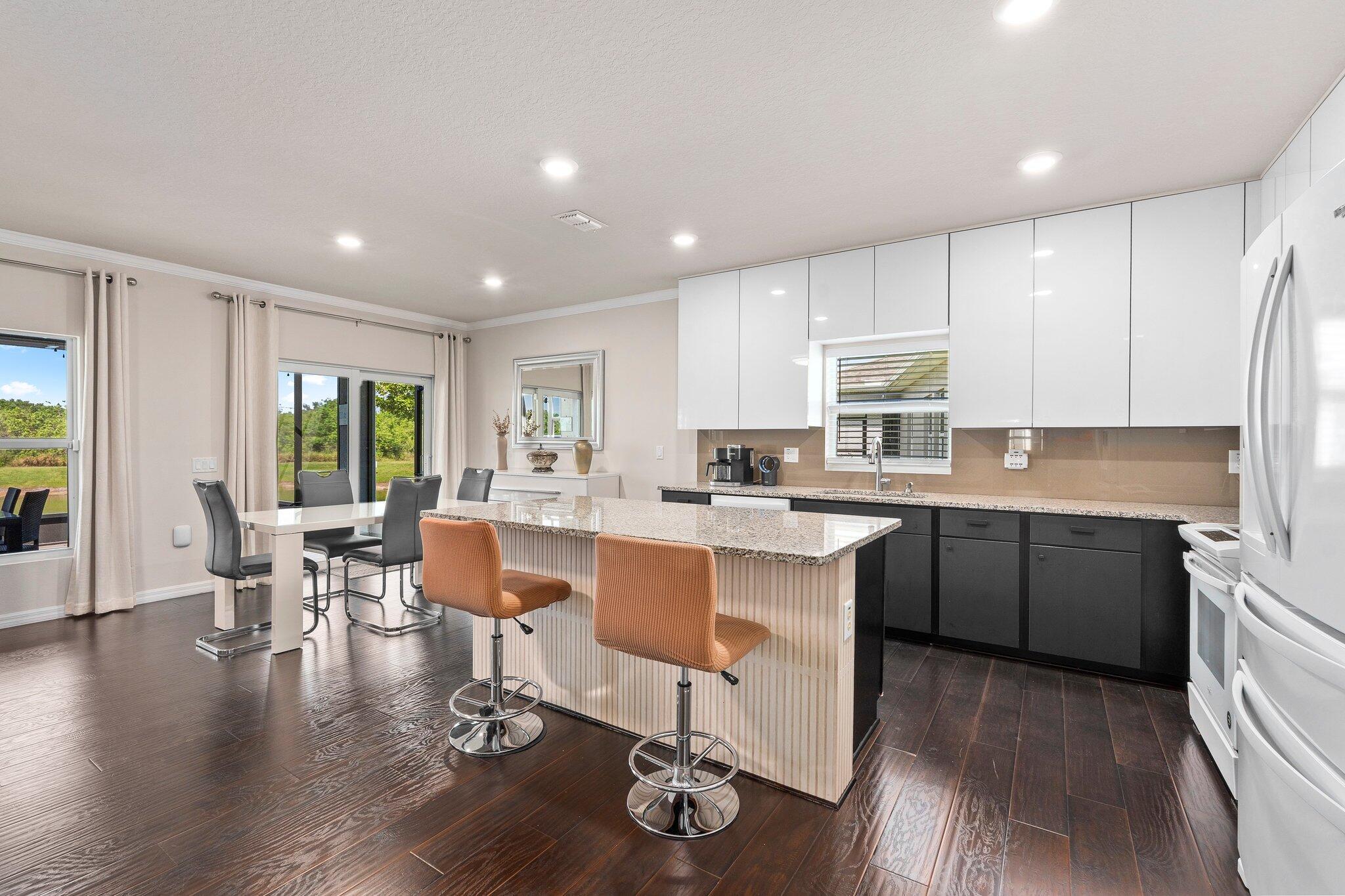 Check out this upgraded 3-bedroom, 2-bath home in the gated Carriage Pointe community. The widened driveway and custom stonework out front give it great curb appeal, and the tiled walkway leads you right to the front door.Inside, you'll find a modern kitchen with granite countertops, brand-new appliances, and easy-access roll-out drawers in the cabinets. Crown molding and updated light fixtures add a nice touch throughout, and impact windows help with safety, quiet, and lower energy bills.The community includes a playground, picnic areas and a dog park--perfect for kids and pets. With peaceful lake views and thoughtful upgrades, this home is ready for you to move in and enjoy.
