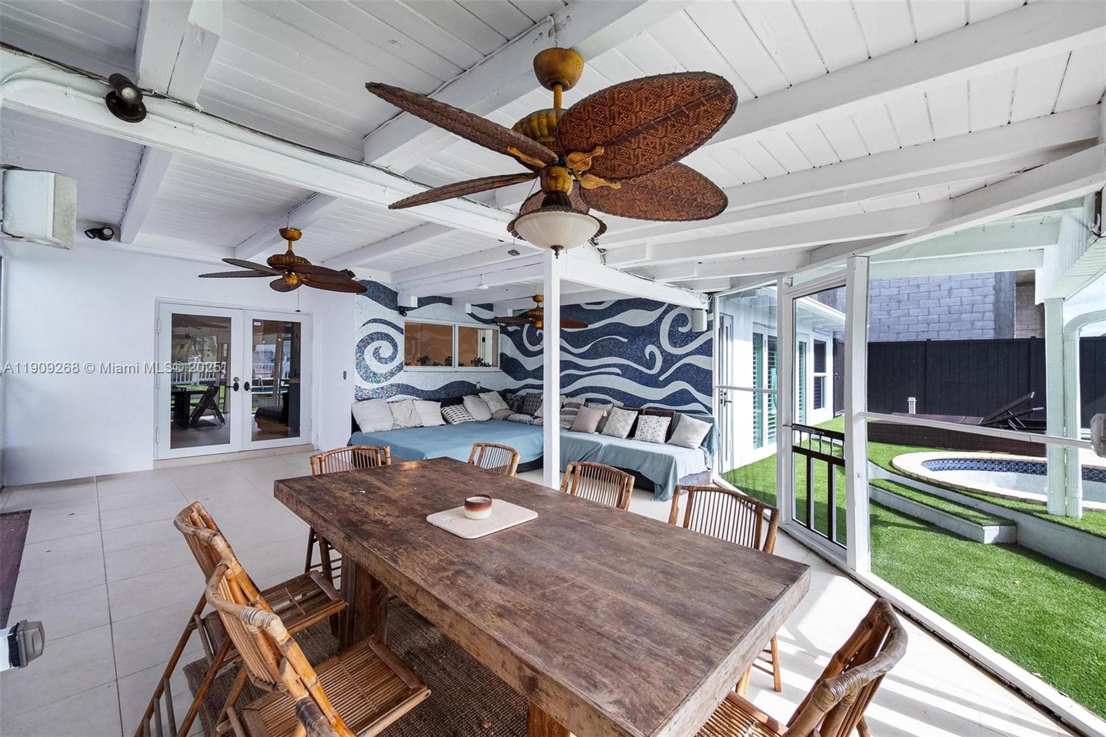 Belle Meade waterfront—deep canal with direct access to Biscayne Bay and the ocean. Remodeled 4BR/2BA with high exposed-wood ceilings, gourmet kitchen, and wide water/garden views. Outdoor living shines: screened porch, expansive deck, pool, spa, and lush landscaping. Approx. 50 ft of frontage with full dock. Set inside a 24-hr guarded, historic gated enclave offering rare privacy and tropical surroundings, minutes to the Design District, Downtown, and beaches. Surrounded by new construction—strong upside and rental potential. Easy to show.