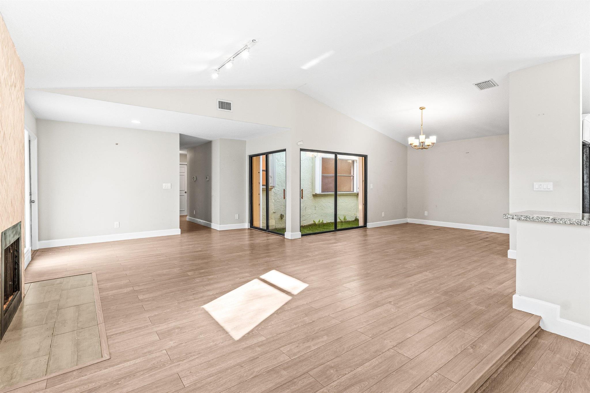 NEW TO MARKET:Updated Home with Oversized Lot!!Welcome to this light-filled contemporary home offering comfort, style, and modern upgrades throughout. Featuring 3 generously sized bedrooms and 2 updated bathrooms, this home has a spacious open-concept layout, perfect for both everyday living and entertaining.The modern open kitchen is a true highlight, complete with stainless steel appliances, white Shaker cabinetry with plenty of space for cooking and hosting guests. Adjacent are the large living and dining areas, filled with natural light and ideal for gatherings. The floor to ceiling herringbone tiled fireplace is a chic focal point. Through French doors you'll find a large screened patio, perfect for relaxing with family and friends. The 10,000+sf lot has room for a pool