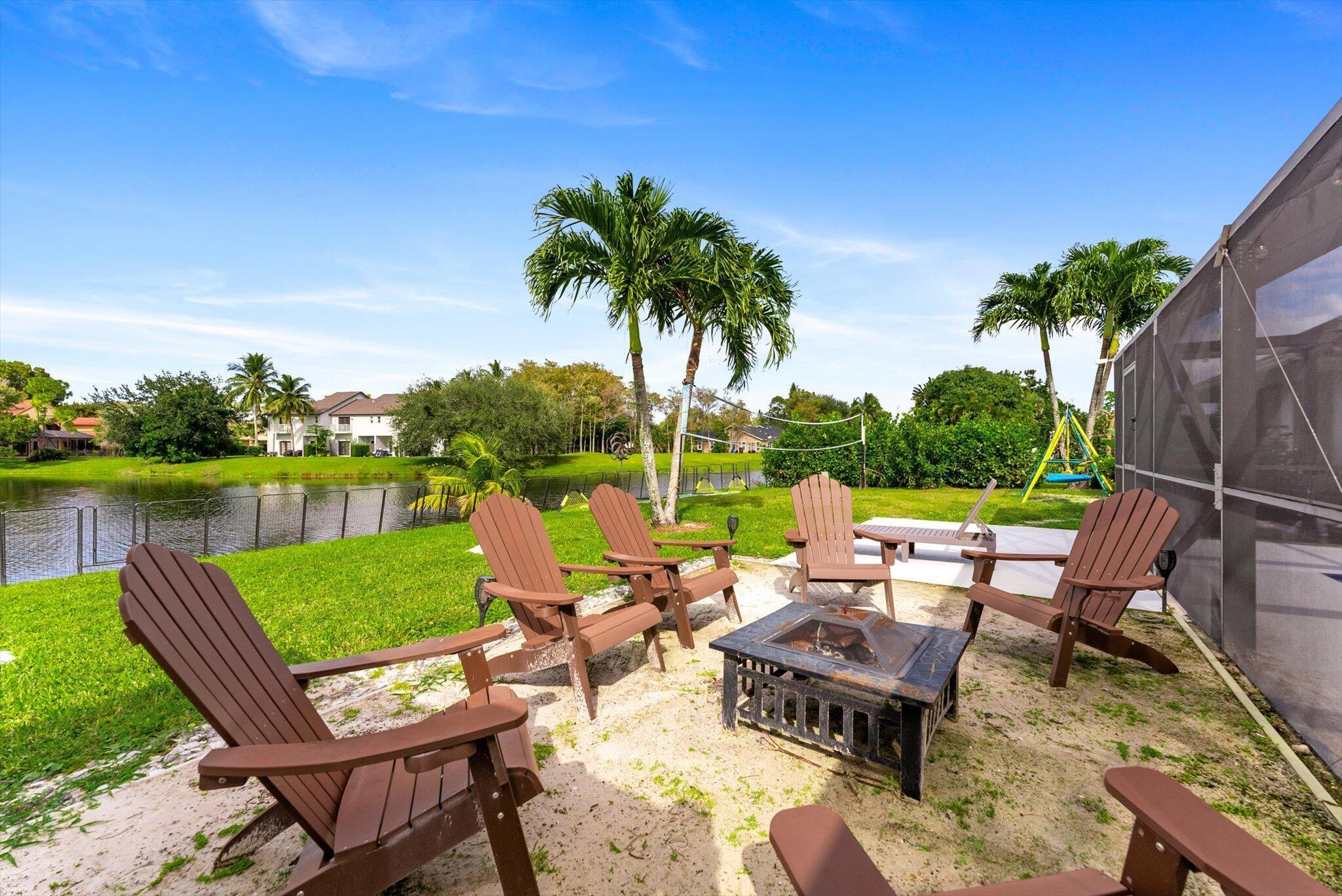 Beautifully renovated, Contemporary 5-bedroom single-story home with serene lake views from front to back! Modern open kitchen w/ chef's island, natural stone counters, stainless appliances, luxury cooktop with vent hood. Spacious family room and Dinning area connected to kitchen. Modern LED lighting. Primary suite with large walk-in shower, electric fireplace for luxury spa vibes and custom walk in closet. Expansive screened patio with heated pool, covered lanai, and full summer kitchen. Beyond the screen pool is a large backyard overlooking panoramic lake views. Accordion storm shutters on the windows, auto sprinkler system. Split floorplan. AC 2022, WH 2023, New pool heater, whole-home Generac. Move right in and feel like you're on vacation. Furniture is negotiable. No HOA.