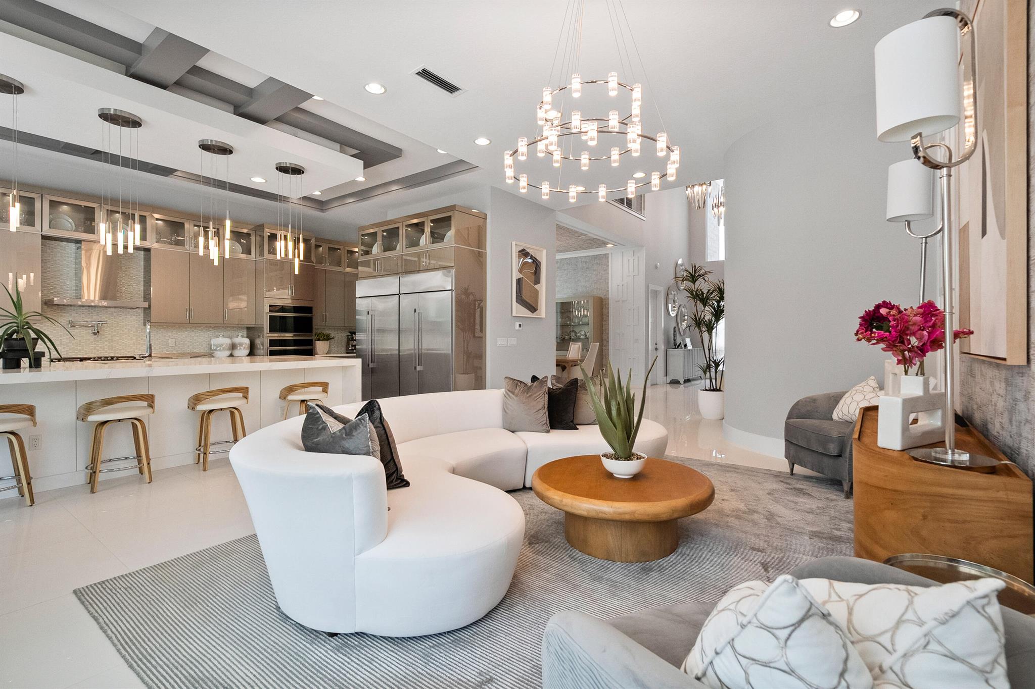 Presenting 4210 Mendel Lane - a breathtaking, move-in-ready designer model home featuring 5 bedrooms, 5.5 bathrooms, and 5,100+ square feet of modern sophistication. Every detail has been meticulously curated from gleaming white marble floors and dramatic coffered ceilings to custom millwork, designer lighting, and a chef's kitchen equipped with premium, top-tier appliances.This residence is a showcase of refined elegance and thoughtful design. Each spacious bedroom offers a private en suite bath with stunning tilework, while the expansive first-floor primary suite is a true sanctuary, complete with a spa-inspired bath, freestanding soaking tub, frameless glass shower, and custom-built walk-in closet.Additional highlights include two sun-filled laundry