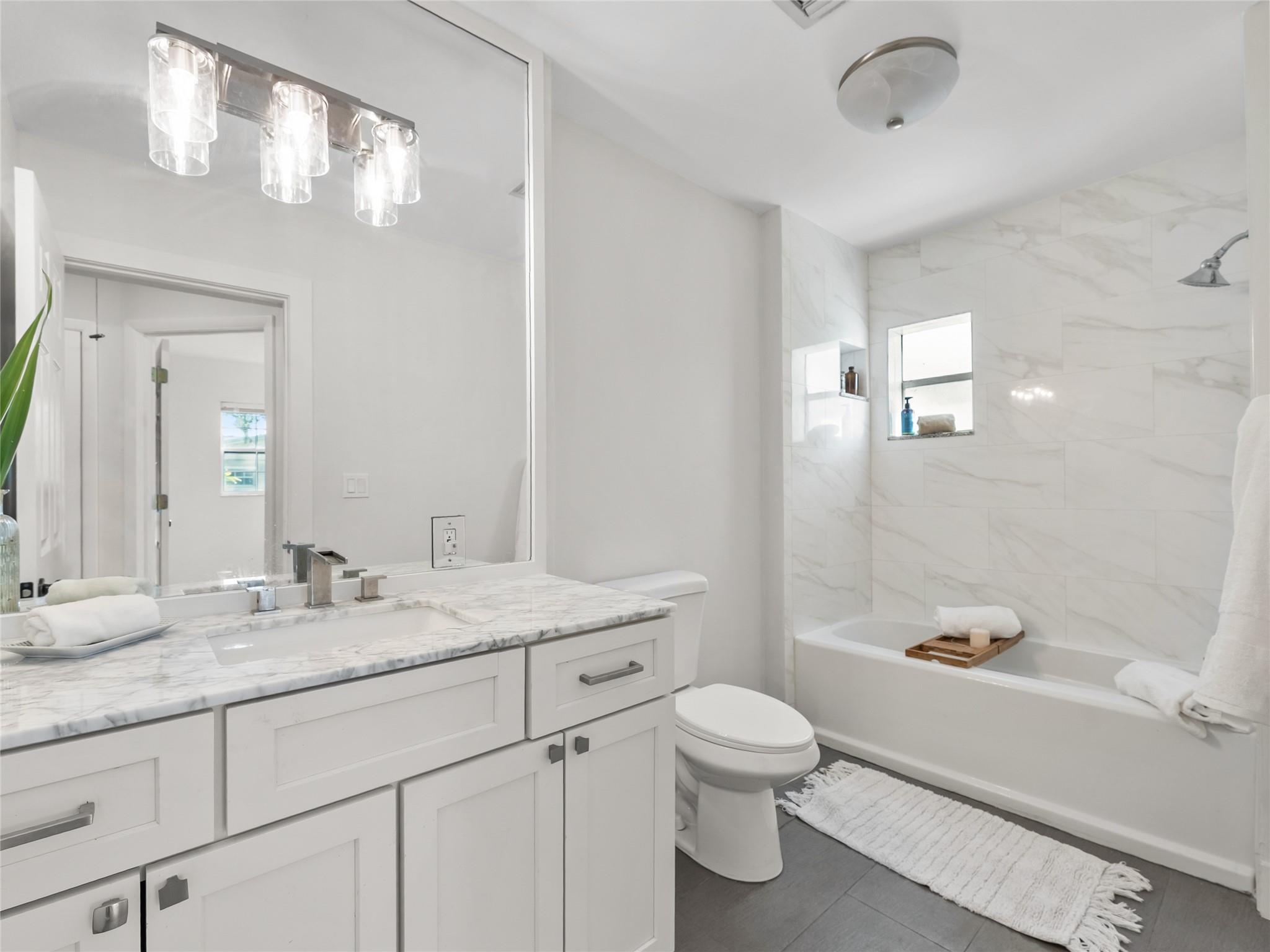 Florida coastal meets rustic farmhouse in this meticulously maintained CBS 4 bedroom / 3 bath home. Situated on a 1/2 acre lot in a secluded, yet convenient location to all that Vero has to offer. 2021 Roof, 2021 AC, 2021 Tankless Gas HWH. Newer appliances, island kitchen with custom light maple cabinetry, gas fireplace, and Saltillo tile. This open concept home has many more upgrades done with great attention to detail throughout. Split bedroom floorplan and the 4th bedroom could also be used as an in-law suite with a separate entry. A large screened in back porch overlooks a fenced yard with a firepit and ample room for a pool. There is also an oversized brick paver area for an RV, Boat, Jet skis, or additional parking for gatherings. Just minutes to the beach, shops, and dining.