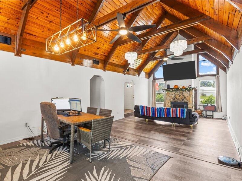 Welcome home- this beautiful 4-bed 2-bath pool home is ready for its new owner. The main living area features an appealing open concept highlighted by dramatic vaulted cedar ceilings. Enjoy relaxing your private heated pool with dual spas. The location is unbeatable: situated across the street from the United States Submarine Veterans Park, offering the scenic lake walking path and playground. A/C -23 Water Heater-23 Elc-22 Pool Htr-22 Roof-15