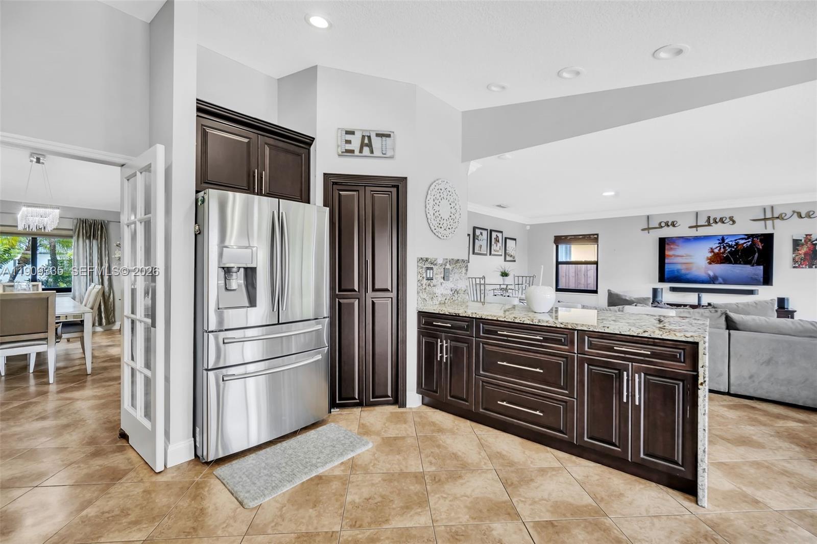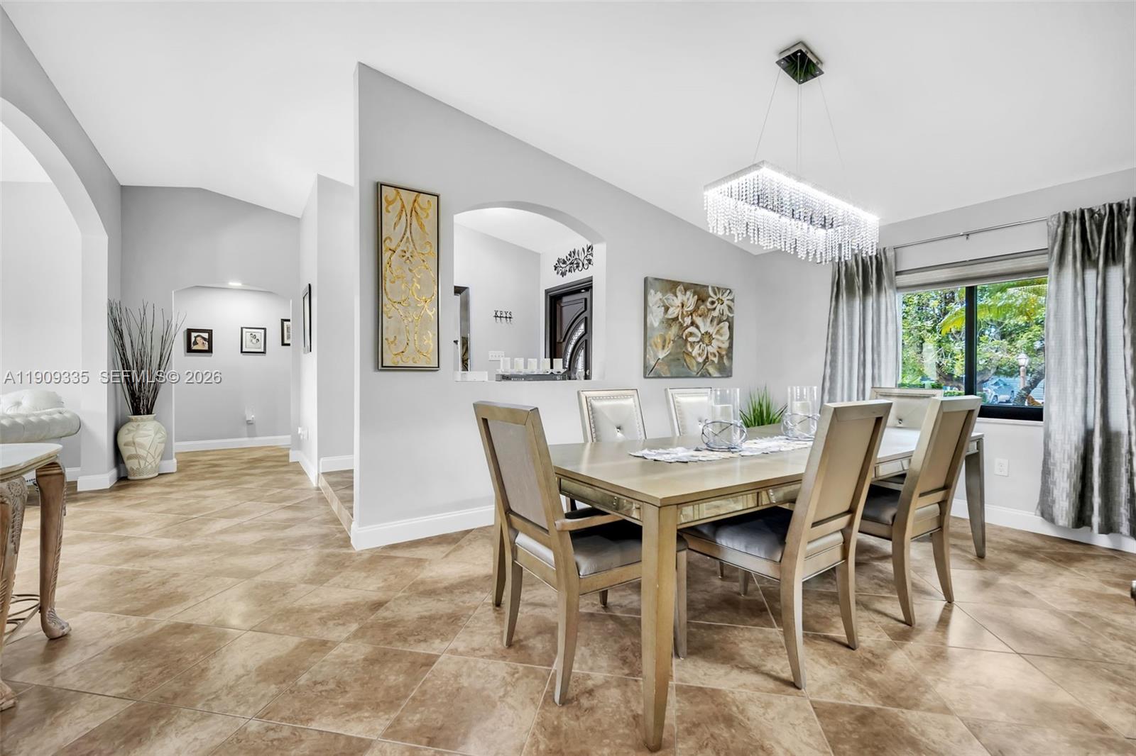Exquisite Single-family residence with no HOA, ideally situated in the heart of The Hammocks. This impeccably maintained home offers an open-concept flow, impact windows, and elegant tile and porcelain flooring throughout. The kitchen and bathrooms have been tastefully remodeled with wood cabinetry and high-end appliances. The garage has been converted into an office room, featuring a window and storage, and can be easily converted back to a garage if desired. Enjoy a lush backyard retreat with pergola, paver patio, and ample room for entertaining. The circular driveway has been freshly resurfaced and painted. All sitting on a double foundation. Ideally located near parks, lakes, and shopping.