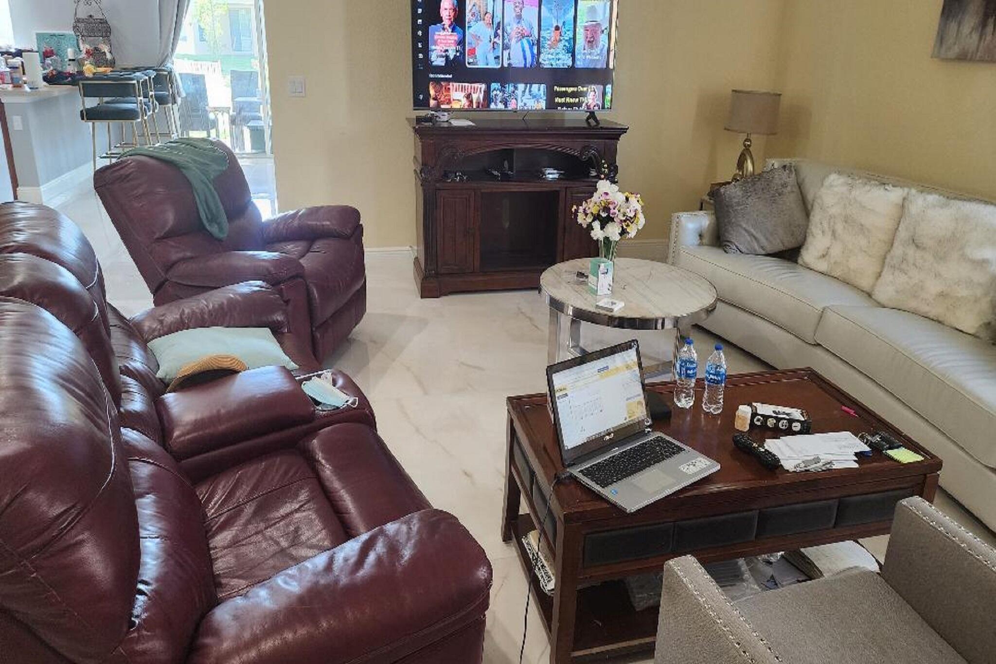 This beautiful fully furnished and smart two story-home with 4 bedrooms & 2 and a half bathrooms is being sold with a huge installed solar generator and 25 panel solar plus all the furniture and the 3 huge screen crystal clear TVs and outdoor cameras and 7 pieces of sofa with an 8 table dinning-room &4 bedrooms and a large waiting area that can be converted as a 5th bedroom if needed. The Neighborhood is fantastic! The First floor has a vibrant marble glossy tiles and the rooms upstairs have carpets all; the way through. Come and take a look. You will love it. Yes you're still connected with FPL. But your FPL bill will be very low when you sign up with Dividend the solar Panel Company & pay their $167 monthly due.. The remaining balance of the Solar Panel is now at $25k from the $40k