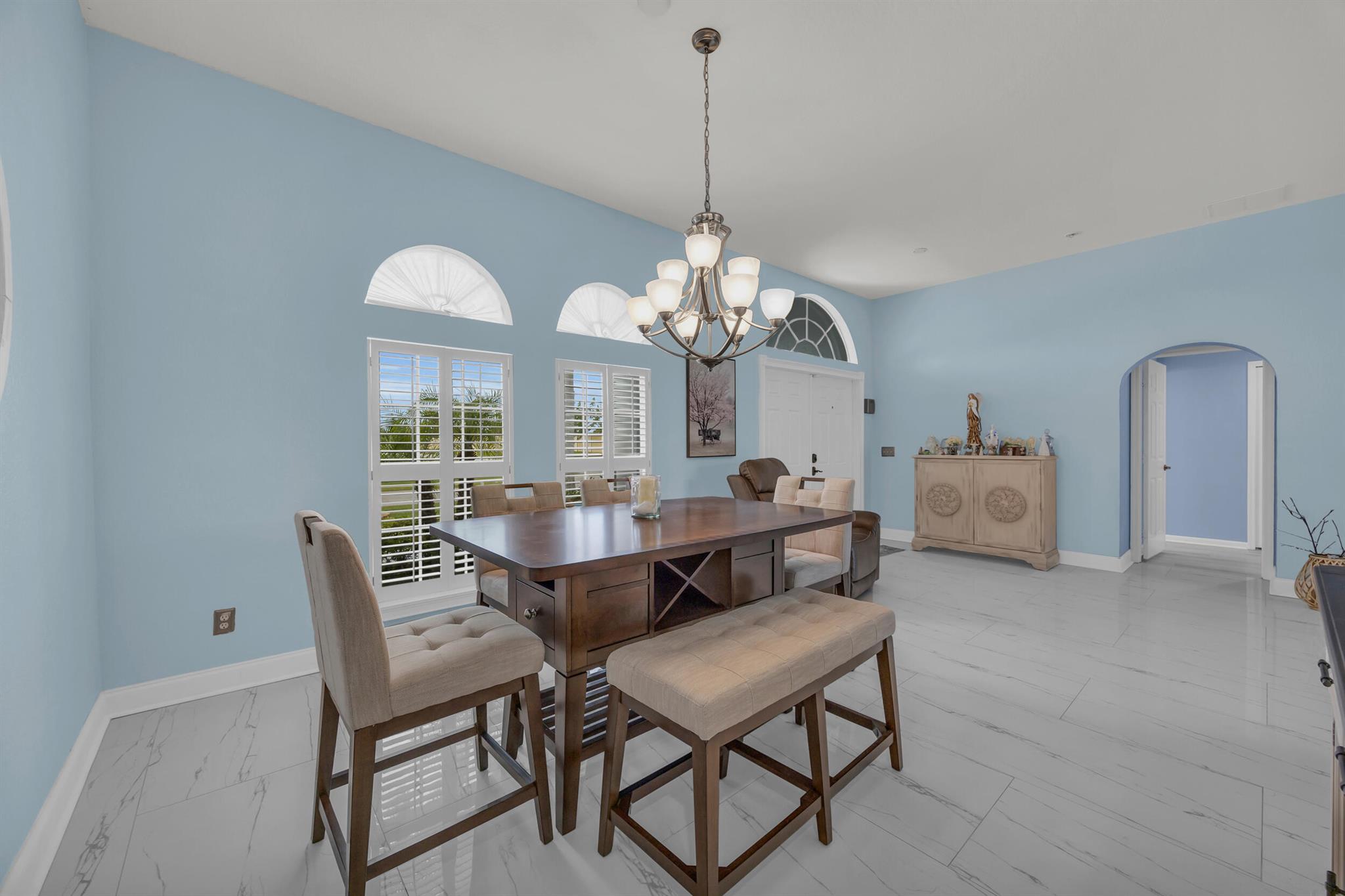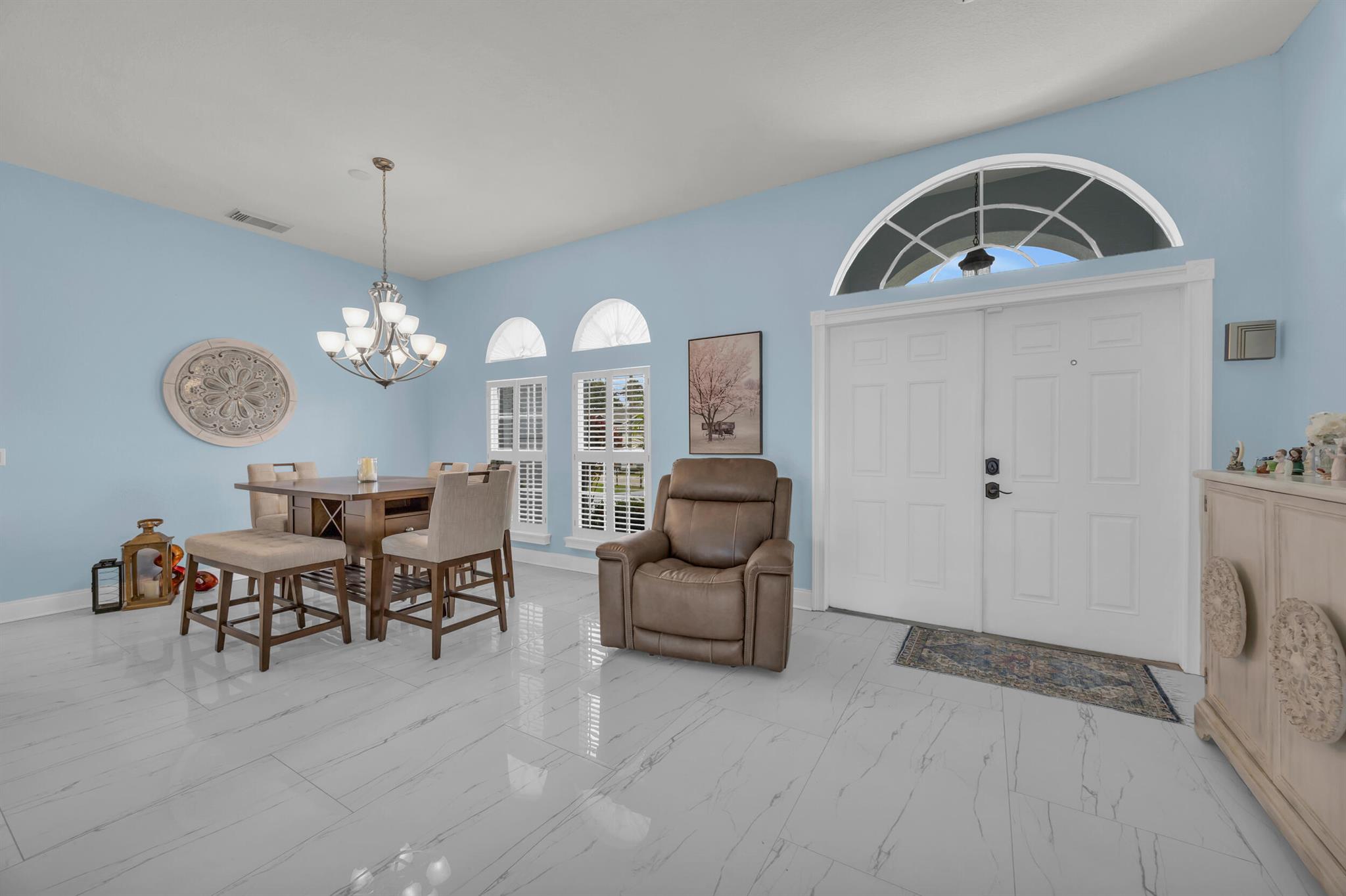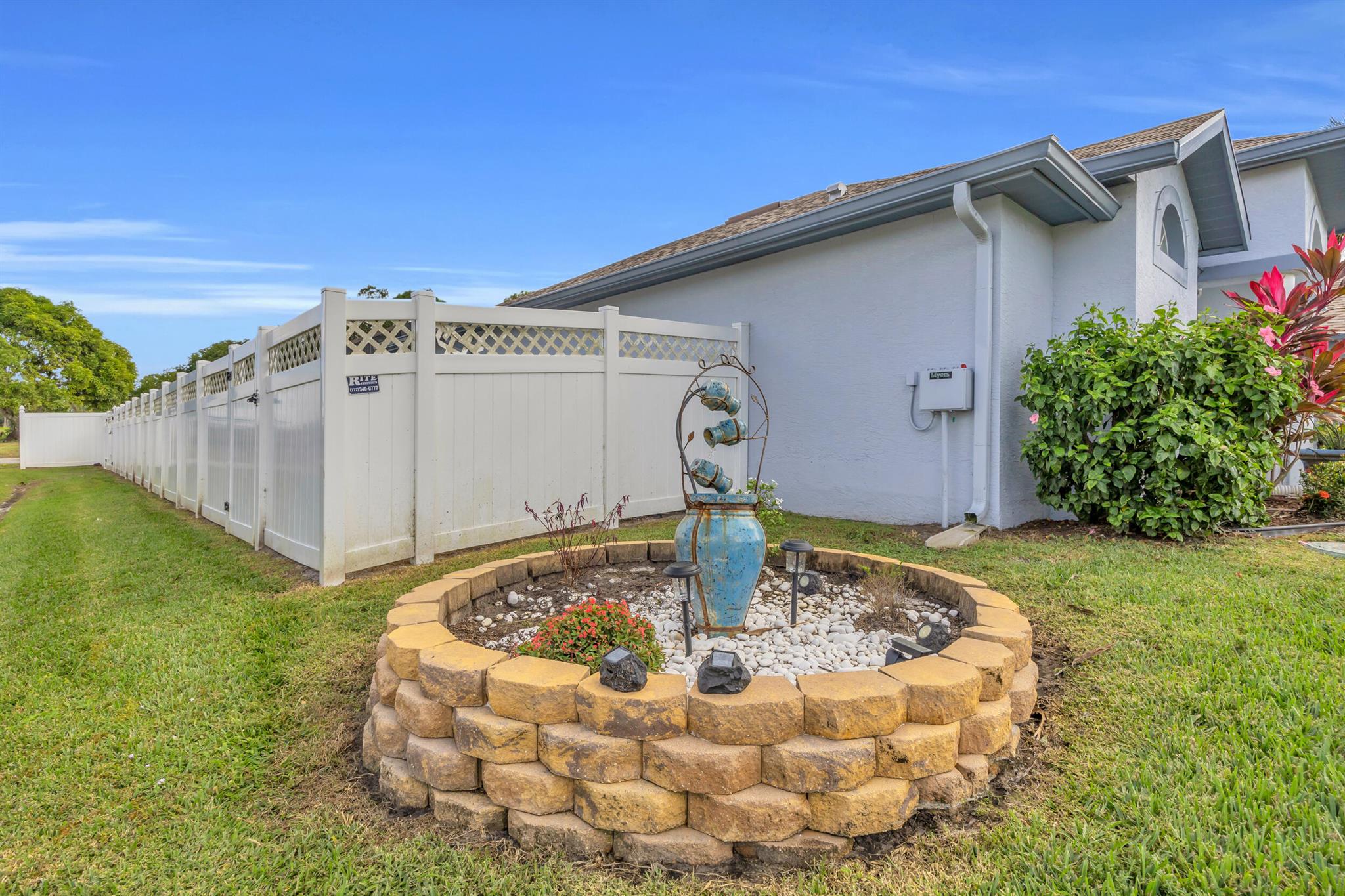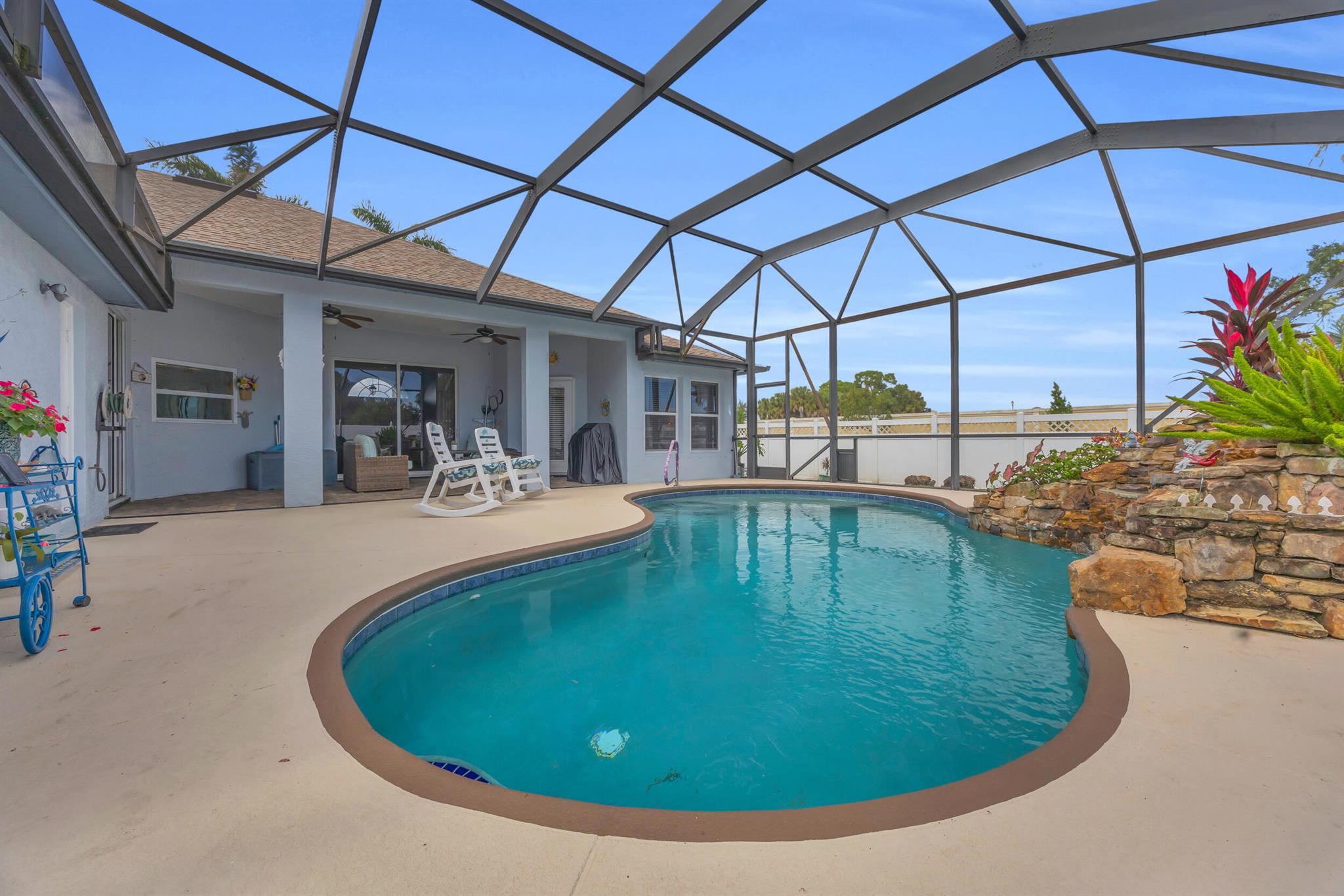 Welcome to Fairgreen Crossing, a sought-after non-HOA community ideally located just outside Tradition--offering all the convenience without the extra fees! Situated on a spacious corner lot with over a quarter acre of extra room, this property gives you the freedom to bring your RV, boat, and all your toys--no restrictions here. This 3-bedroom, 2-bath home has been lovingly maintained by a meticulous owner and features porcelain tile throughout and vinyl flooring in the bedrooms. The updated kitchen is filled with natural light and includes a stylish coffee station for your morning ritual. Step outside to your private paradise: a sparkling pool with a rock-cascade waterfall, surrounded by a large screened enclosure and a white vinyl fence for added privacy. The freshly painted patio