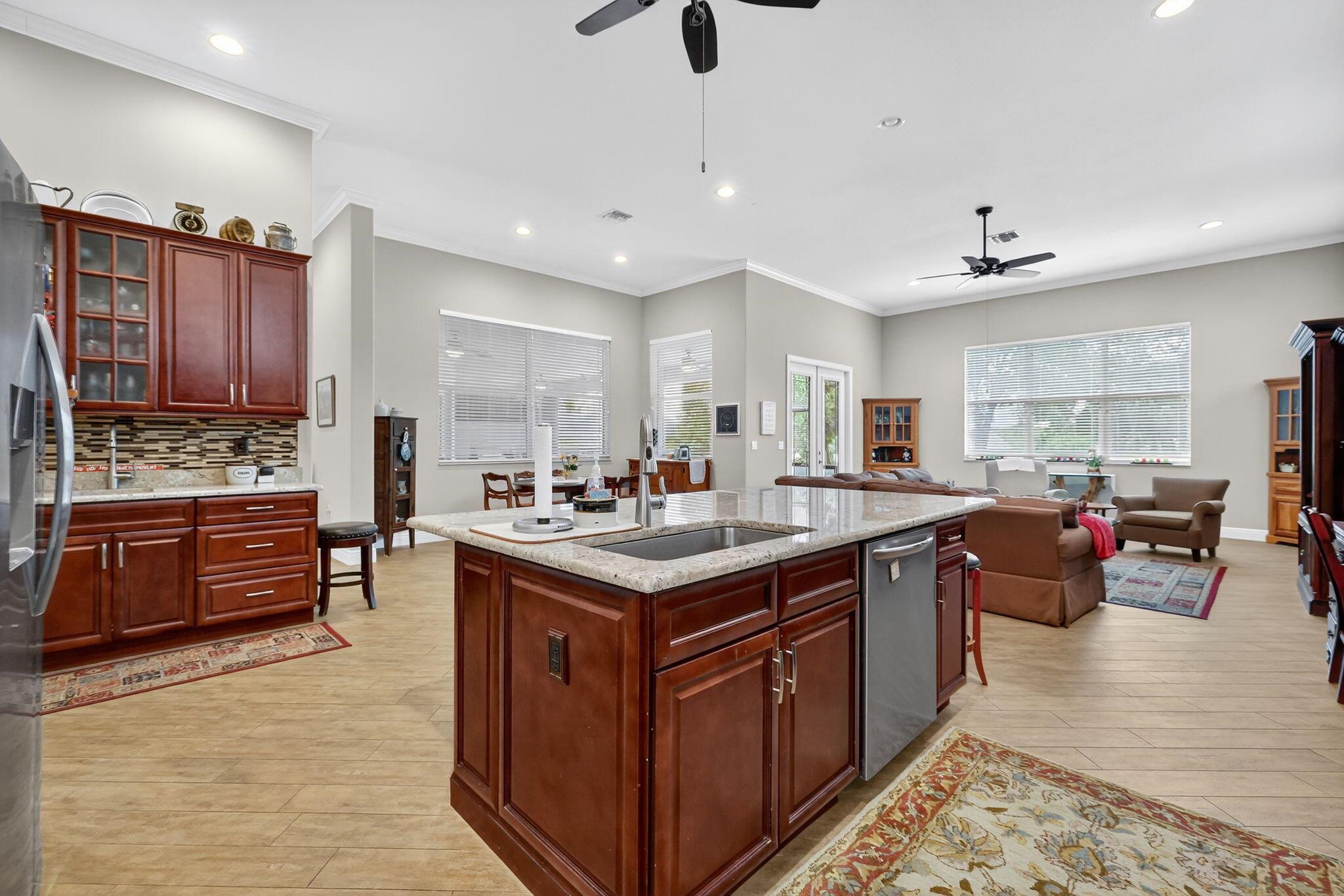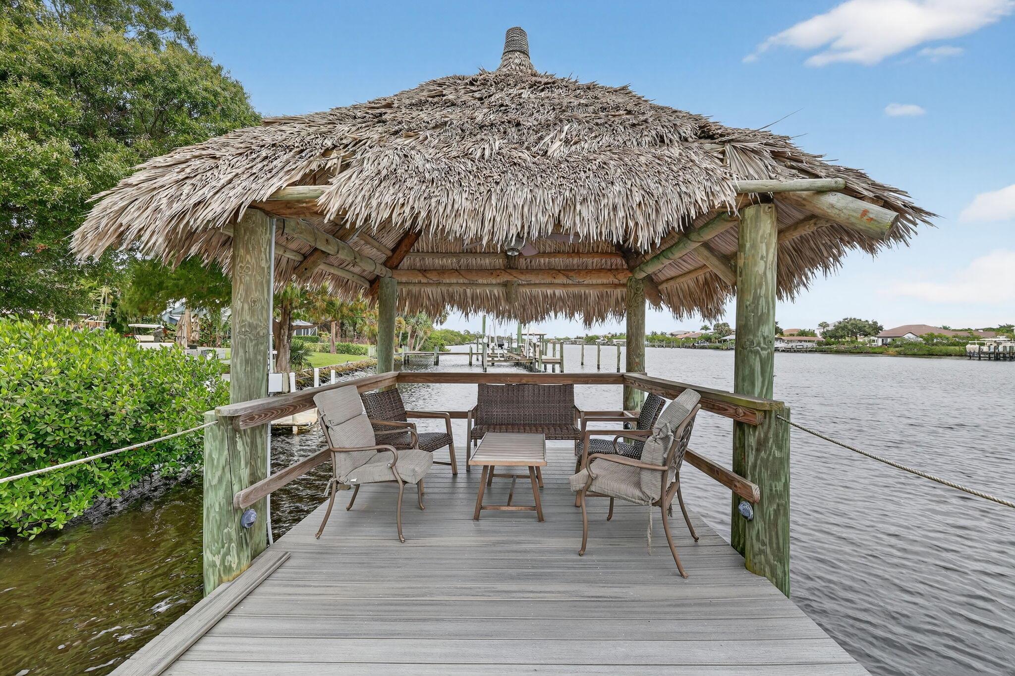Beautiful 2016-built riverfront home with direct river access and no fixed bridges! Shows like a model, featuring impact hurricane windows and doors, whole-house generator, and a spacious screened lanai perfect for entertaining. Nestled on 1 acre with 105 feet of river frontage, this property includes a private dock with tiki hut--ideal for boating and relaxing by the water. Enjoy the perfect blend of modern comfort, coastal style, and serene riverfront living!