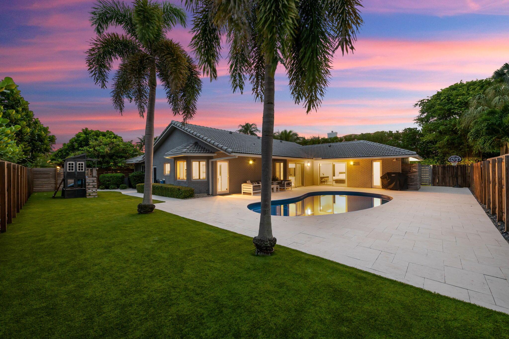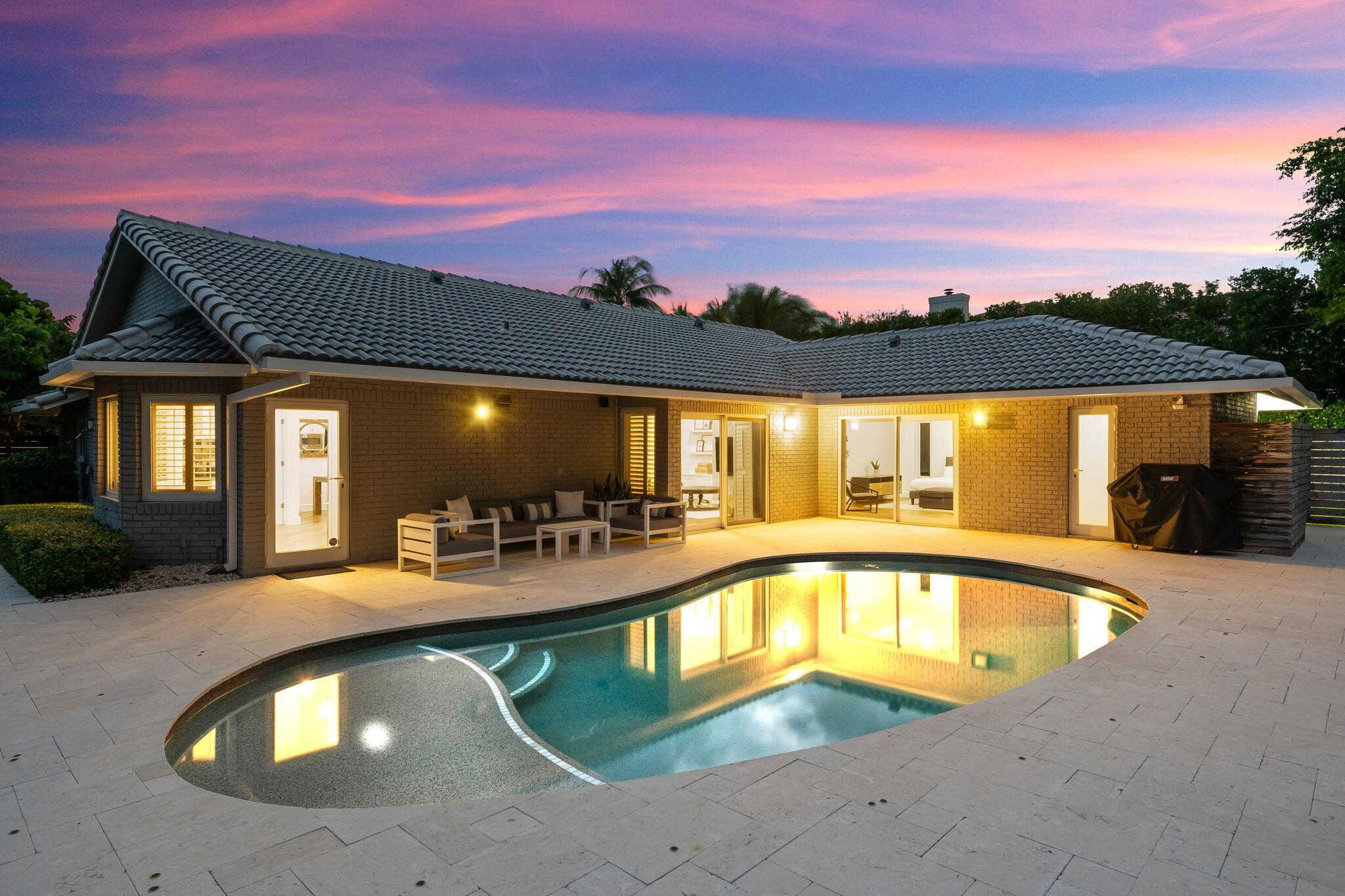 Welcome to Lighthouse Point, a coastal community where comfort, style, and convenience come together. Nestled on a quiet residential street, this beautifully updated 4-bedroom, 2-bath home offers generous space and thoughtful design for modern family living.Step inside to find vaulted ceilings, walnut hardwood floors, and freshly painted interiors that create a bright and inviting atmosphere. The open-concept great room flows seamlessly into a chef-inspired kitchen with marble and quartz countertops, a large island with seating, and a cozy built-in breakfast nook. A bar and coffee area, complete with an 18-bottle wine fridge, makes entertaining effortless.The primary suite overlooks the heated saltwater pool and opens directly to the backyard oasis. A spacious walk-in closet and