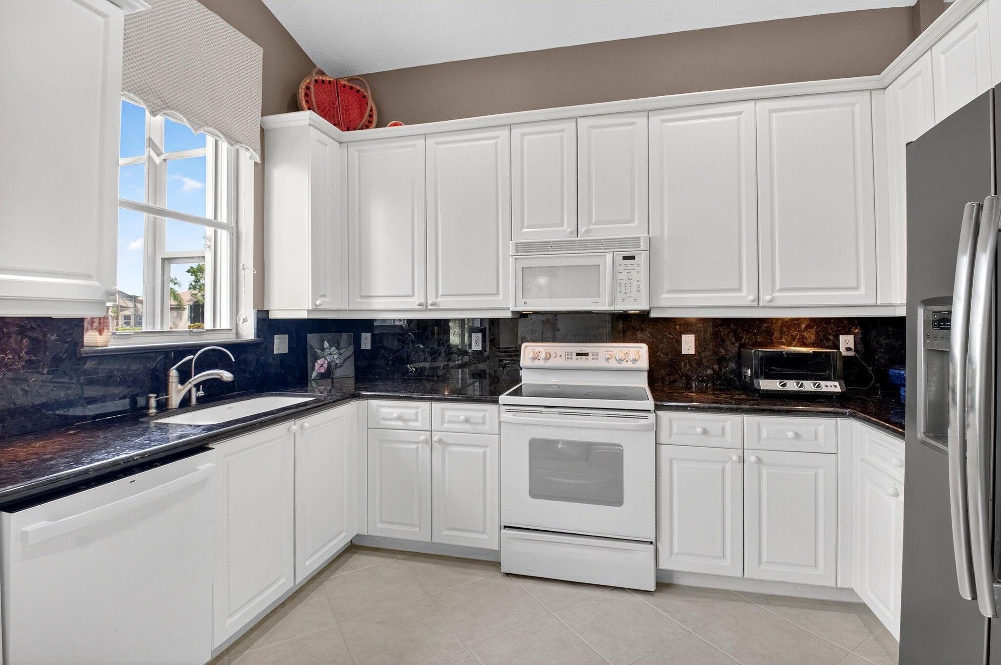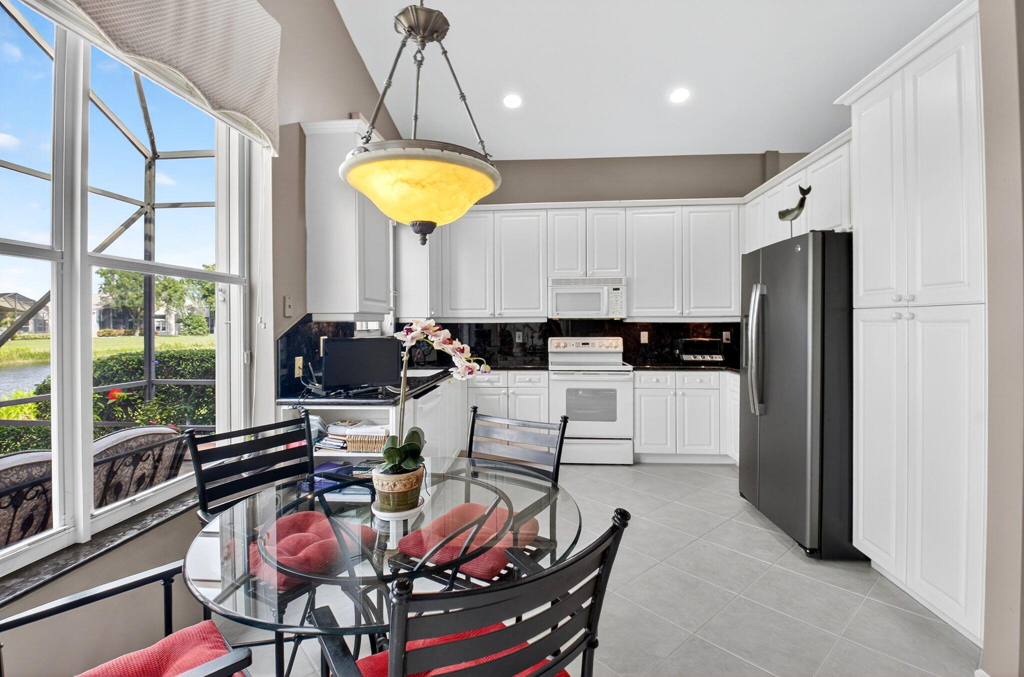 Experience the Delray Beach lifestyle in Valencia Falls offering first class resort-style amenities. This beautifully maintained rarely offered lakefront Ritz model is move in ready! Situated on a quiet tree lined street with the absolute best wide lake views from the living areas & primary bedroom. Tranquil and relaxing oversized L-shaped lanai with sweeping lake views perfect for entertaining and dining al-fresca. Desirable split bedroom floorplan with neutral tile. White kitchen with granite countertops/backsplash & breakfast area. Large greenspace side easement lets the sun shine in. Wake up to the sweeping lake vistas from your primary suite offering a tray ceiling, two walk-in closets, primary bath with dual sink vanities, soaking tub & separate shower. Full accordion shutters.