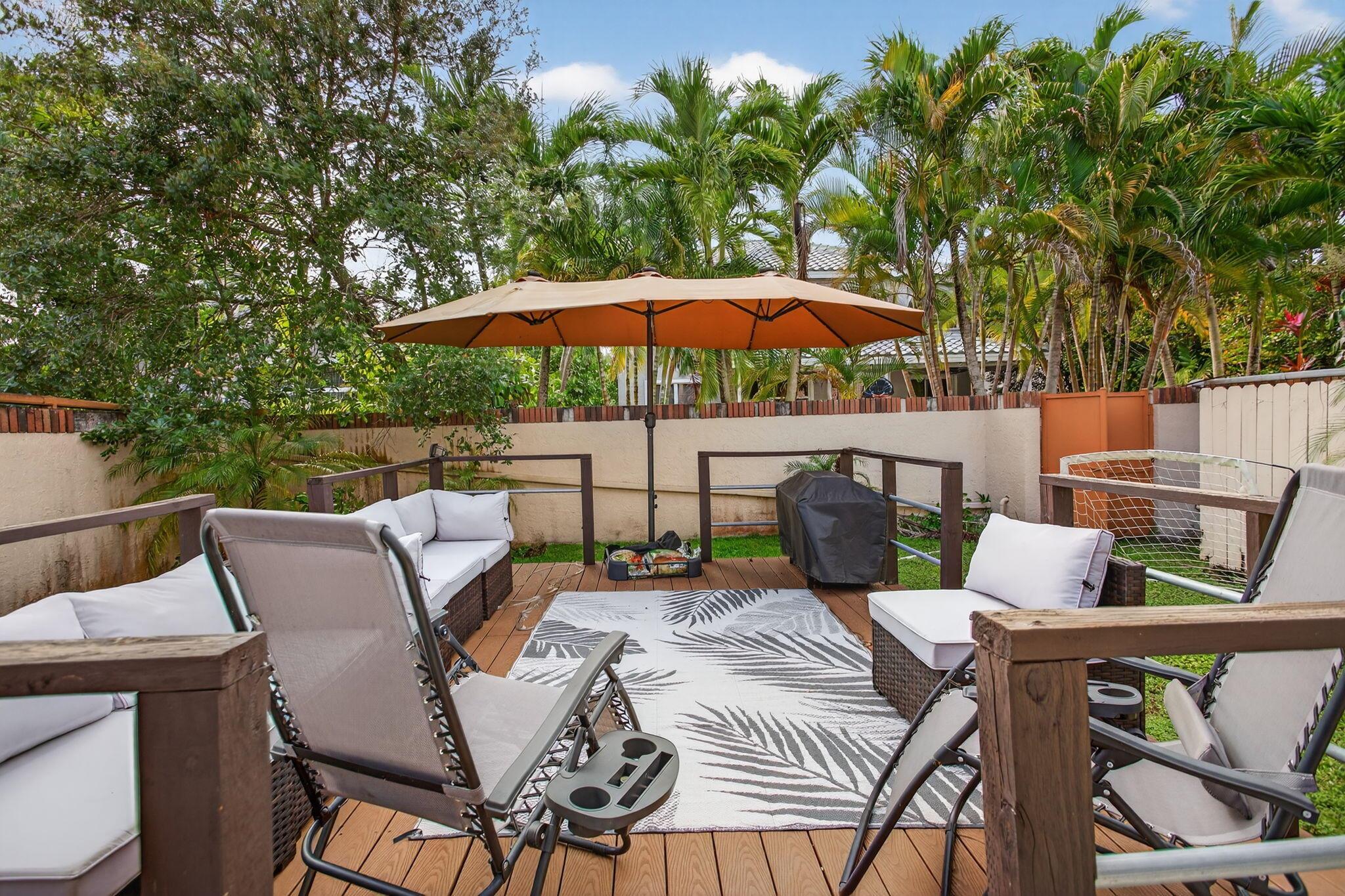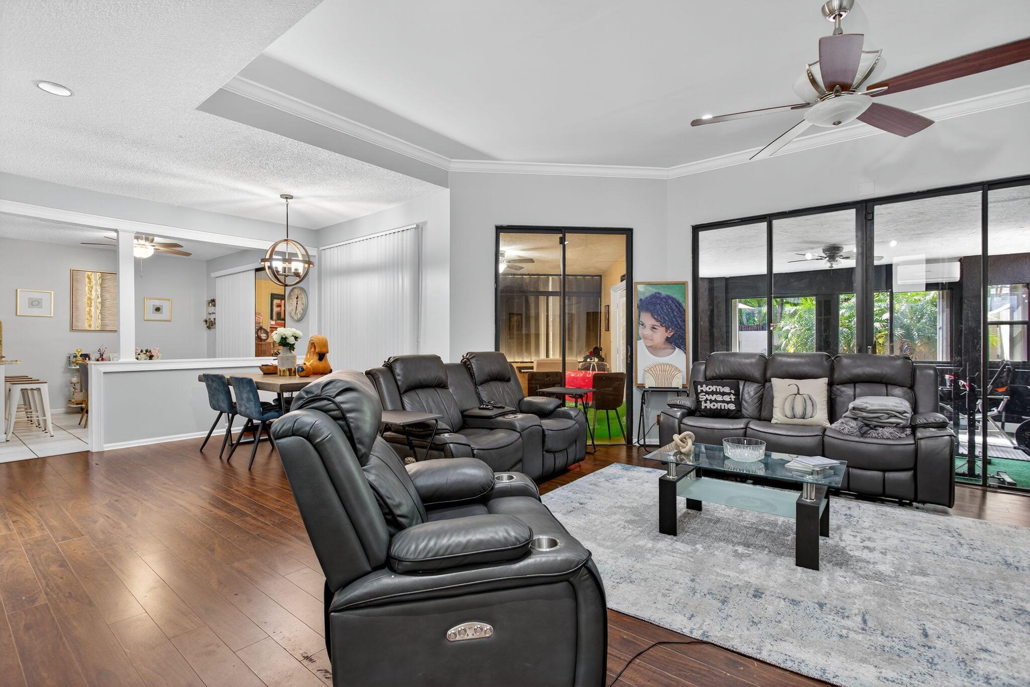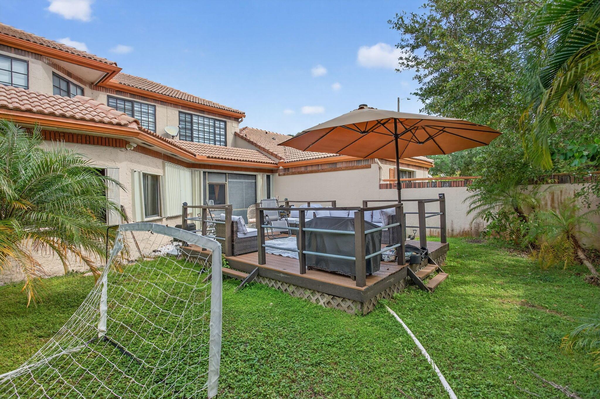 Welcome to one of the largest townhomes in Coral Springs, located in the prestigious gated community of Eagle Trace. This spacious 2,600 sq. ft. residence offers 3 bedrooms and 3.5 baths, blending comfort, functionality, and modern living in a sought-after neighborhood. As you enter, a short staircase leads to the main level, featuring a bright living room, an open kitchen, a Florida room perfect for entertaining, and a convenient half bath. Also on this level is a private bedroom with its own ensuite ideal for guests or multi-generational living. Upstairs, you'll find a versatile loft space, a second bedroom with a private bath, and a stunning owner's suite complete with three large closets, wall-to-wall windows, and a luxurious bathroom featuring a separate shower and relaxing Roman rub
