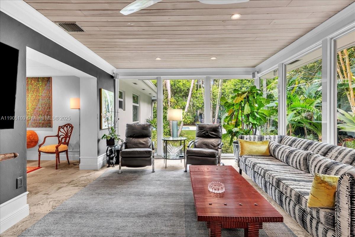 Welcome Home to Your Private Tropical Oasis in South Coconut Grove.Nestled on a charming, tree-lined street, this spectacular residence sits on an expansive 11,000+SF.Lot.lush, mature landscaping for ultimate privacy.Every room offers tranquil,Zen garden views.Spacious chef’s kitchen features a gas range, wine cooler, Sub-Zero.Two elegant ensuite bedrooms boast marble bathrooms.Step outside to your private retreat—Salt-Water Pool framed by tropical foliage & a shaded pergola perfect for relaxing or entertaining.A true Grove gem that blends comfort, sophistication & effortless indoor-outdoor living.Additional highlights include:New AC system,Whole-house generator,Upgraded plumbing,Impact doors/windows.Immaculate 2-car garage, custom built-ins & laundry.Home lgr than tax rolls as per owner.
