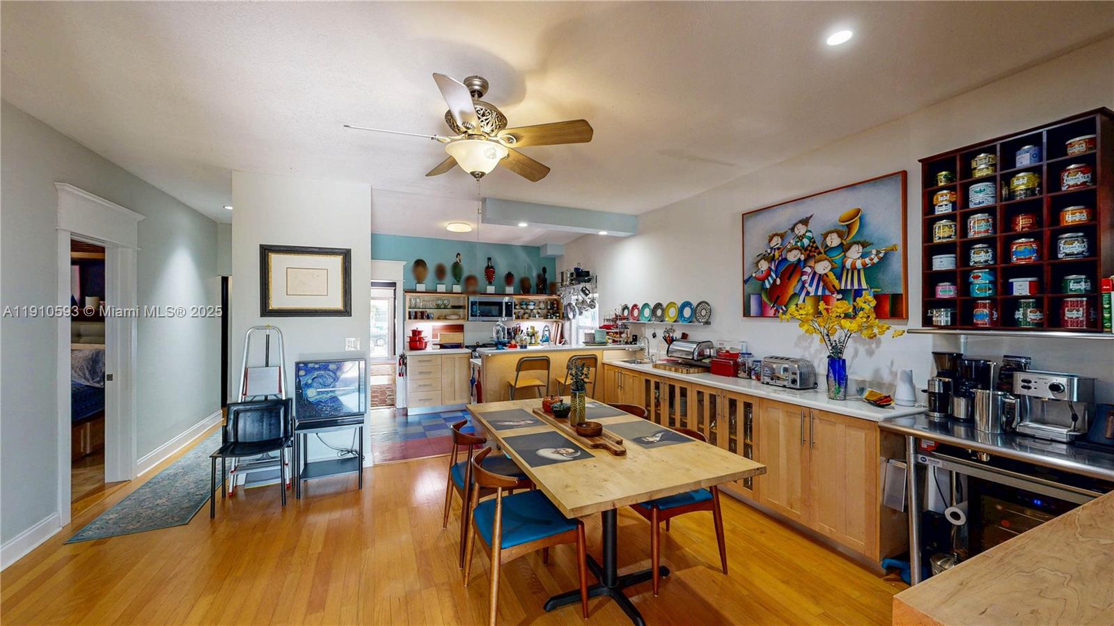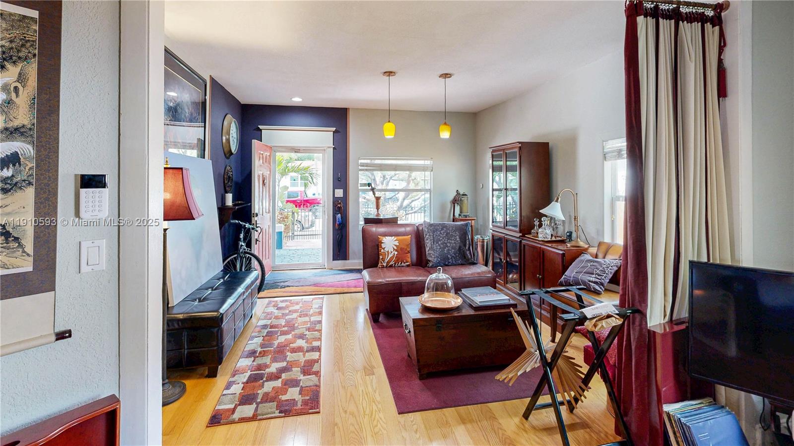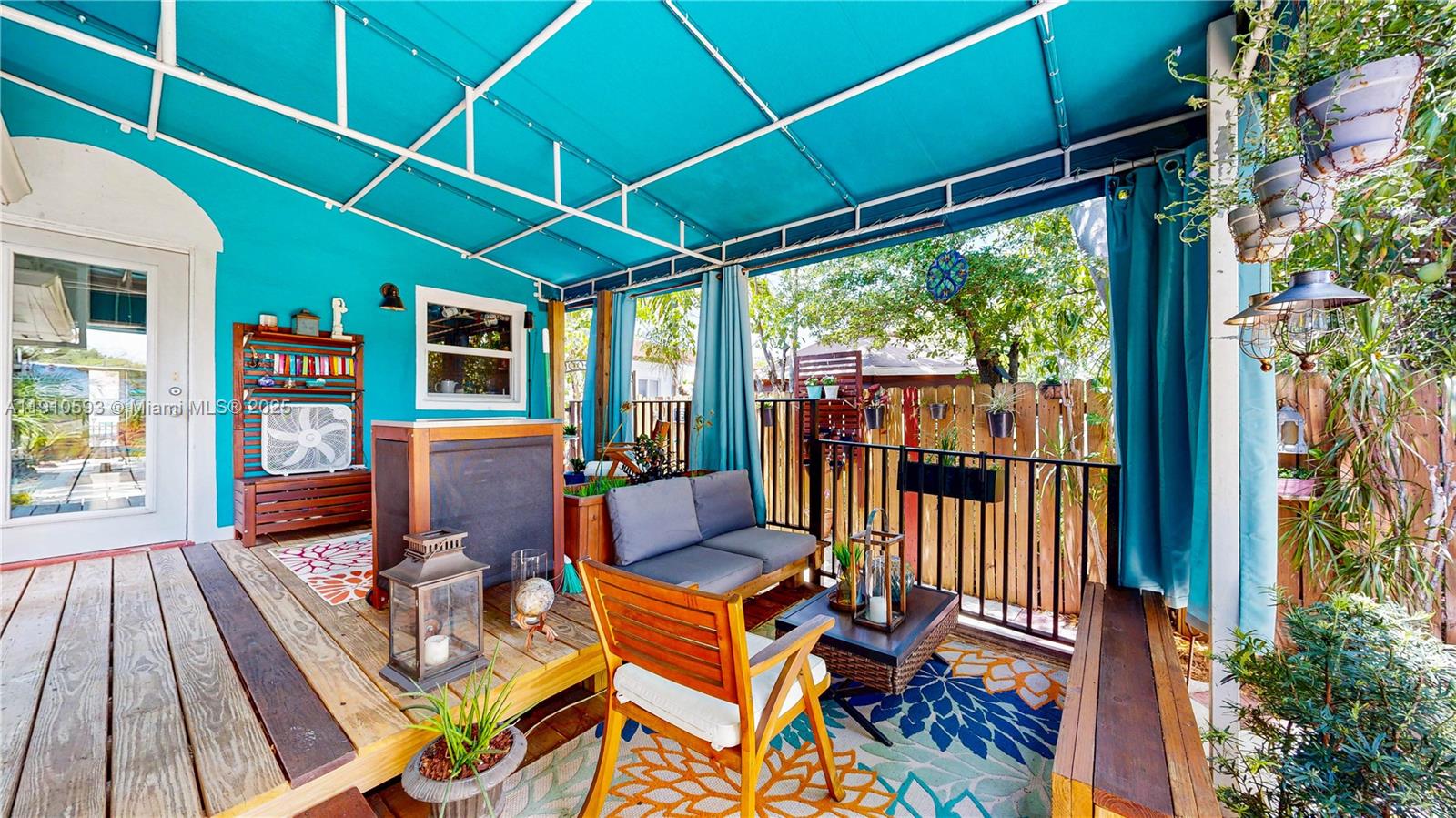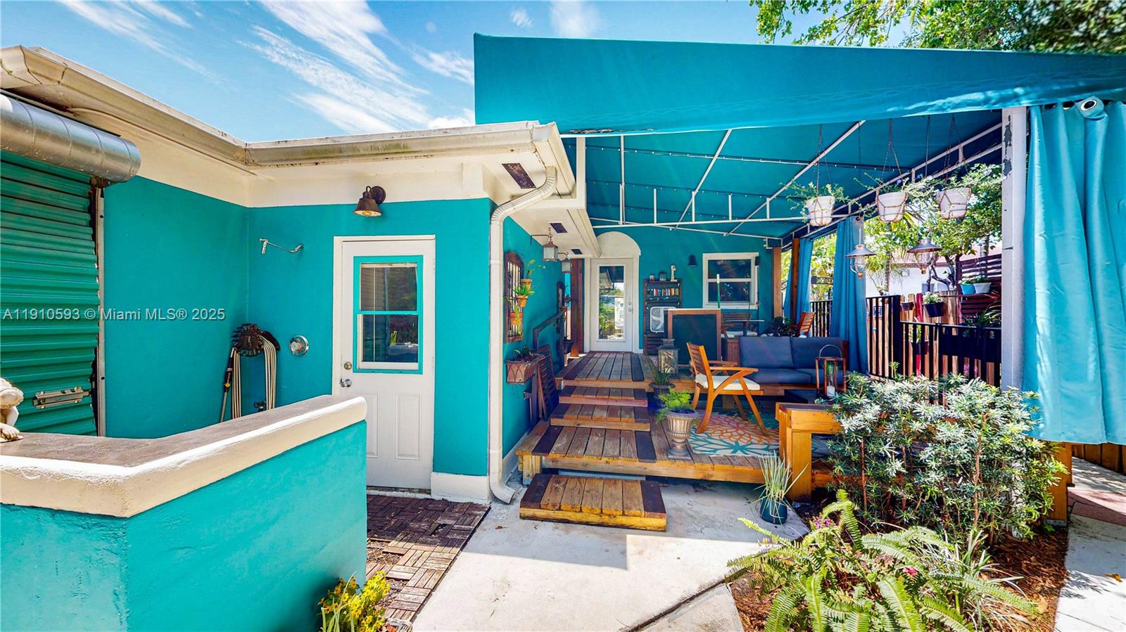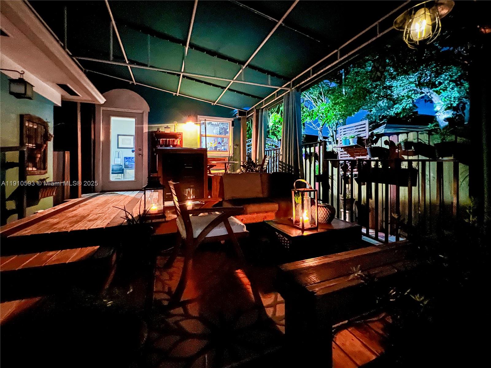 Impeccably upgraded 4-bedroom and 2-bathroom home with solid red oak floors and eco-friendly improvements throughout. In-laws suite with its entrance. Impact windows, a hurricane-rated roof, and a 7K generator ensure top-tier storm protection. Kitchen features custom solid wood cabinets, stone counters, new stainless steel appliances, and a natural gas stove. Updated plumbing and electrical with 200-amp service, surge protection, and whole-house generator diverter. Private courtyard with hot tub, expansive awning-covered deck, and fully fenced yard with gated driveway and off-street parking for 3. A smart security system. A fully electrified yard, video doorbell, and shed with tools are included. Zoned for duplex conversion. Conveniently located. Enjoy 3D tour! May the force be with you!