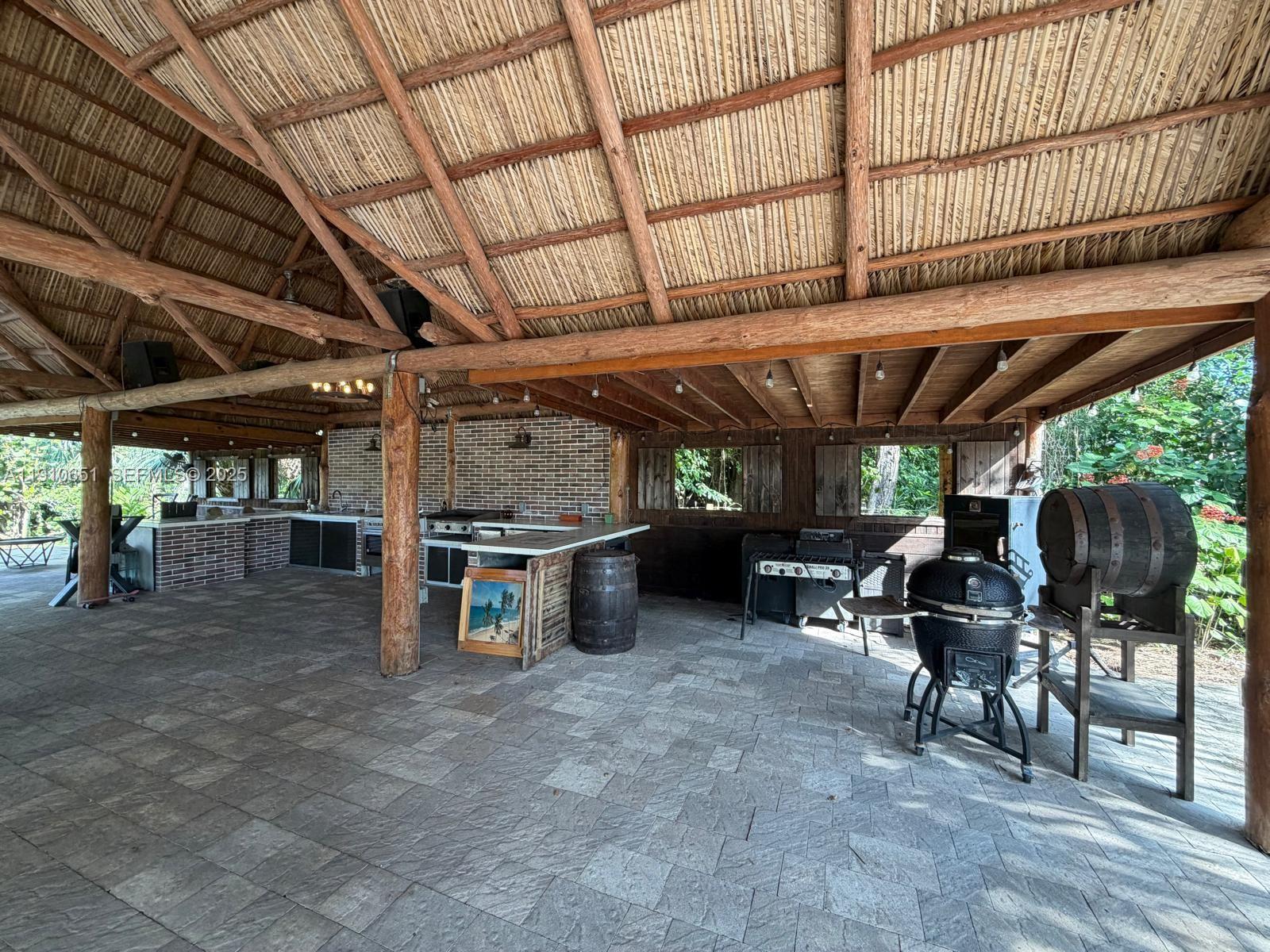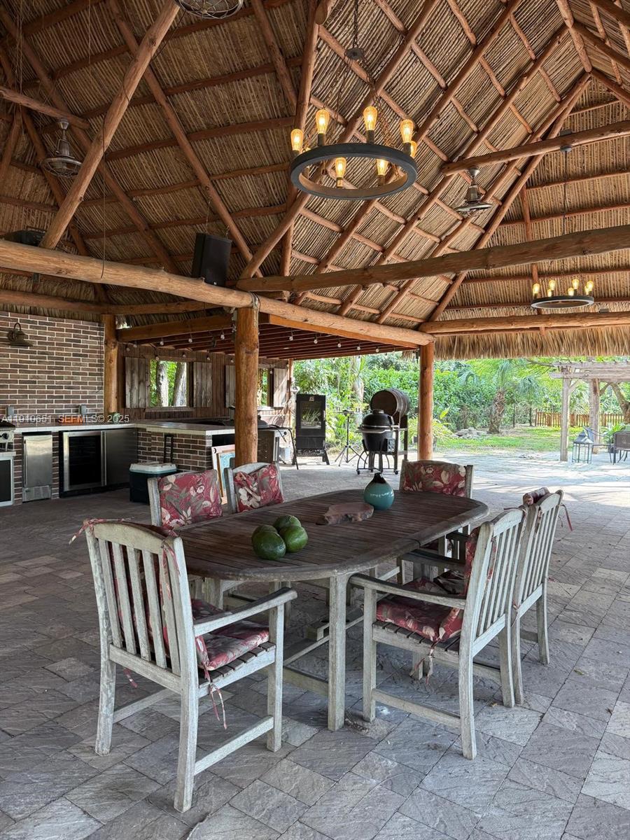 Lovely Redland Estate House 5 Acre Relaxing unique chimney, french doors, family room overlooking fish pond & waterfall, & 1,500 sq. ft. custom built gazebo with pavers, kitchen, BBQ, lighting, & 2 outdoor bthrms. Garage convert., metal roof. Whole house electrical panel flip from FPL to generator. Peaceful living, opportunity to create a profitable Airbnb & host rustic yet elegant event for over 50 cars. Additional multi-use buildings include: 5 workshops - electric, & water, of which the largest is 5,760 sqft, RV area, horse stable. Industrial Irrigation Perkin Pump (1,400 GPM)., lush gardens,. Fruit trees. Custom built playhouse Agri. Classified = lower taxes.. More than a home it's a serene lifestyle and business opportunity where creativity, & profitability can come together.