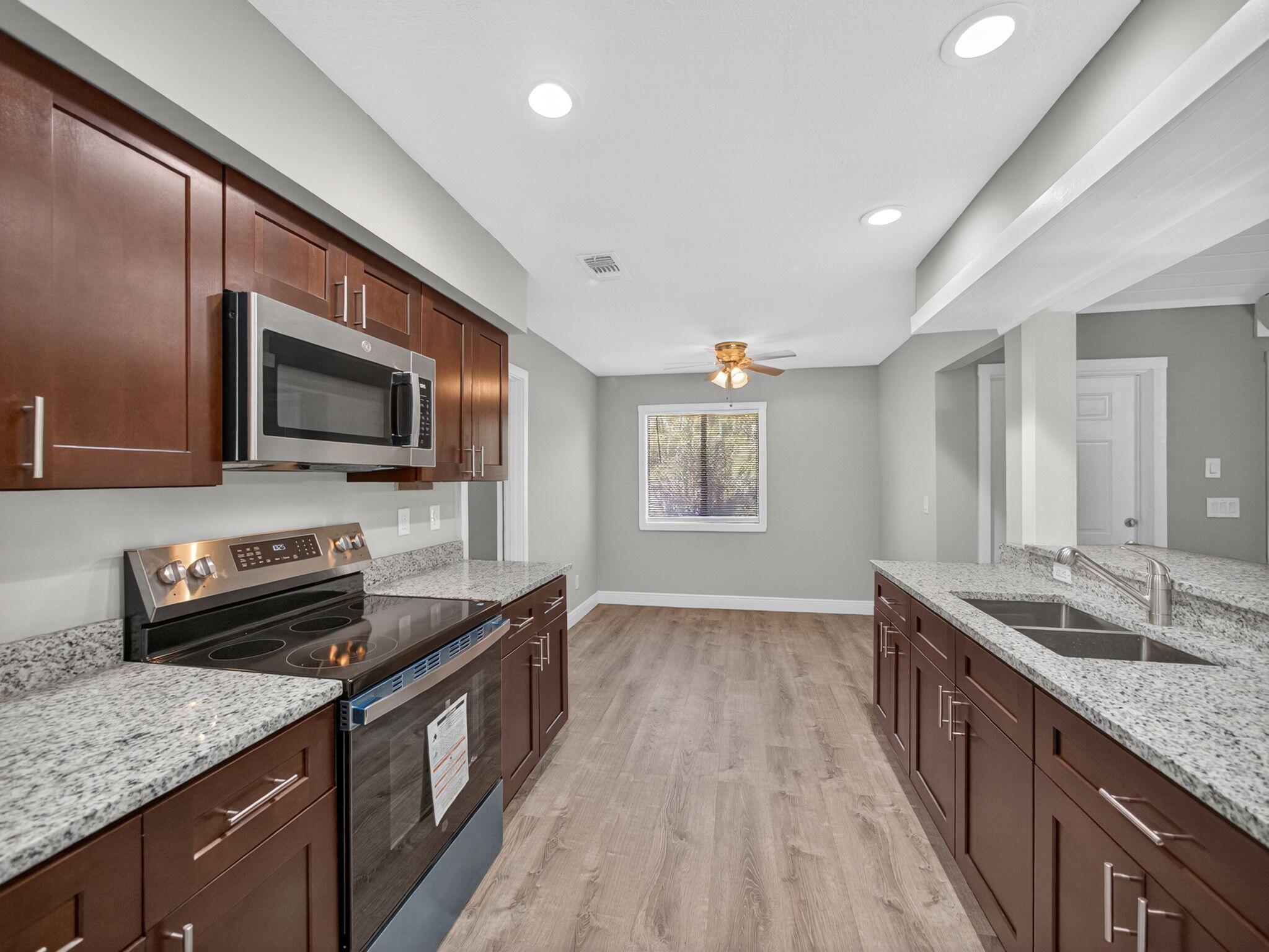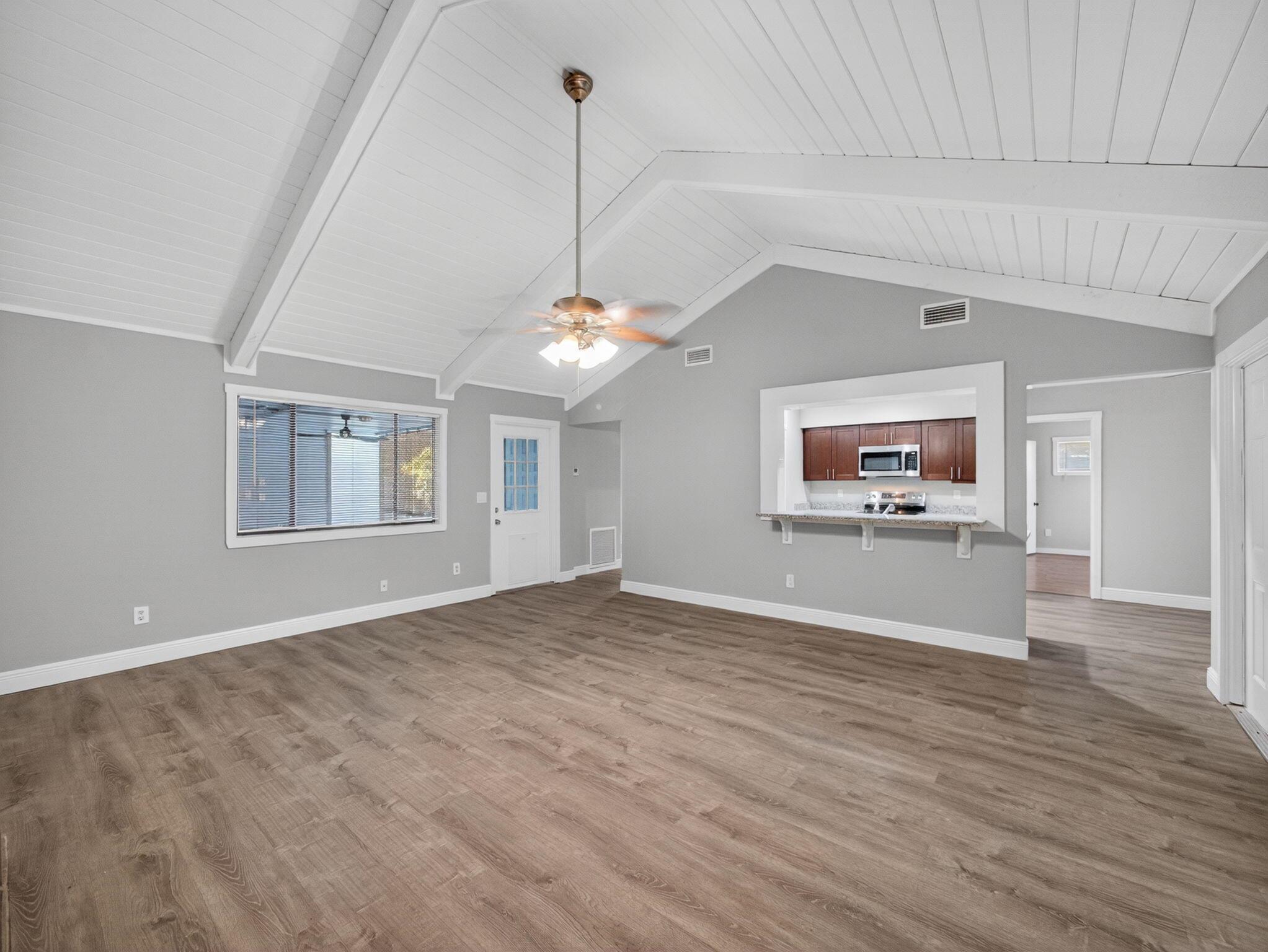Beautiful pool home located in the wonderful Lakewood Park Community. Main house offers 2 bedroom/1.5 bathrooms, high wood beam ceiling with a fireplace in the spacious living room, completely updated kitchen, fresh paint throughout, updated master bathroom, and closet has new door/organizer. Guest house is a 1 bathroom currently an efficiency but can easily add a full kitchen. Property has a privacy fence. Welcome to your dream home.