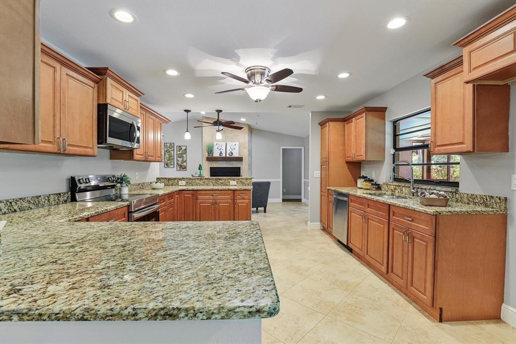 !LOCATION! Sandpiper Bay No outlet street exclusive-secluded-family oriented neighborhood minutes to Beaches Turnpike Doctors Hospitals, popular restaurants and stores. This elegant remodeled 4/3/2 pool home is a must see open spaces Fla room The home sits on a half acre Estate elevated corner lot with mature landscape, well water sprinklers a Tropical Oasis Resort-Like Large pool screened lanai enjoyable living. Inside a large kitchen with lots of room, fireplace ADTsecurity owned cameras In-laws BD own entry by pool Granite countertops new stainless appliances laundry rm Bring the family fill up the four bedrooms and 3 baths in the split floor plan. Hurricane impact windows, new water heater AC2017 2 car garage new roof '24, new electric, plumbing NO HOA This could be your dream home!