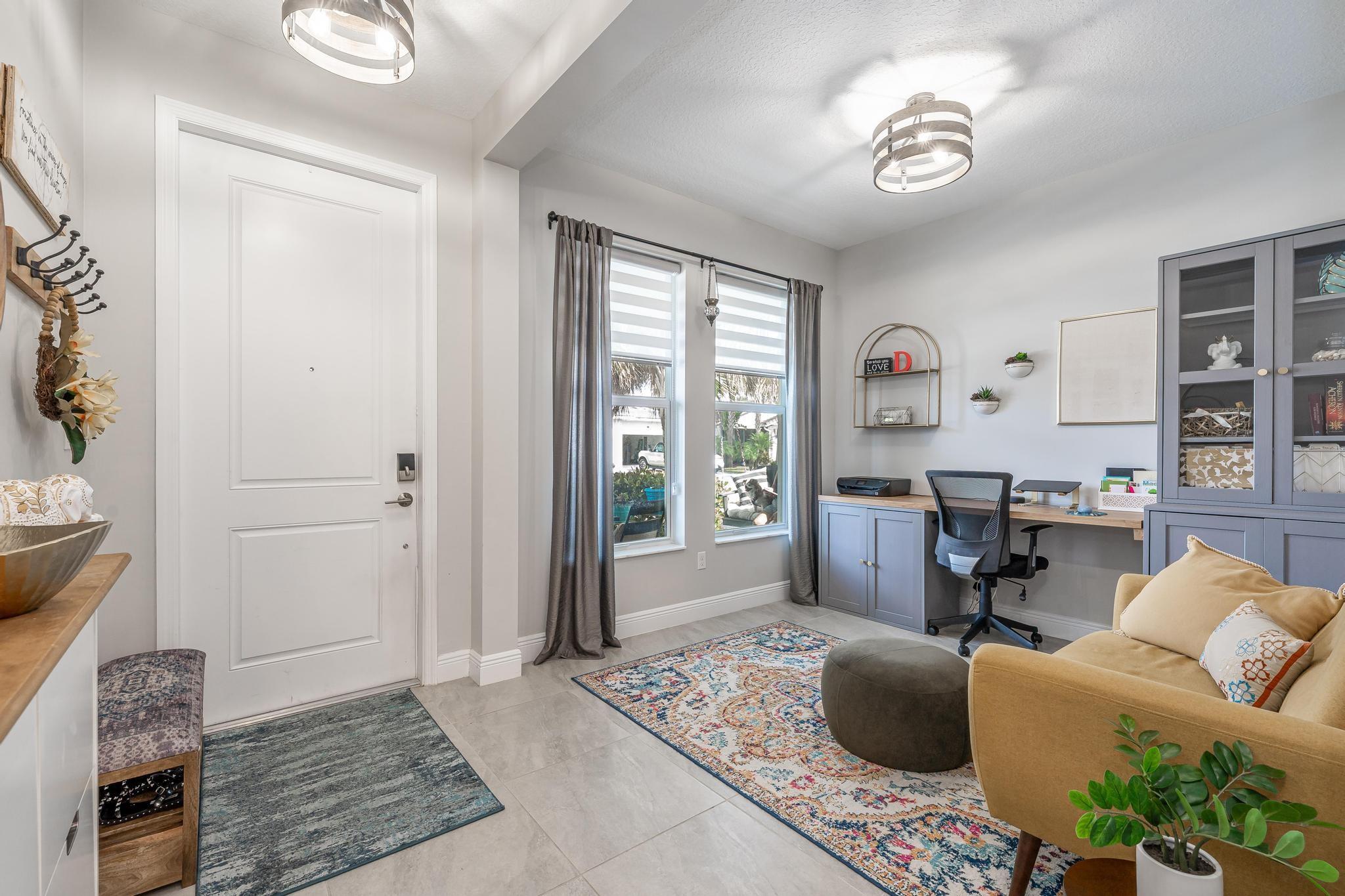 Home for the Holidays! Stunning, Scenic Winding Waterviews are YOURS from this Pitoresco Floorplan w/Low Country Elevation in Gorgeous, Gated VELEIROS! 2/2+ Den(Convertible to 3rd Bdrm). 2-Car Garage. Lush Foliage Lines Front Porch. Enter to Foyer & Den, Offering a Preview of High-End Window Treatments, Fixtures & Finishes to Follow Ahead in Spacious Living-Dining Area. Tile T/O! Open Kitchen Boasts GE Stainless Suite w/Wall Oven, Hood, Quartz Counter & Island, Pantry, Shaker Cabinets, Glass Backsplash. Beyond the Interior, Elegant Metal Fence Lines the Waterfront Yard. Covered Paver Patio & Room for Pool! Owner Suite w/Ensuite Bath, Walk-in Closet w/Built-ins. Wind Back to Guest Rm & Laundry. Impact Windows/Doors. Smart Home System Controls Garage, Front Door, Thermostat. Pet Friendly.