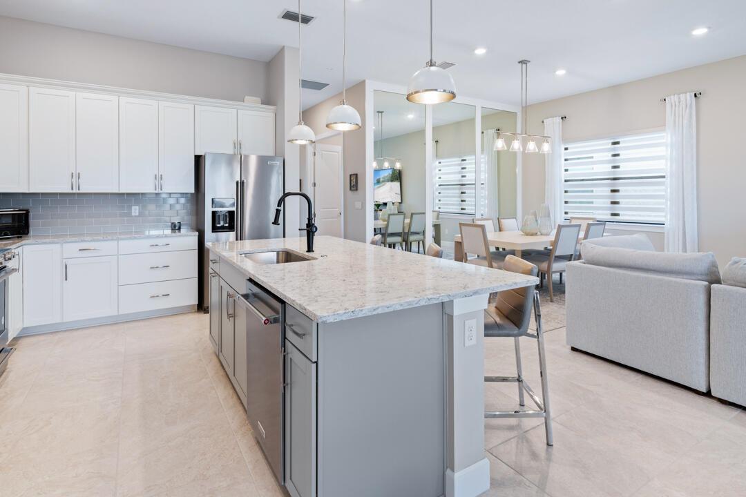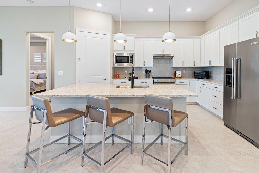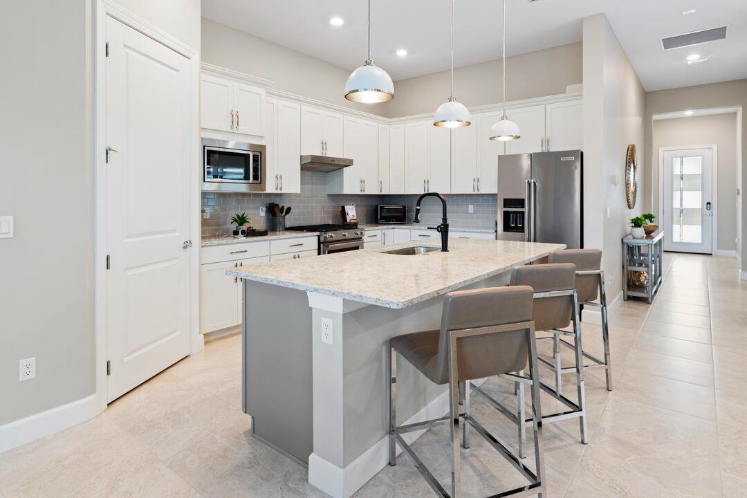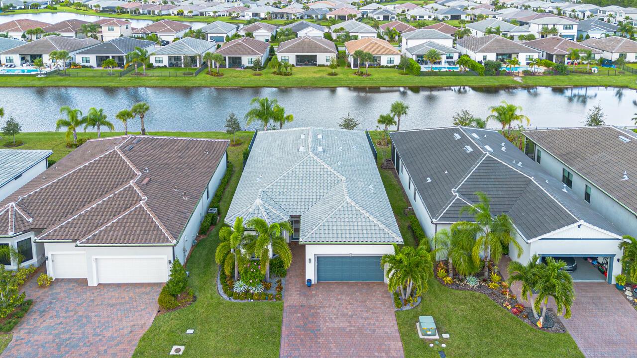 SPECTACULAR home with meticulous attention to detail at every turn! 3-bed, 3-bath plus office w/French doors spanning 2224 sq ft. The heart of the home is the expanded gathering room, which flows seamlessly through double-sliding doors to oversized, screened-in lanai and paver patio-perfect for enjoying stunning lake views in your private, fenced-in backyard. Entertain with ease in the gourmet kitchen, featuring KitchenAid appliances and large center island. Finished with designer touches, including smooth-finish walls, upgraded lighting, 8' doors. Built for ultimate peace of mind and convenience w/PGT IMPACT glass, Generac whole house generator, smart home controls, security system w/cameras, tankless WH, water softener, LG W/D, epoxied extended garage leading to widened driveway + MORE!