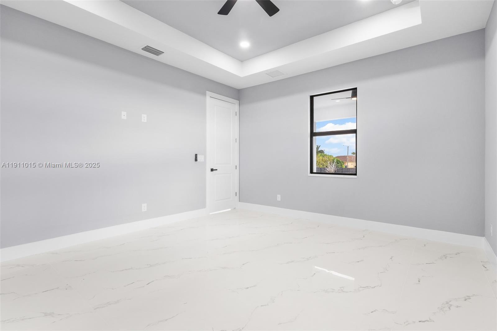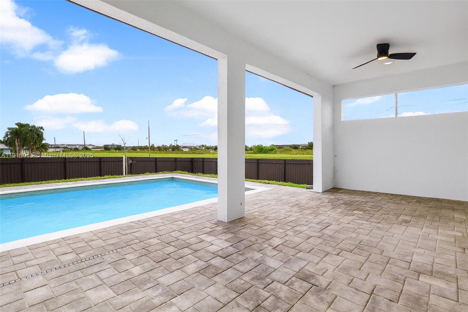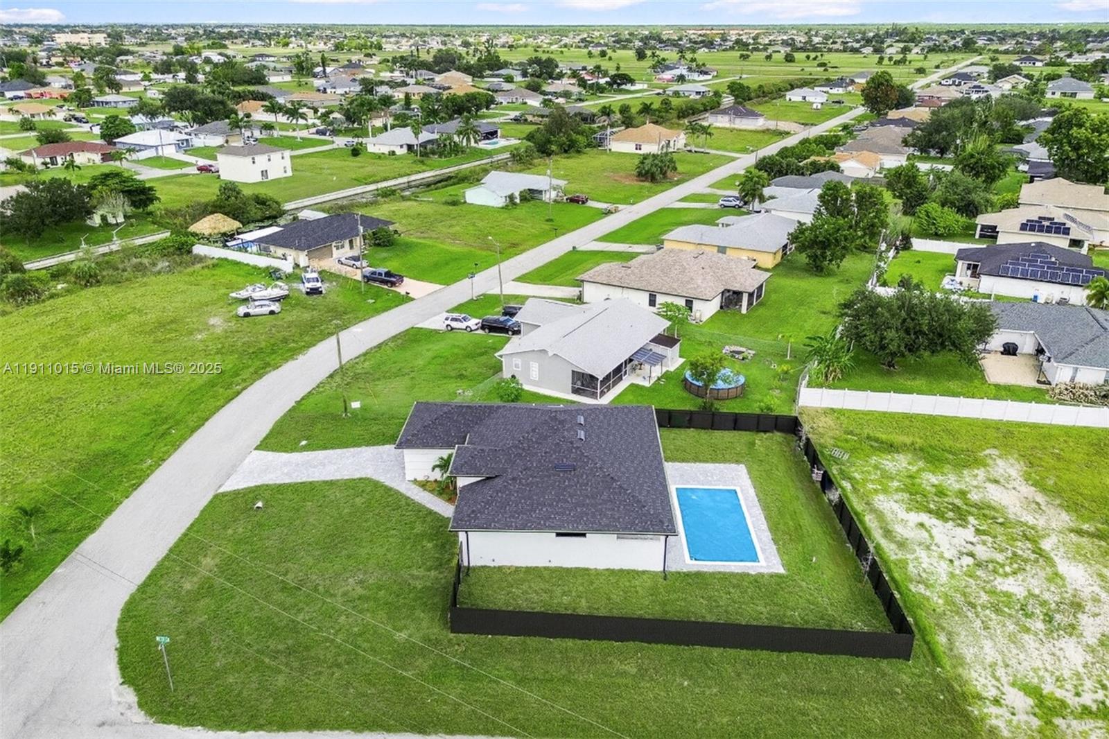 Stunning Custom Home in NE Cape Coral! Located just 3 minutes from Del Prado Blvd, this beautiful new construction offers easy access to restaurants, shopping centers, and schools.Featuring an open-concept layout filled with natural light, elegant porcelain tile floors, and a gourmet kitchen with sleek quartz countertops, stainless steel appliances, and custom cabinetry. Impact-resistant windows and doors provide peace of mind, energy efficiency, and lasting protection. Step outside to your private oasis — a spacious backyard with a sparkling pool, perfect for entertaining or relaxing under the Florida sun. Built by a reputable local builder, this home comes with up to 10 years of structural warranty, giving you confidence and long-term value.