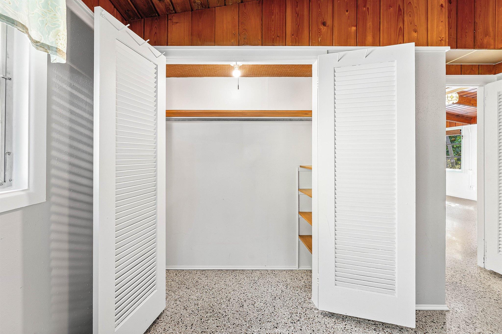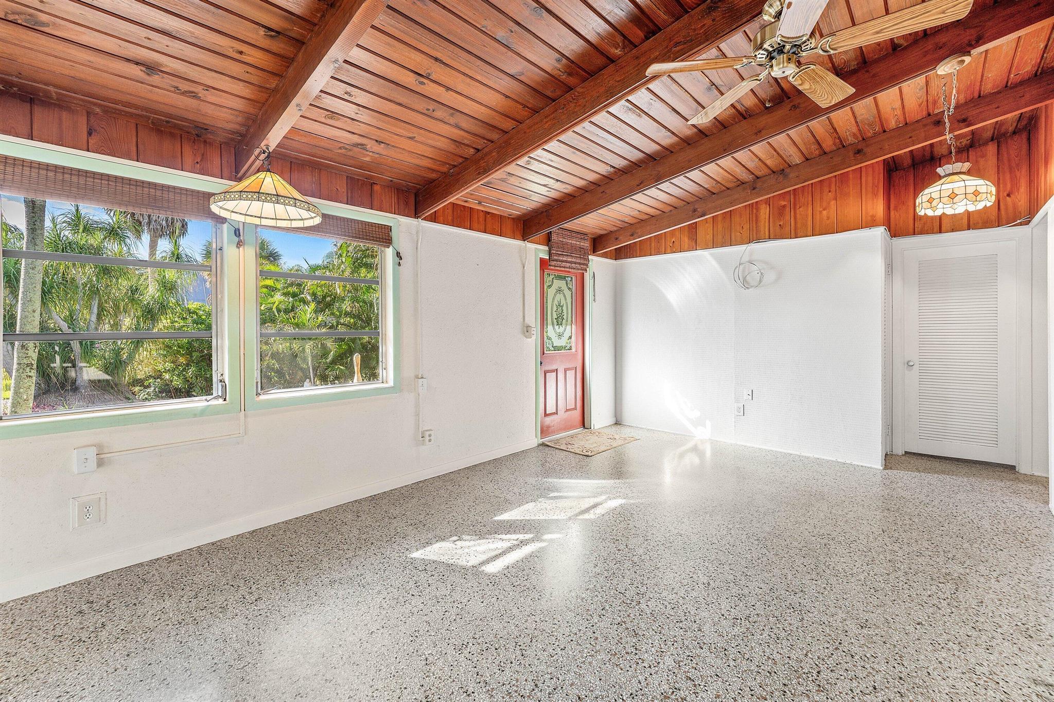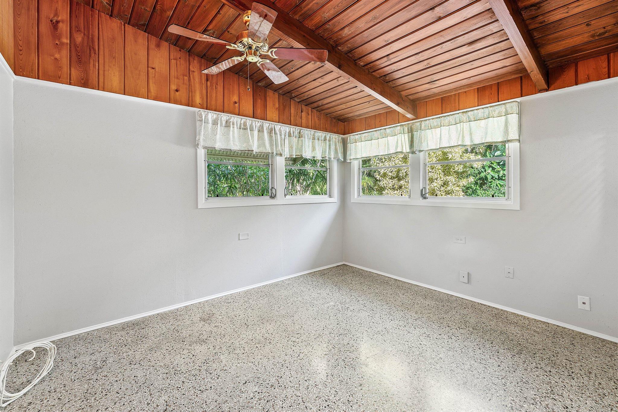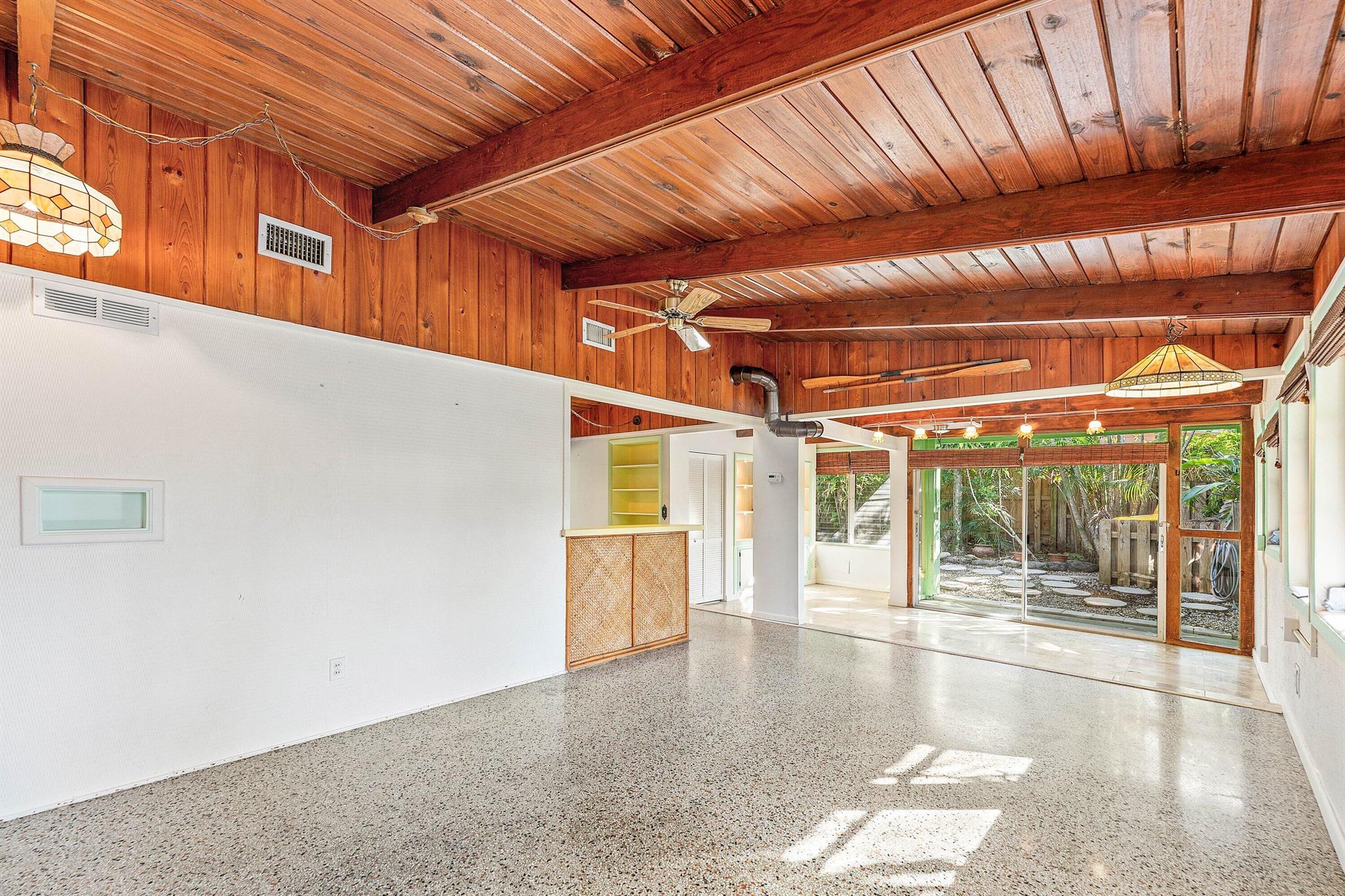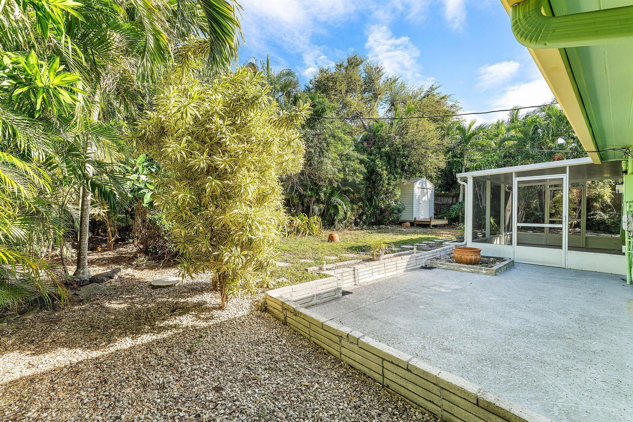 Welcome to your private Shangri la as this Key West 2/1 well maintained bungalow is nestled in a tropical setting. Enjoy the quiet nights in your screened lanai as you look out at large, treed backyard. This home features original Dade pine beams, terrazzo floors, metal roof new water heater, washer dryer, plenty of cabinets space and much more. A short walk takes you to your Day Dock on the St. Lucie River.