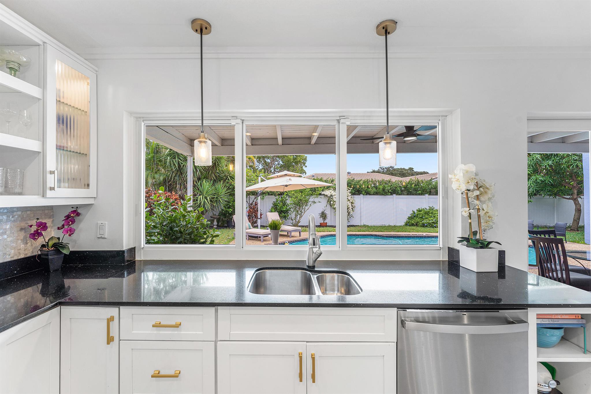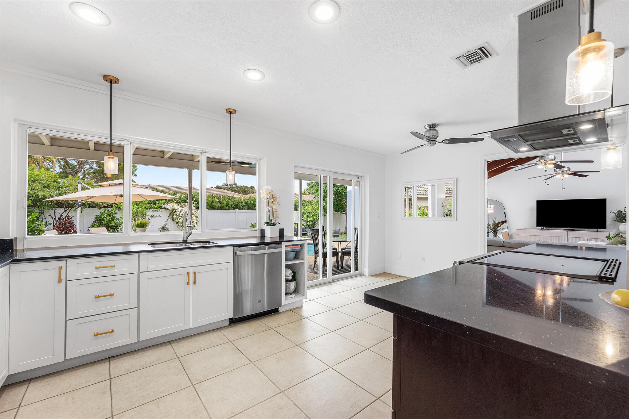 Perfectly situated in Central Boca with two separate gated entrances, this rare floor plan in Paseos is finally available! Upon opening the front door you are flooded with an abundance of natural light, as you look above you notice nearly 20 foot vaulted ceilings! This 4 bedroom, 2 bathroom residence features a renovated kitchen, adjacent to a formal dining area---- perfect for any chef or entertainer! Other notable features include a new roof, complete impact windows, 4 skylights- always making the home bright & light, new gutted, a separate laundry room, primary walk in closet, and so much more. This floor plan has not been on the market in years & won't last long! Paseos is conveniently located in between St. Andrews & Powerline. Tree lined streets, walking paths, tennis/pickleball