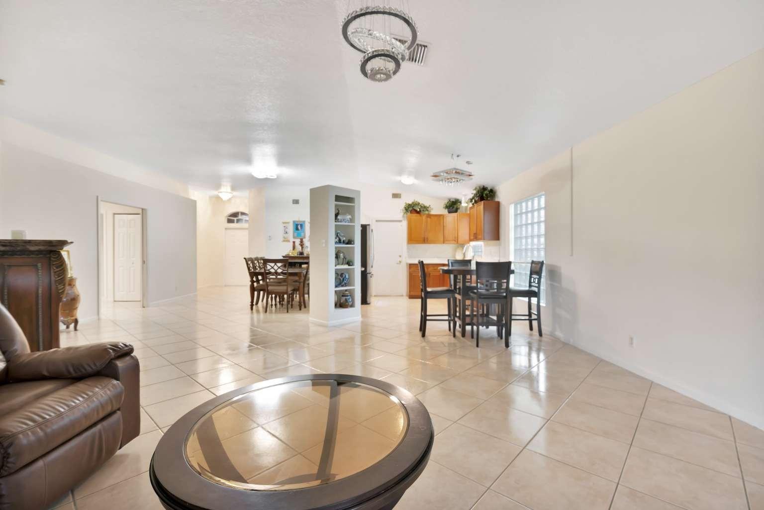 PRICE JUST REDUCED — Best value in Woodbine for a 3-bed single-family home with a screened patio and corner lot! This bright and well-maintained 3BR/2BA home offers an open, airy layout with vaulted ceilings, tile flooring throughout (no carpet), and excellent natural light. Located on a desirable corner lot in the gated Woodbine community, it provides a rare combination of privacy, space, and convenience. The main living area flows comfortably into the dining and kitchen spaces, creating an easy, functional layout for everyday living. The primary suite includes a walk-in closet, soaking tub, and separate shower. Two additional bedrooms offer flexibility for guests, a home office, or family needs.