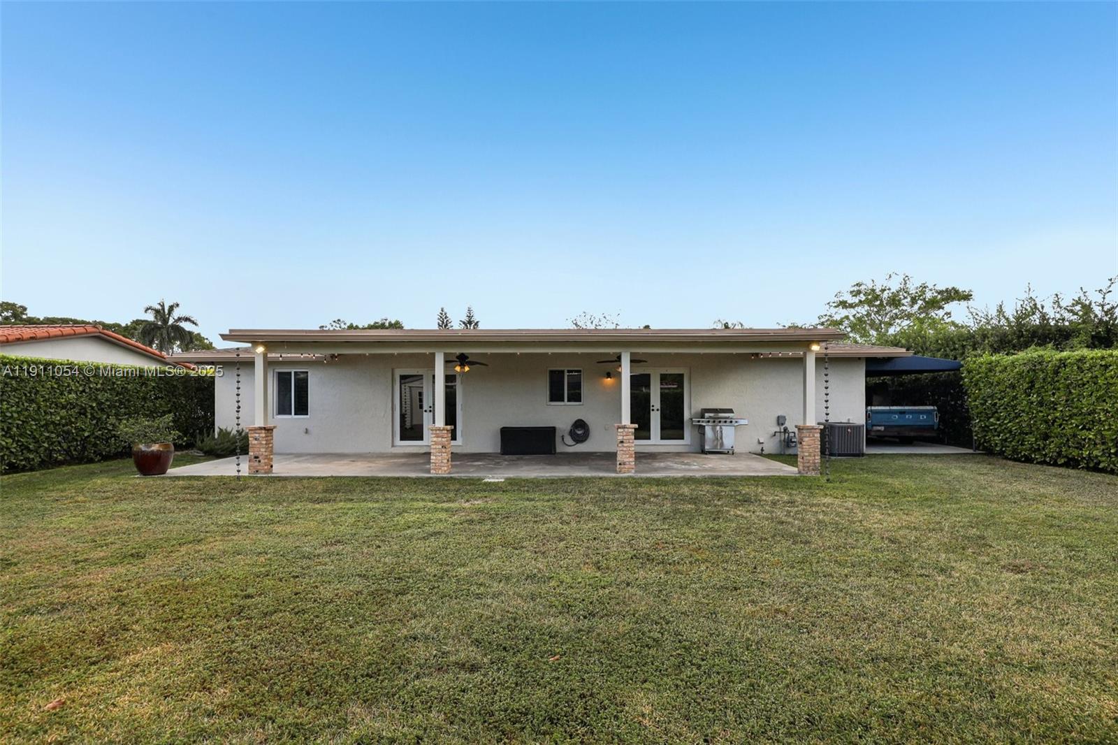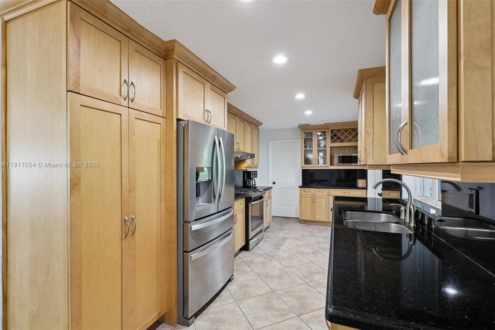 Discover this beautifully updated, move-in ready home located in desirable Kendall Lakes. Featuring a spacious split-bedroom layout and a versatile flex room ideal for an office, playroom, or guest suite. The modern kitchen offers 42” maple cabinets with crown molding, gas stove, and Whirlpool appliances. Enjoy impact windows and doors, LED lighting, plantation shutters, and elegant tile and wood floors throughout. The owner’s suite impresses with custom built-ins and a spa-style bath with marble and subway tile. Step outside to a large fenced yard with extended covered lanai, shed, beautiful Calusa hedges, and circular stamped-concrete driveway. Newer roof (2018), tankless water heater. No HOA—room for pool!