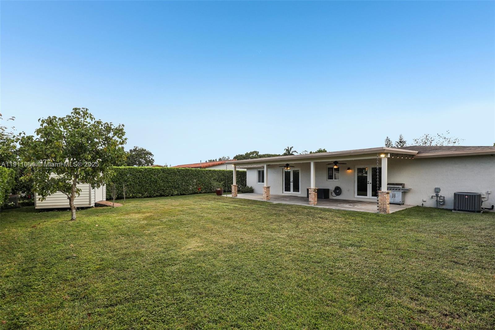 Discover this beautifully updated, move-in ready home located in desirable Kendale Lakes. Featuring a spacious split-bedroom layout and a versatile flex room ideal for an office, playroom, or guest suite. The modern kitchen offers 42” maple cabinets with crown molding, gas stove, and Whirlpool appliances. Enjoy impact windows and doors, LED lighting, plantation shutters, and elegant tile and wood floors throughout. The owner’s suite impresses with custom built-ins and a spa-style bath with marble and subway tile. Step outside to a large fenced yard with extended covered lanai, shed, beautiful Clusia hedges, and circular stamped-concrete driveway. Newer roof (2018), tankless water heater. No HOA—room for pool!