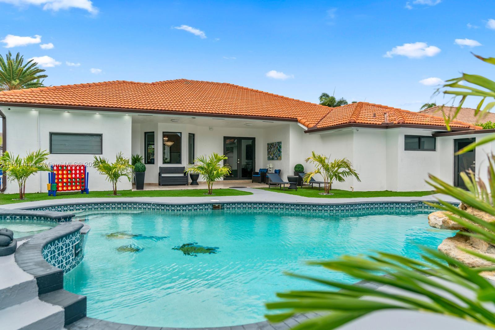 Discover this beautifully renovated home located in a quiet and sought-after neighborhood of West Kendall. This stunning residence features 4 bedrooms and 3 bathrooms with an open-concept design and high-end finishes throughout. The modern kitchen offers quartz countertops, stainless steel appliances, and custom cabinetry. Enjoy your private backyard oasis with a sparkling pool, spacious patio, and a stylish pergola — perfect for entertaining and relaxing. Additional features include updated bathrooms, tile floors, recessed lighting, and ample natural light. Conveniently located near top schools, shopping, dining, and major highways. Move-in ready and easy to show!