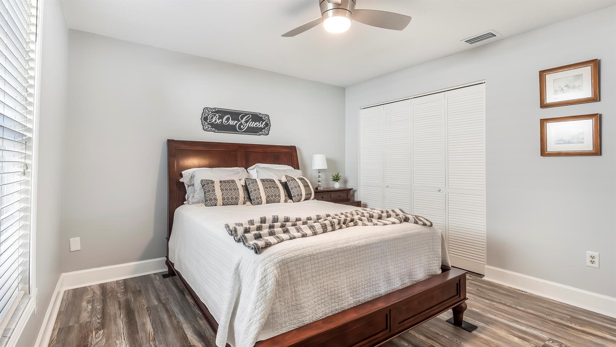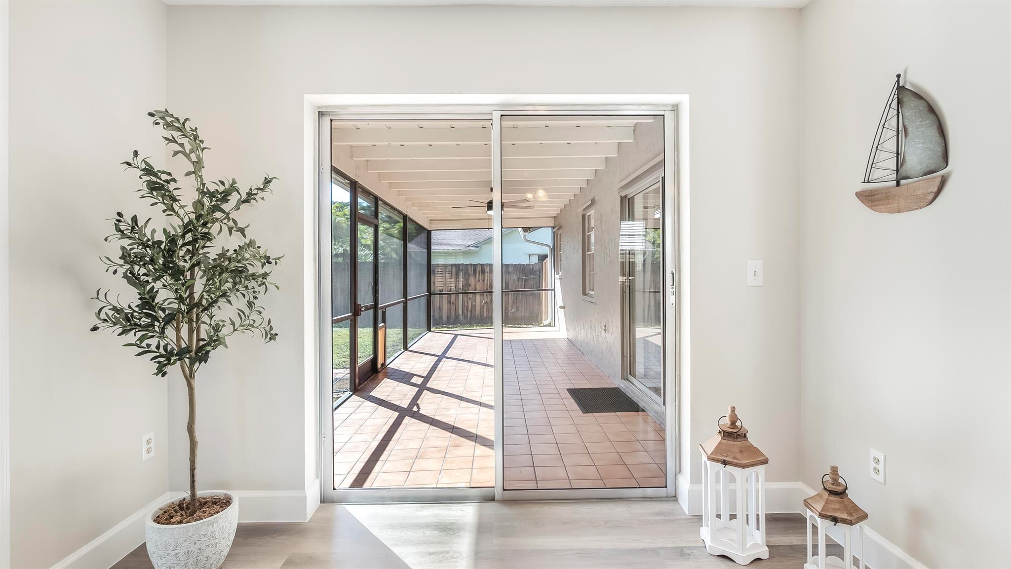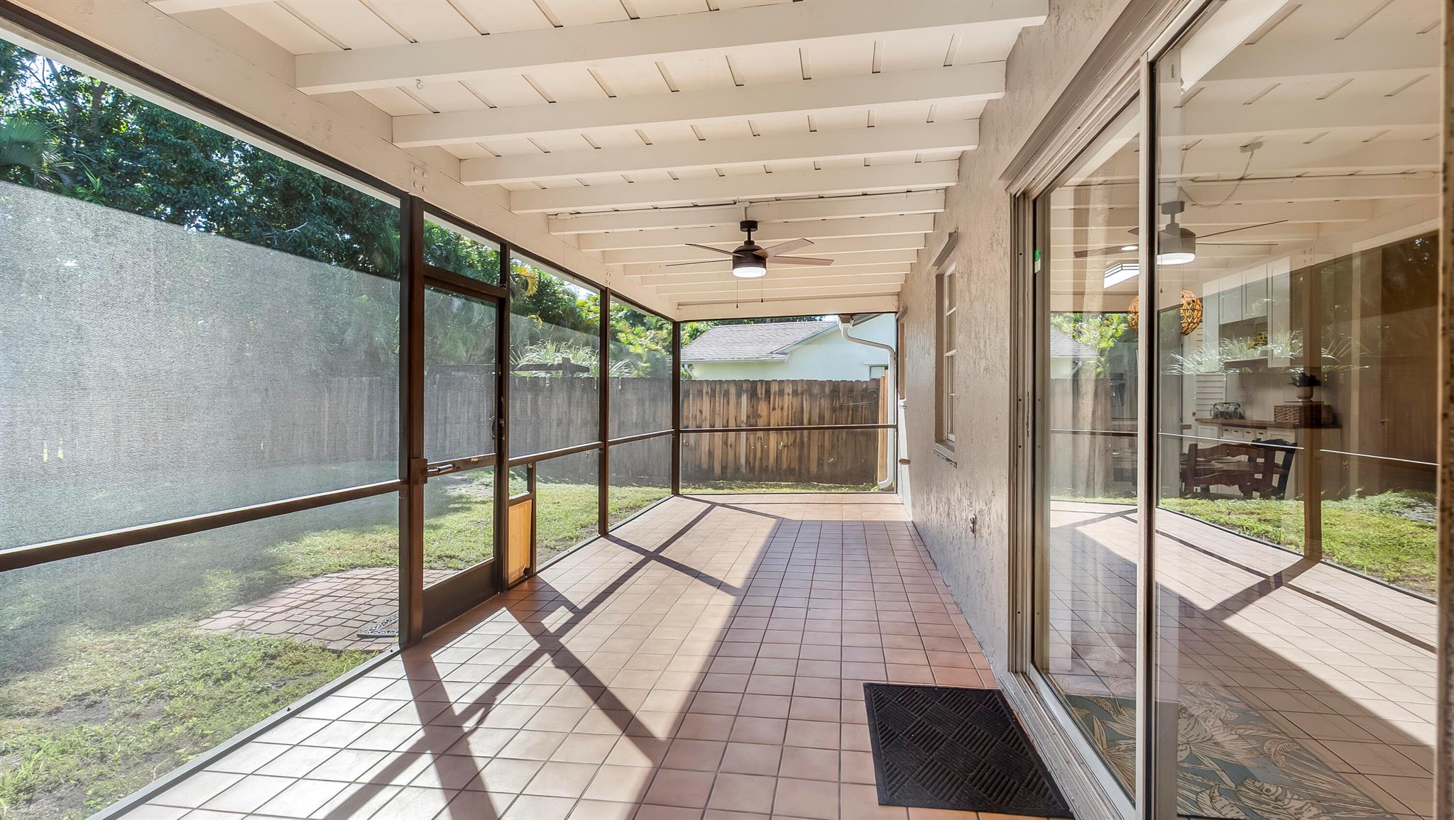 Bright and open Barwood Estates home featuring 3 bedrooms and 2 beautifully renovated bathrooms. The main bedroom offers a walk-in closet, and the home has no carpet and no popcorn ceilings--recently removed for a fresh, modern feel. Freshly painted inside and just painted exterior make it truly move-in ready. Enjoy a spacious covered and screened patio, and large backyard with no direct rear neighbors, ideal for relaxing or entertaining and future customization. Includes a dedicated indoor laundry room, complete hurricane shutters, very low HOA, and A-rated schools. Excellent Boca Raton location near shopping, dining, and major highways.