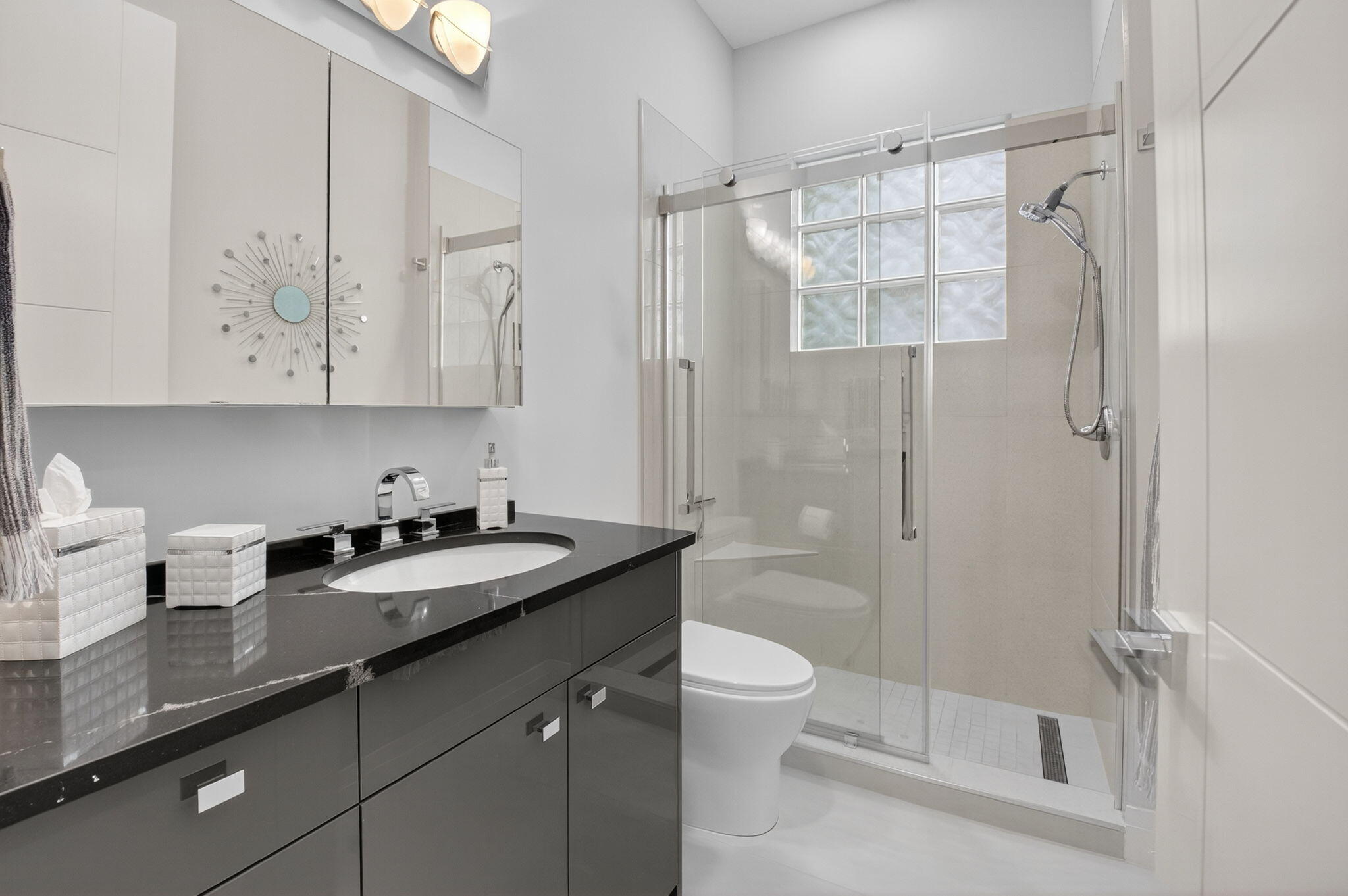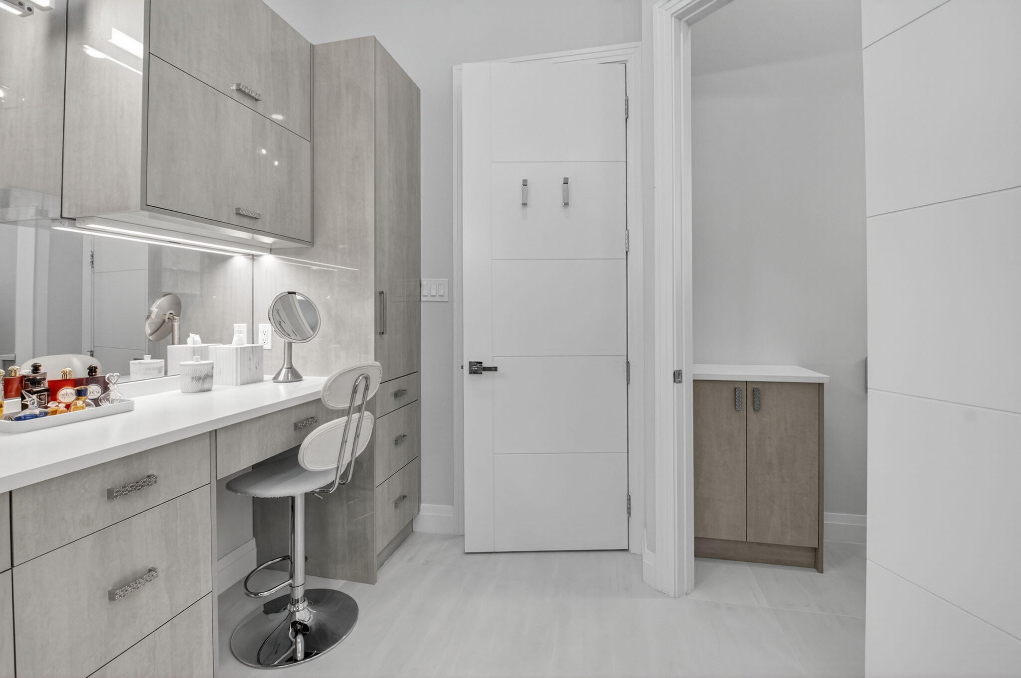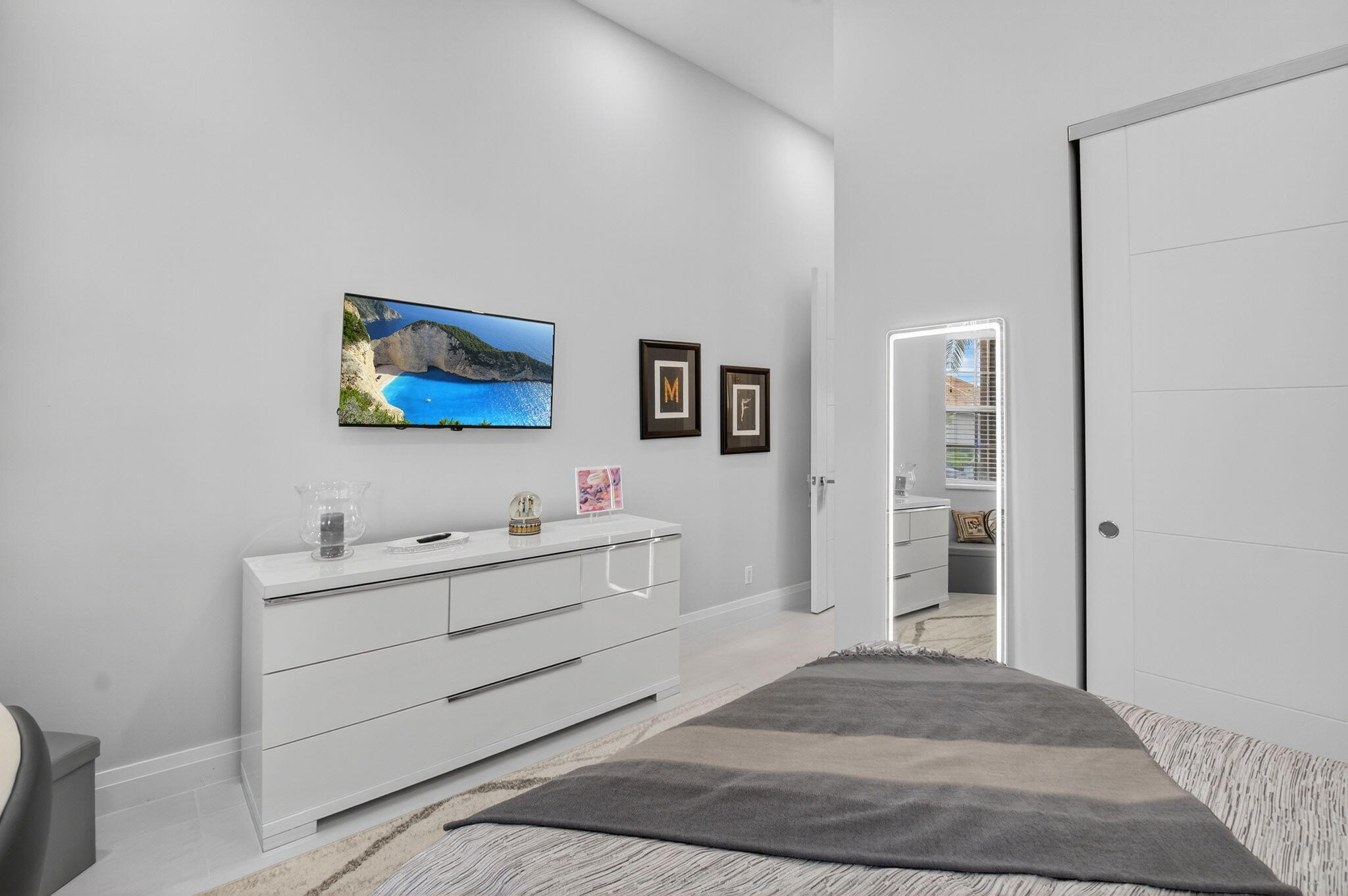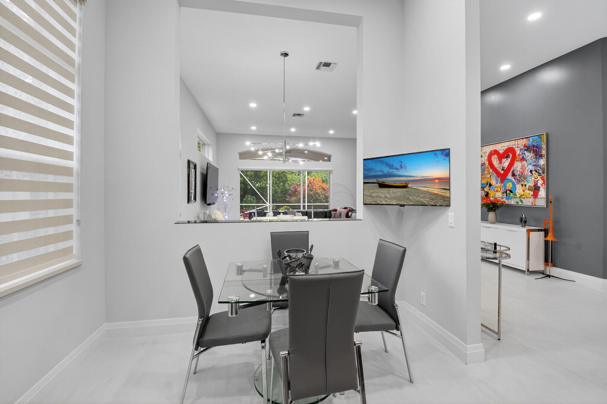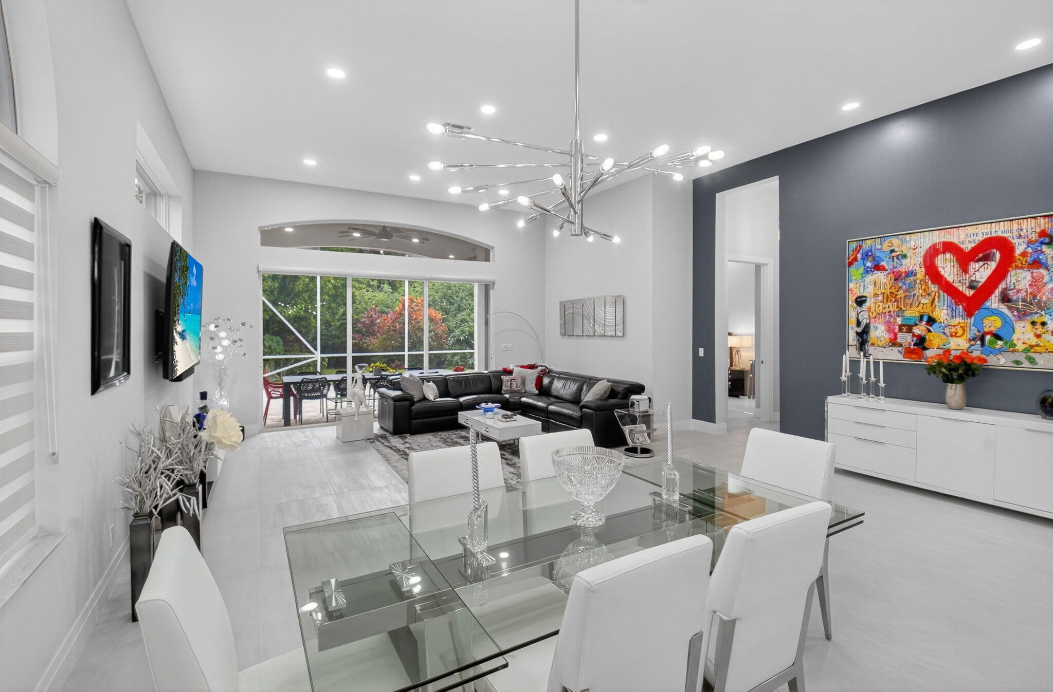 Step into luxury with this beautifully updated home featuring designer details and exceptional craftsmanship at every turn. The open-concept layout boasts 12' ceilings and porcelain 24x48-inch tile flooring throughout, creating an elegant and spacious feel. The gourmet kitchen is a chef's dream with quartz countertops, a striking porcelain island, GE Cafe appliances with Bluetooth capability and a granite composite sink with a Kohler touch free faucet.. You will find amazing storage space in the kitchen with pull out shelves in the pantries.Relax in the spa-inspired primary suite offering a separate raised soaking tub and walk in shower with raised floor, and enjoy the convenience of a large custom-fitted bedroom closet providing abundant storage.