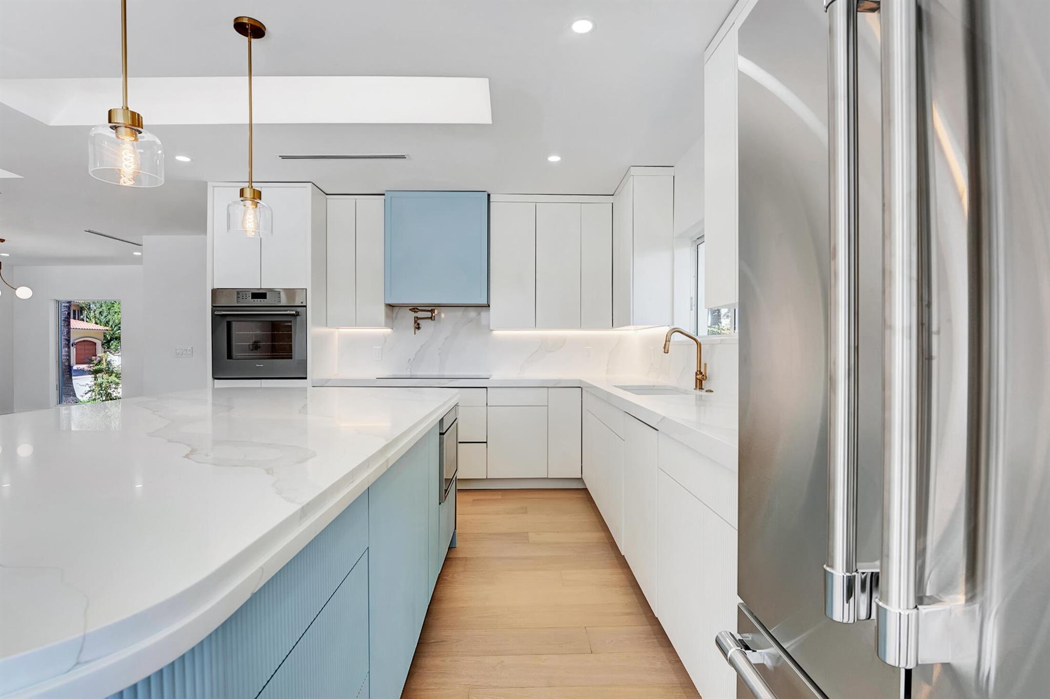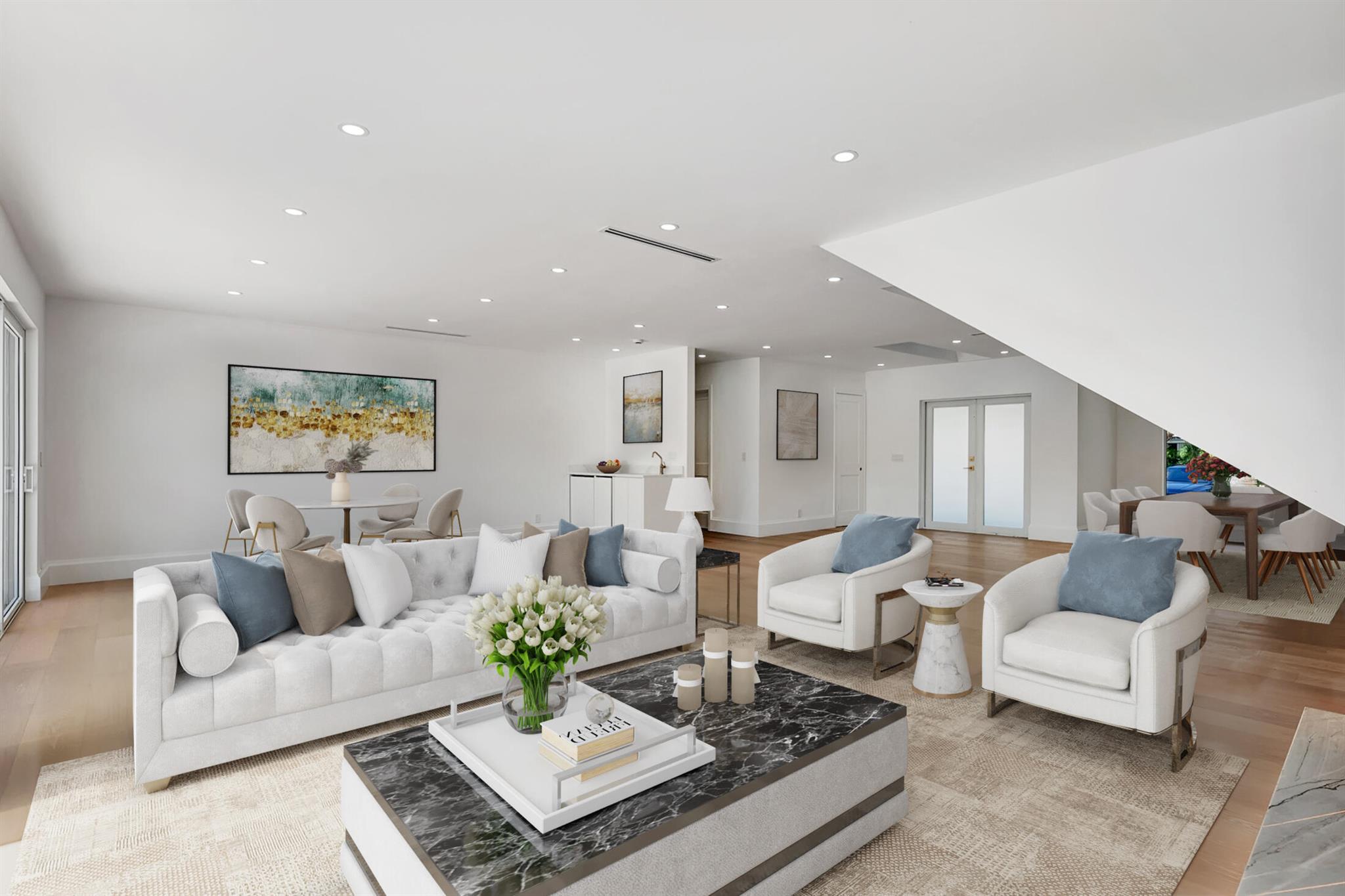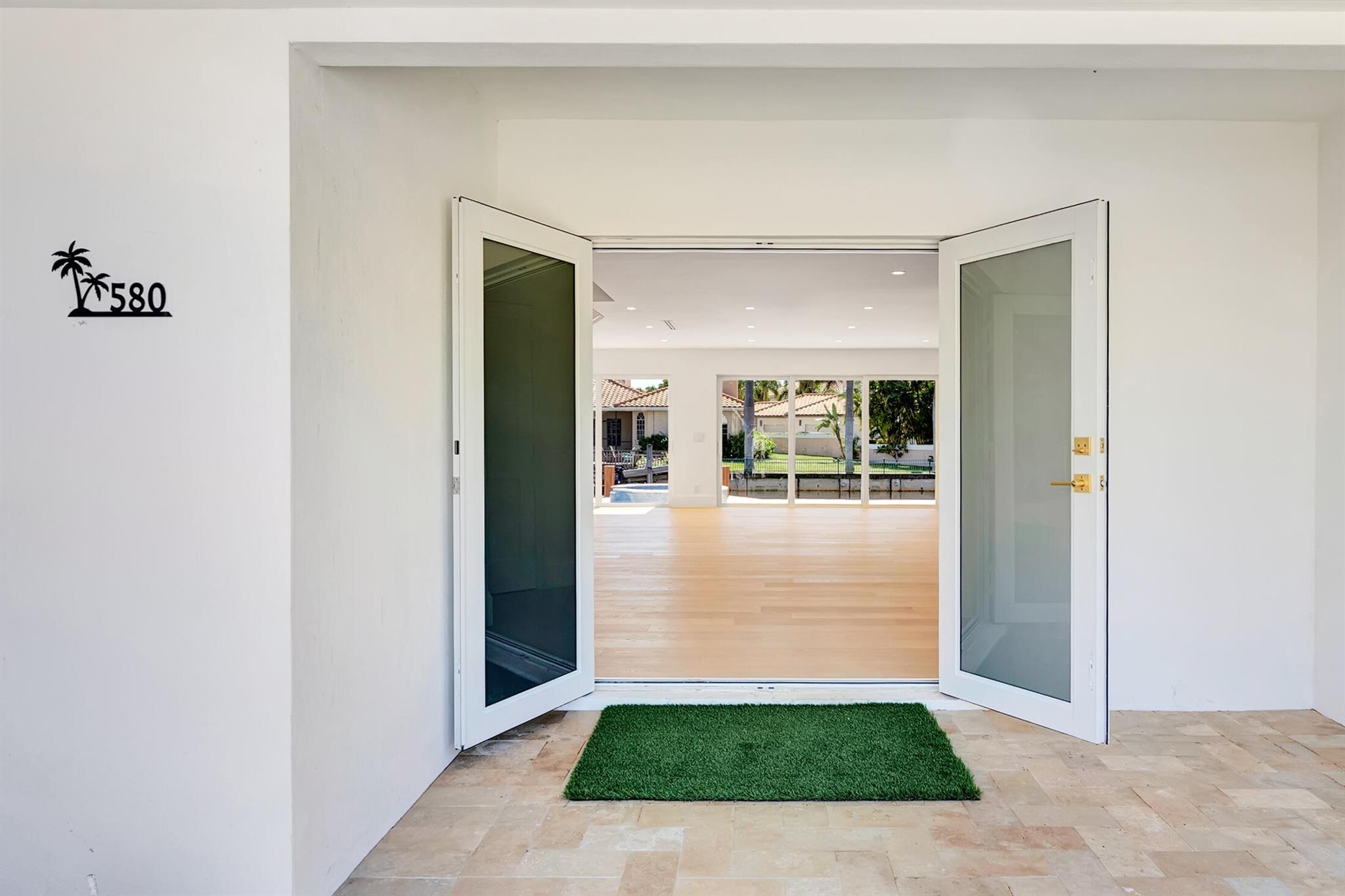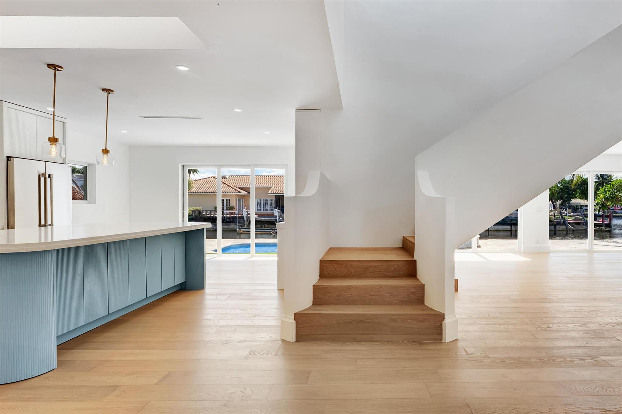 Step inside The Boca East Estate - a fully re-imagined, nearly 4,000 Sq Ft luxury retreat on a private, .23-acre cul-de-sac lot showcasing 100+/- feet of waterfront living and private dock. Perfectly situated just 5 minutes from Downtown Boca Raton, this estate offers an exceptional lifestyle close to Mizner Park, Royal Palm Place, The Boca Raton Club & Resort, fine dining, and pristine beaches. With its bright southern exposure and breathtaking views of the Intracoastal waterway, this home does not disappoint. From the moment you step inside, you'll be captivated by the open living room overlooking the pool and waterfront patio. The chef's kitchen is outfitted with Thermador appliances, quartz countertops, and custom maple shaker cabinetry, setting the stage for elegant entertaining.