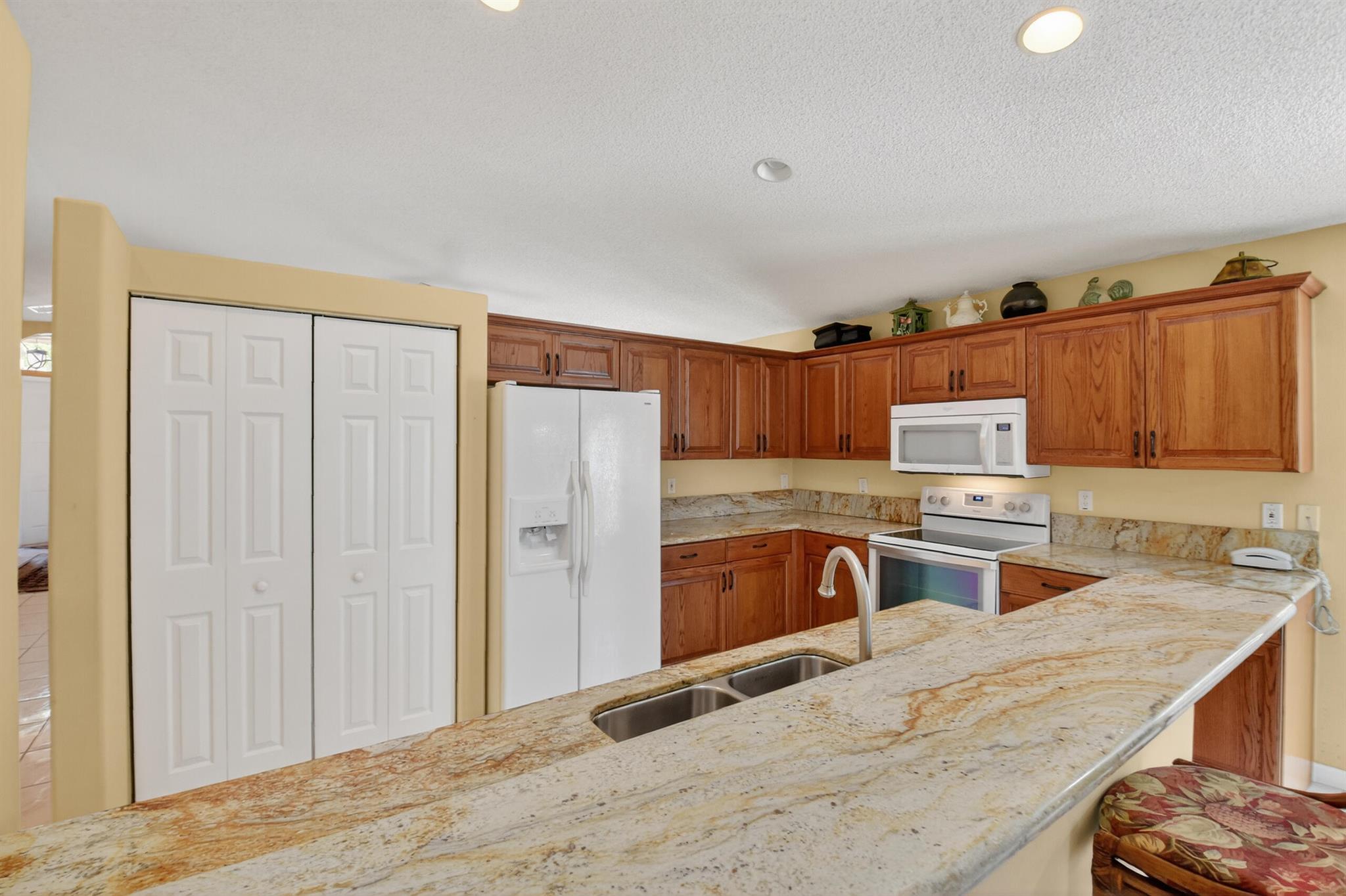 Perfect opportunity to make this originalbuilder's model your own design! This3/2 home is located in Atlantic National @ Lacuna, an all -age golf community with NO MEMBERSHIP FEES! Enjoy 2,155 sq ft. living space with 3 large bedrooms w/wood floors, formal living room & formal dining room, , kitchen with breakfast area overlooking a large family room The kitchen has granite counters & wood cabinetry. Master Bath has separate tub & shower with dual sinks. Roof only 4 yrs old and A/C is 2 years old.Enjoy & relax sitting out on the fully screened patio w/landscaped garden.This home is all tiled and has plenty of closet space. The community has a new gym and playground. A MUST SEE!