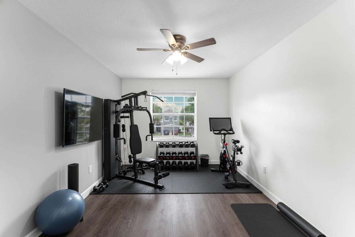 Sitting on an oversized lot in the prestigious Madison Green community and offering the largest model in Wyndham, this Berkeley Five has been thoughtfully updated and beautifully maintained. The modern, updated kitchen features sleek cabinetry, high-end stainless steel GE Profile appliances, and ample counter space--perfect for entertaining or enjoying family meals. You'll also appreciate the updated LED lighting throughout, bringing energy efficiency and a warm, inviting glow to every room.The interior was recently painted, and the garage offers extensive extra storage, including convenient overhead bins. Accordion shutters upstairs make storm preparation simple and stress-free. The upstairs loft provides a great bonus space and can easily be converted into a 5th bedroom if desired.