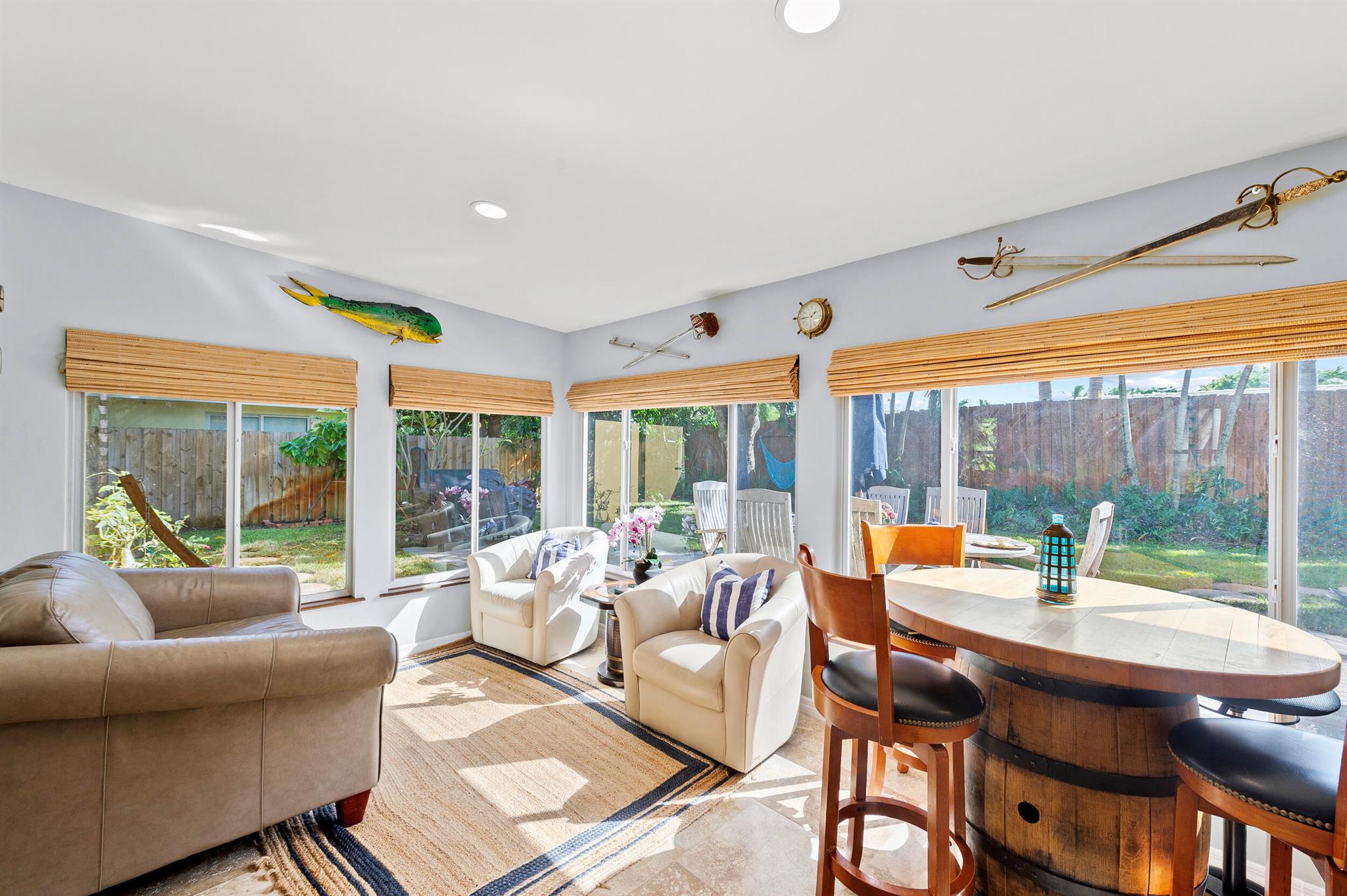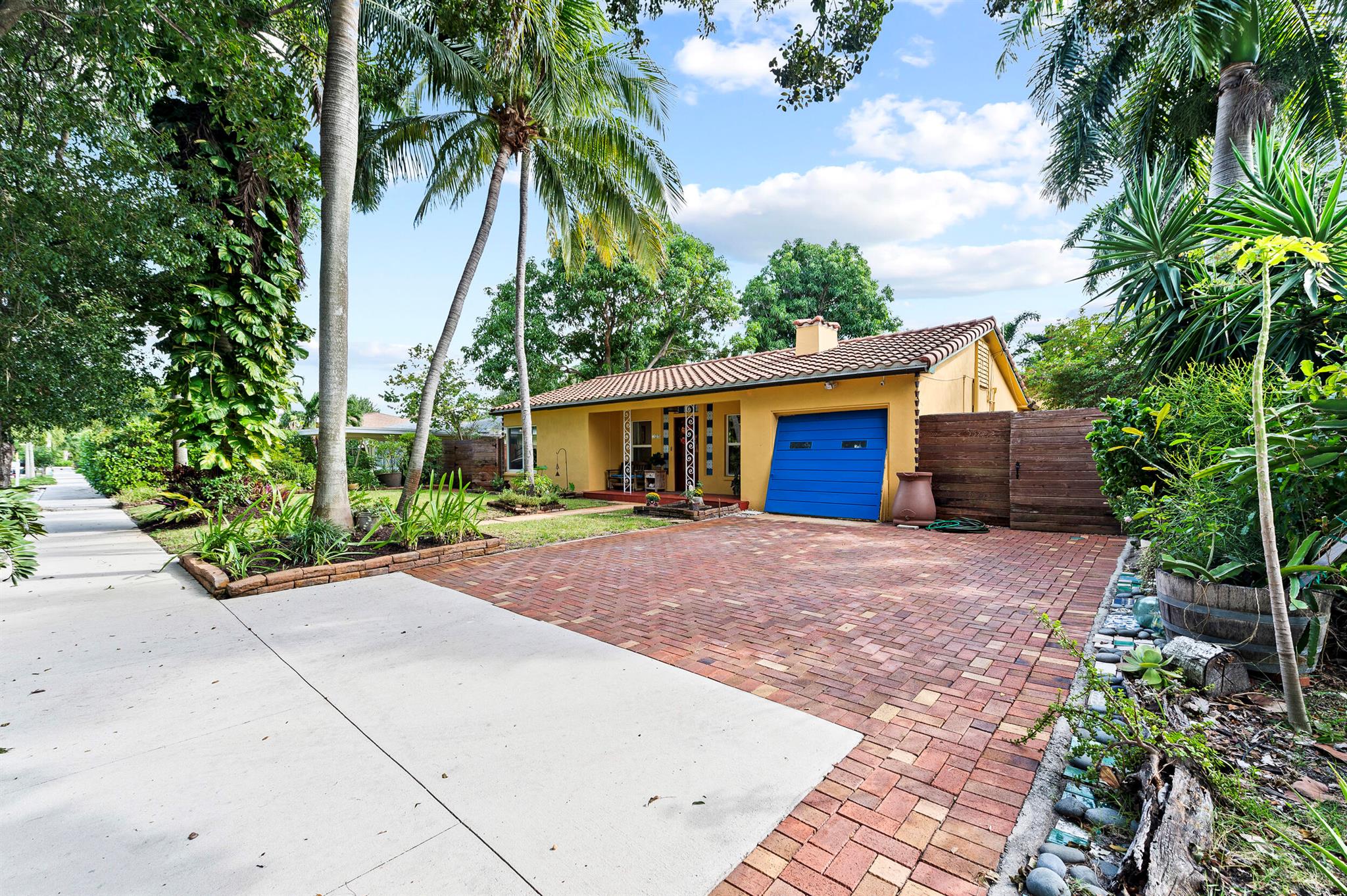 Immaculately maintained one-level 3/2 home, NO HOA, on an oversized lot with private fenced-in tropical oasis backyard. Imagine strolls along mature, tree lined streets, sidewalks and easy access to nearby parks, intra-coastal waterway, zoo, shopping & dining at CityPlace, golf, beaches, and more. *Only 10 MINUTES to the airport!* Travertine marble & wood floors, gorgeous gourmet kitchen with custom solid walnut/ash cabinets and special pull outs trimmed in mahogany plus granite counters, built-in wine rack and premium stainless gas appliances. Did we mention a fireplace? Hand painted deco tiles, wet bar, original built-ins, a 1-car garage. Roof replaced in 2020, hurricane shutters throughout, updated plumbing and electric. Full-size W/D in garage. Well-fed sprinklers. Room for RV / Boat.