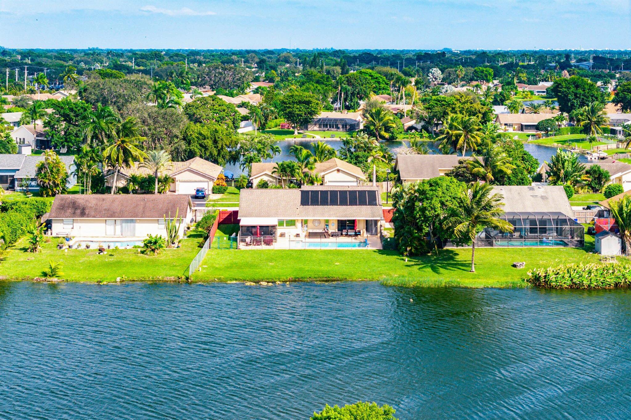 Beautifully updated 3/2 pool home with breathtaking lake views. Newly painted exterior with accordion shutters. Driveway and walkways updated and widened with elegant pavers. Roof treated by RoofMax (2025) Energy-efficient 4-ton Trane A/C, added attic insulation (R49 total), and new water heater. Saltwater pool and solar heat, color-changing LED lights, and a 5-person spa. Screened front porch and back patio, spacious fenced yard with a double-wide gate for RV or boat parking(11'x69'). Interior features 24x24 tile, a modern kitchen with 2021 appliances, new washer/dryer, security cameras, and keyless entry. Take in stunning lake views from the main bedroom, living room, and kitchen. This home combines thoughtful upgrades, low maintenance, and true indoor-outdoor living.