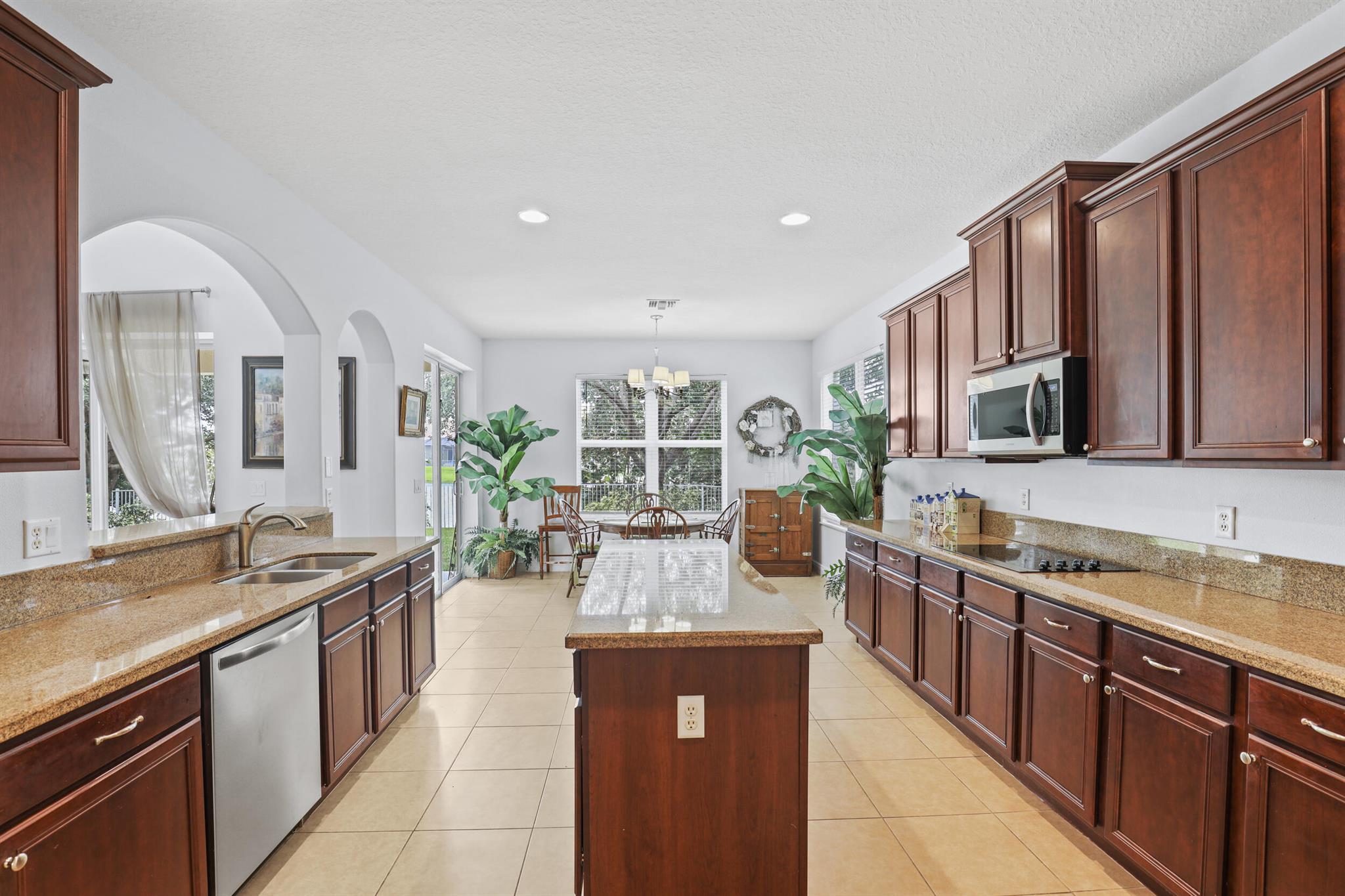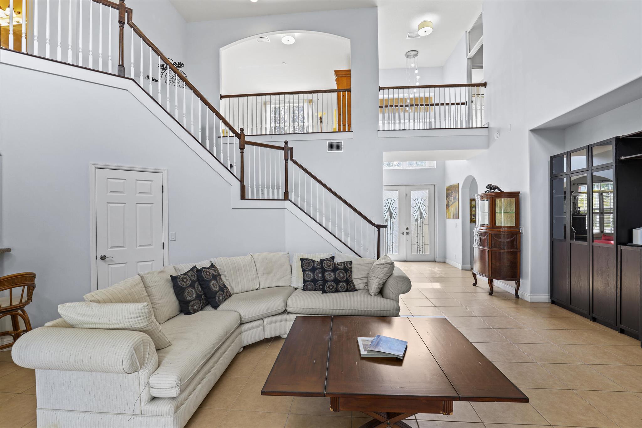 Perfect for multi-generational living, this spacious estate home is built w/ CBS construction, impact windows, doors & sited on a premier fully fenced lakefront lot. The gracious living area has volume ceilings and an outstanding floor plan. The primary suite plus additional bedroom are conveniently located on the main level. Upstairs, you'll find the remaining bedrooms, a loft, and a distinctive ''West Wing'' offering two bedrooms plus a grand bonus/flex space (perfect for a movie theater, golf simulator, club room, or any dream setup.) Other highlights include renovated primary bath, upstairs balcony, an additional staircase, extended driveway, and a striking front entry door. Exceptional value in this well-built home, ideally located within a gated community just minutes from I95