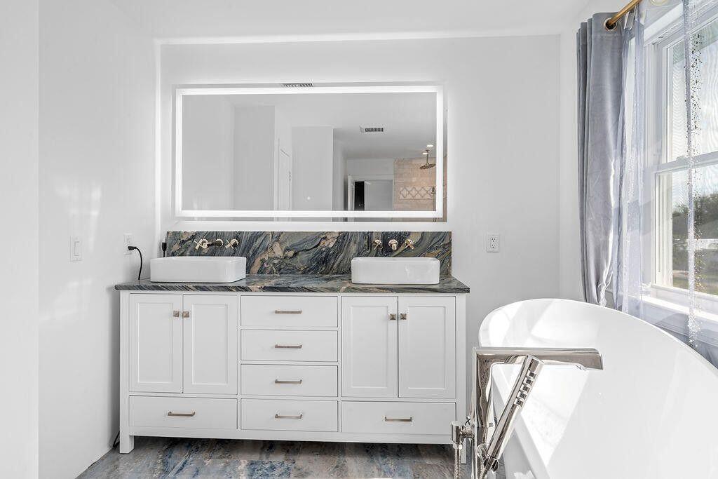 Outstanding rebuilt 2022, 2-story corner-lot built on helical plates, home featuring 5 beds, 4 baths, new heated lit in-ground pool with infinity jacuzzi & cabana bath. New standing seam metal roof, Anderson impact windows/doors, new HVAC, Insta Hot tankless system & 10-ft ceilings. Custom kitchen with Viking appliances, propane gas range, upgraded cabinets & countertops. Porcelain tile floors, oak stair risers on hardwood half-circle stairs, laundry up & down. Grand primary with huge walk-in closet w/ washer/dryer & spa bath. Custom garage storage, generator & mini split hook-ups, gas grill connection, lush landscaping, large fenced backyard, with space to enlarge, Perfect home for entertaining!