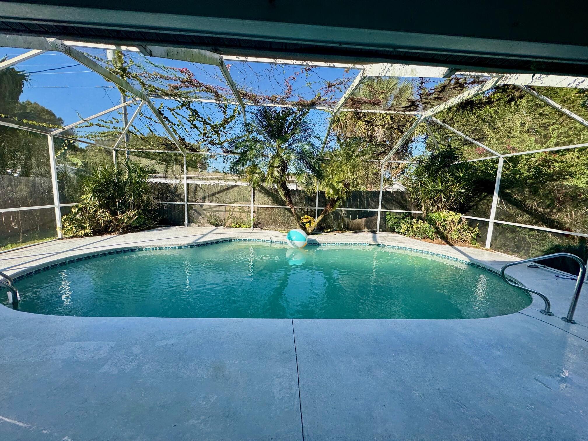 Cute, large CBS 2/2 in desirable neighborhood. Close to schools, shopping and 10 minutes to the beach. New roof 2024. Beautiful pool. House had ceiling damage from old roof leaking. All new sheetrock and popcorn has been installed and all mold was mitigated. House needs some updating/renovation.