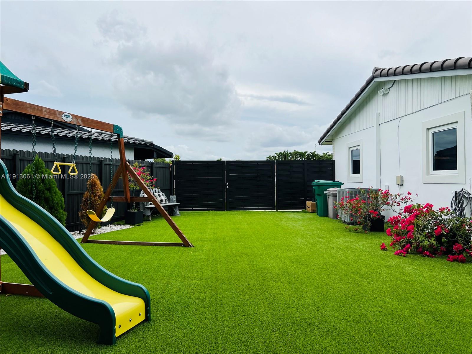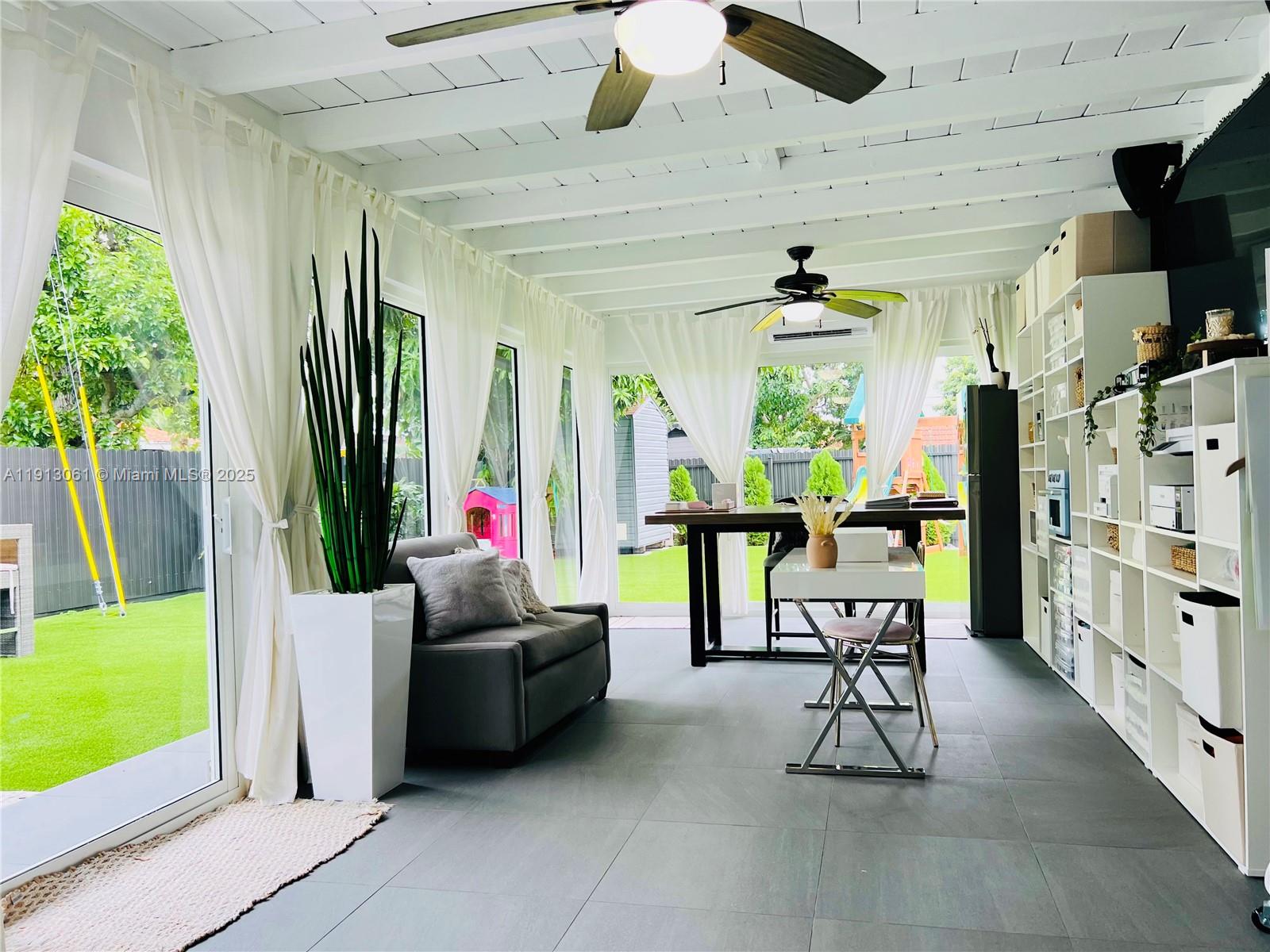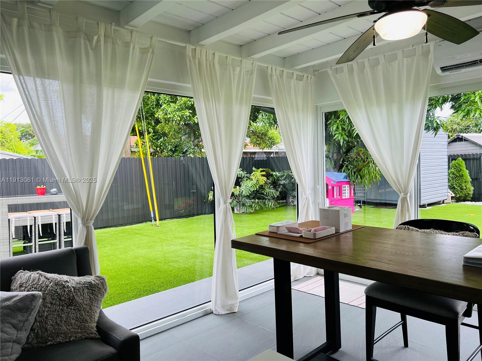 Rare to find this completely remodeled 4 bedrooms, 3 bath in the highly sought after Westchester neighborhood. House offers a modern yet cozy Miami life style, Stainless steel appliances, quartz countertops, ceramic floors, impact doors and windows, newer roof, aluminum fence all-around, Brand-New Pool, all done with City permits. A huge Florida room that spans the full width of the house boasting a wood beamed ceiling, overlooking the enclosed terrace with its own A/C unit. Spacious yard for entertainment and family gatherings, pool, play area, all covered with evergreen waterproof artificial grass. Look no more, Welcome to paradise.
