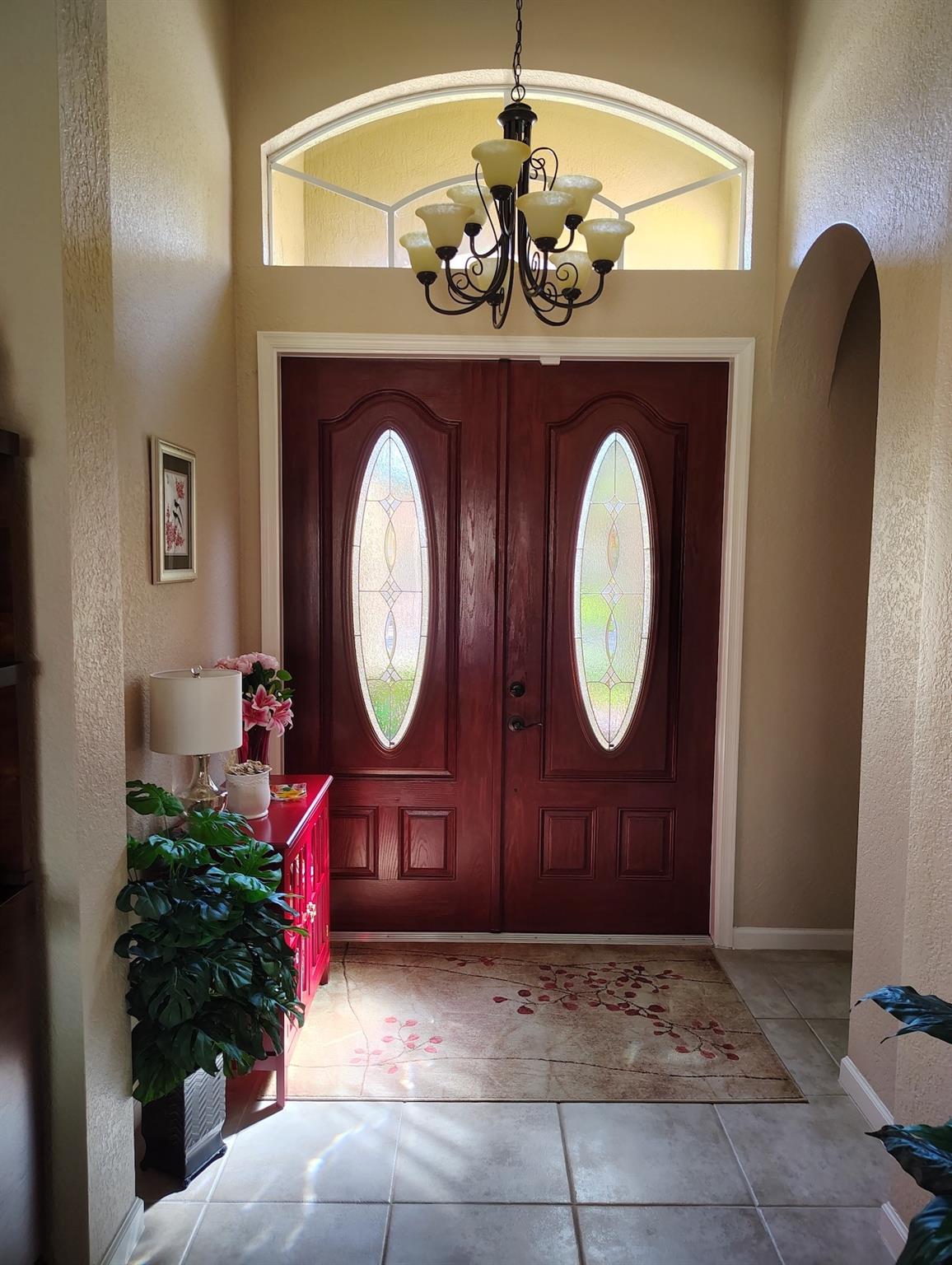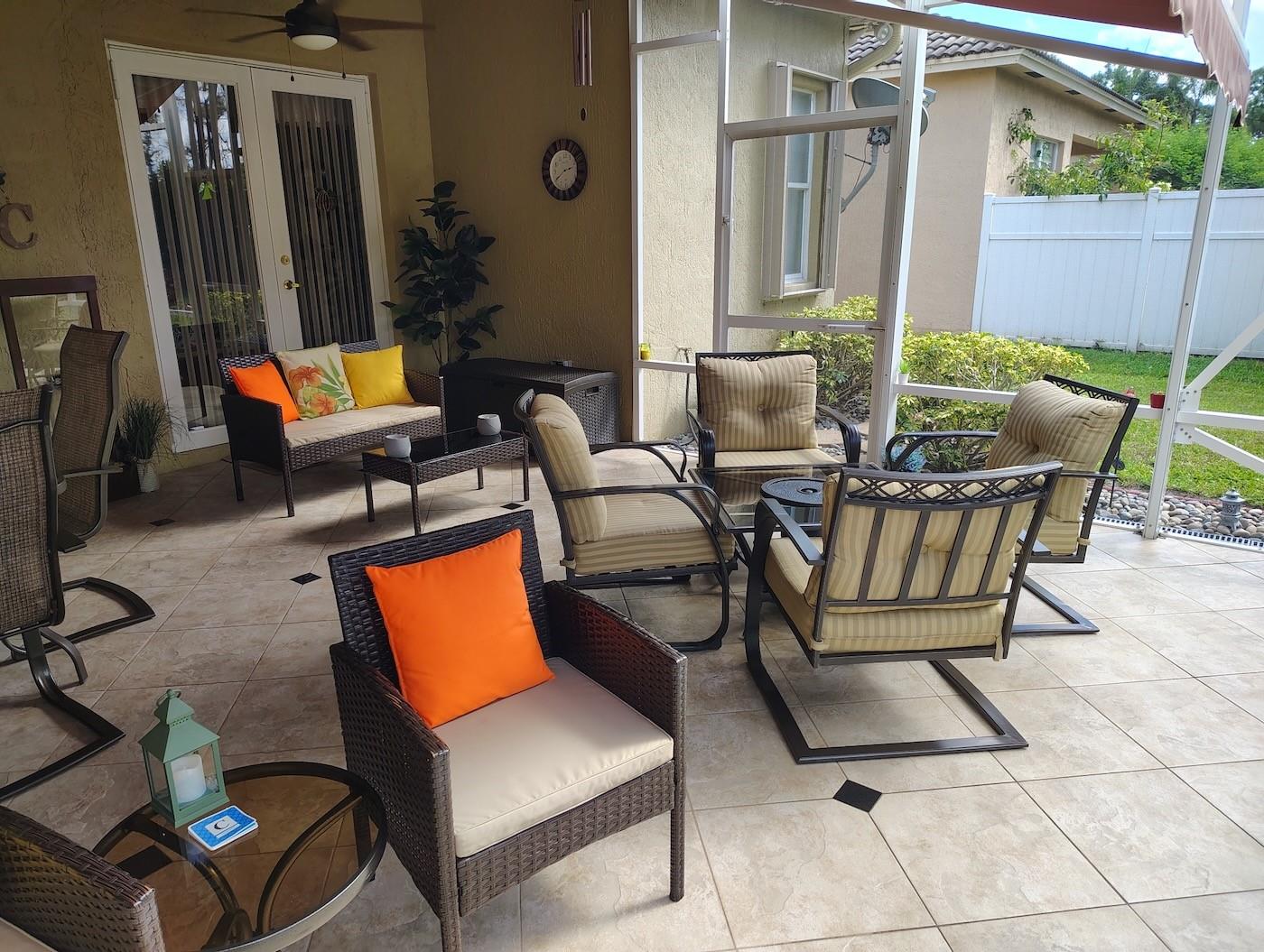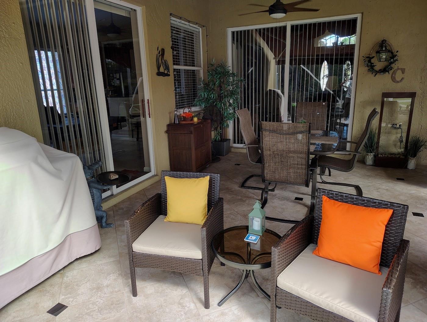 Highlights of 5423 Place Lake Drive: 1. Portofino Shores. 2. This remodeled Roma model has 2120 sq. ft. of under air living space and 3053 sq. ft. of total living space which includes the garage and lanai. 3. The large screened-in lanai has 430 sq. ft. of living space and overlooks the back yard and preserve area, a polycarbonate plexiglass roof, a custom remote controlled retractable awning, and 2 remote controlled ceiling fans with lights. 4. The remodeled kitchen has custom built stained cabinets, under cabinet lighting, granite counter tops, decorative backsplash, pantry and all stainless steel appliances. 5. The master bedroom has an en suite with garden tub, his and hers separate vanities, water closet, walk-in shower, walk-in closet with clothes/storage