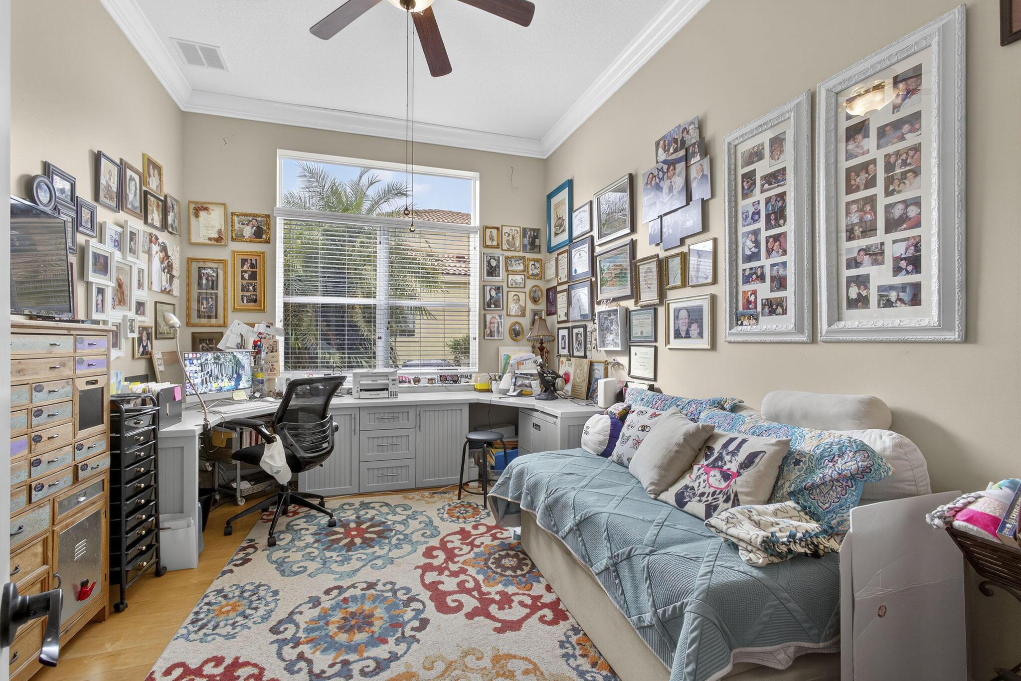 The ''good life'' is defined by Buena Vida, a resort style, full amenity, lifestyle community. Situated in cosmopolitan Wellington, which offers a bevy of restaurants & shopping with of fine merchants featured at the Wellington Green Mall.. This home ia a popular model featuring a great room, & a modernized open format kitchen. Two bedrooms & a convertible den/office (or bedroom) with 2.5 baths to serve the needs of the owners and guests. This lakeside home has recently been modernized with new 28X28 porcelain tiles throughout the main living area. Natural honey toned wood flooring is a warm feature in the primary bedroom. The recent kitchen remodel features quartz countertops & an island sink, offering breakfast bar seating. New white cabinets deliver a move in ready new home.