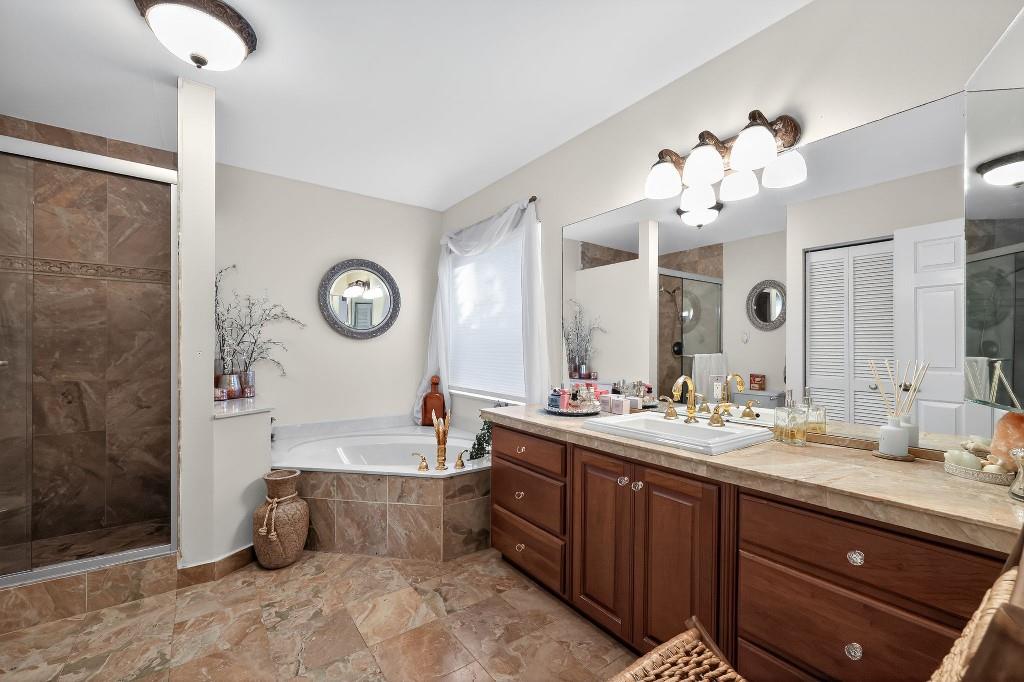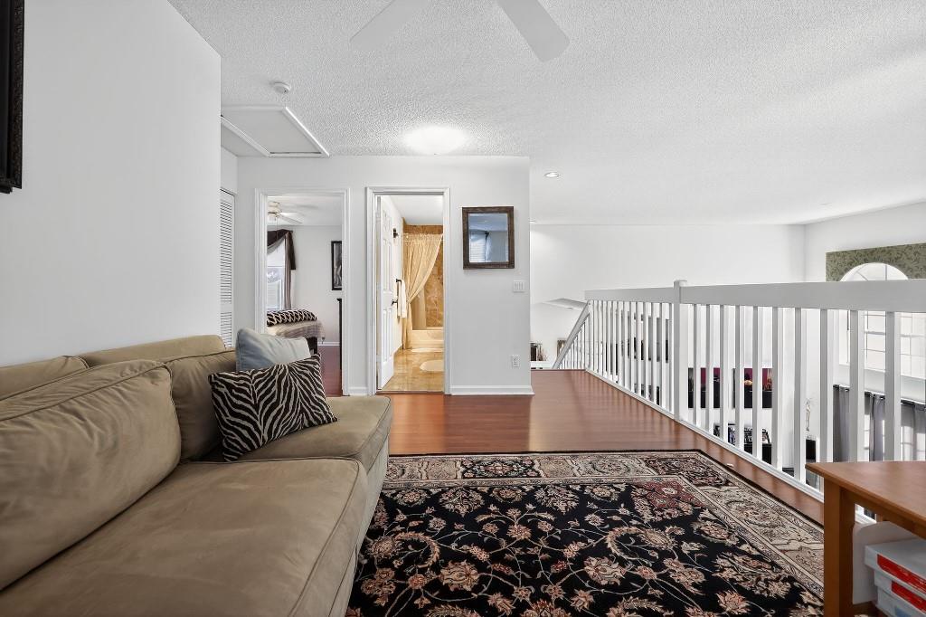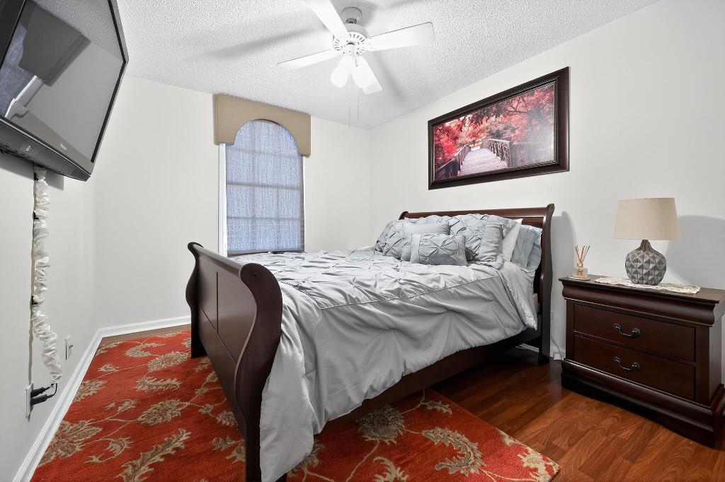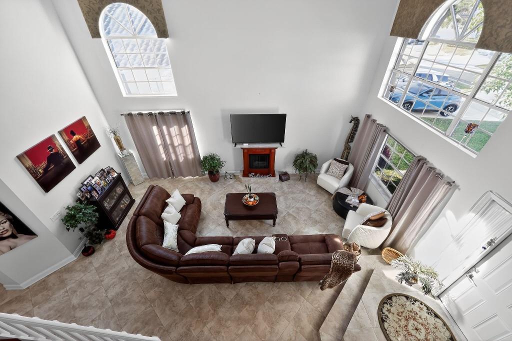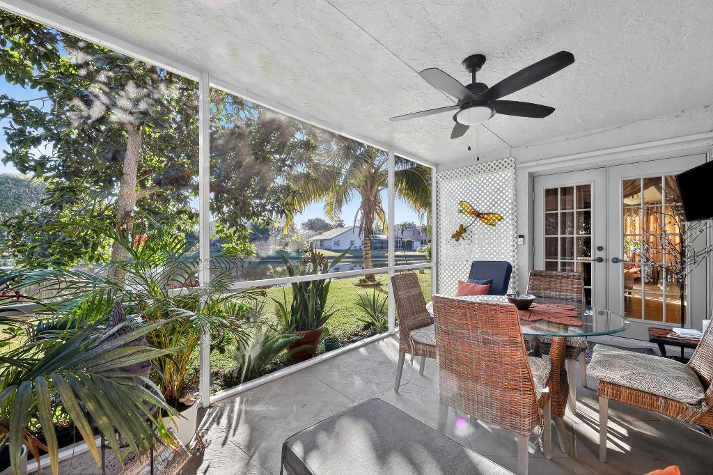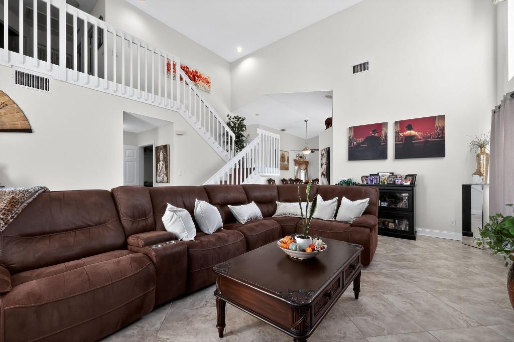 Welcome Home to this beautiful oasis located in The Estates at Windchime Lakes, a private gated community. Updates include roof, CAC, exterior painting, and enclosed patio. This home has an open floor plan with high ceilings, primary bedroom and laundry on first floor. The kitchen is equipped with custom wood cabinets, granite countertops, stainless steel appliances, tiled floor, and sliding glass doors that look out onto the lake. Living room and dining room have high ceilings, tiled floors, and large windows with alot if natural sunlight. Primary suite has ensuite bathroom with jacuzzi tub and stall shower as well as sliding glass doors to an enclosed private patio. The second floor boast 2 bedrooms, 1 full bathroom, and a loft style office area. Community amenities including a resort-st