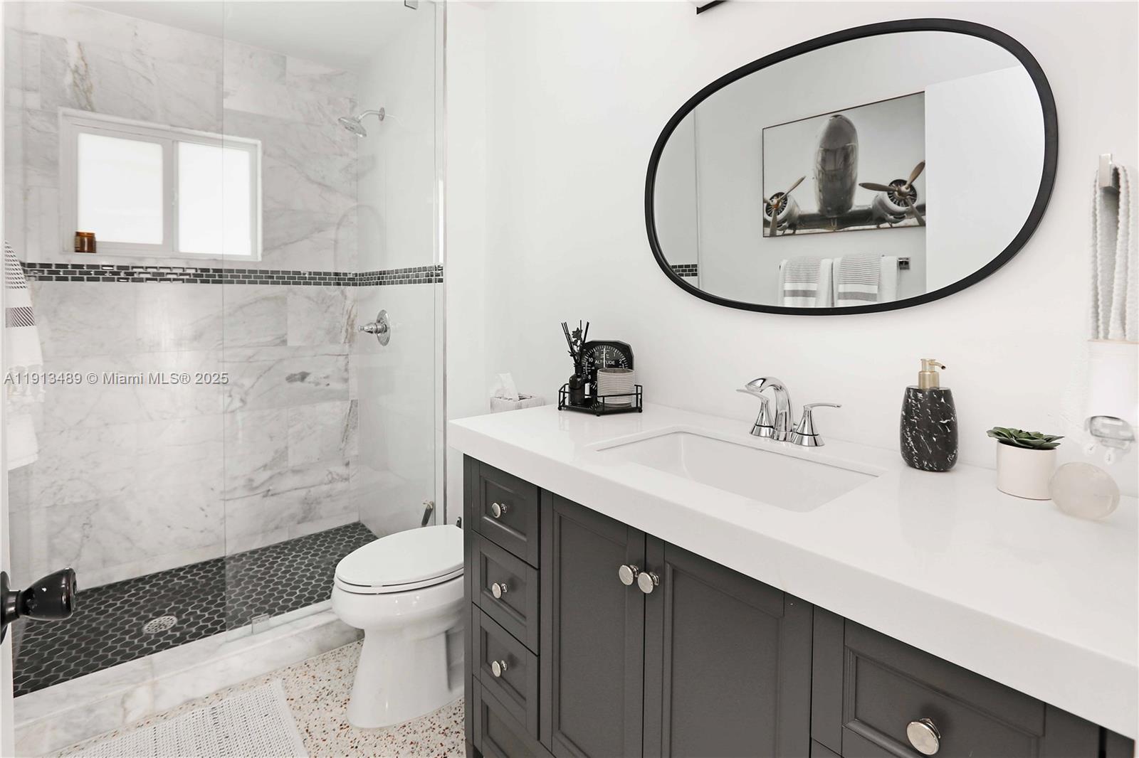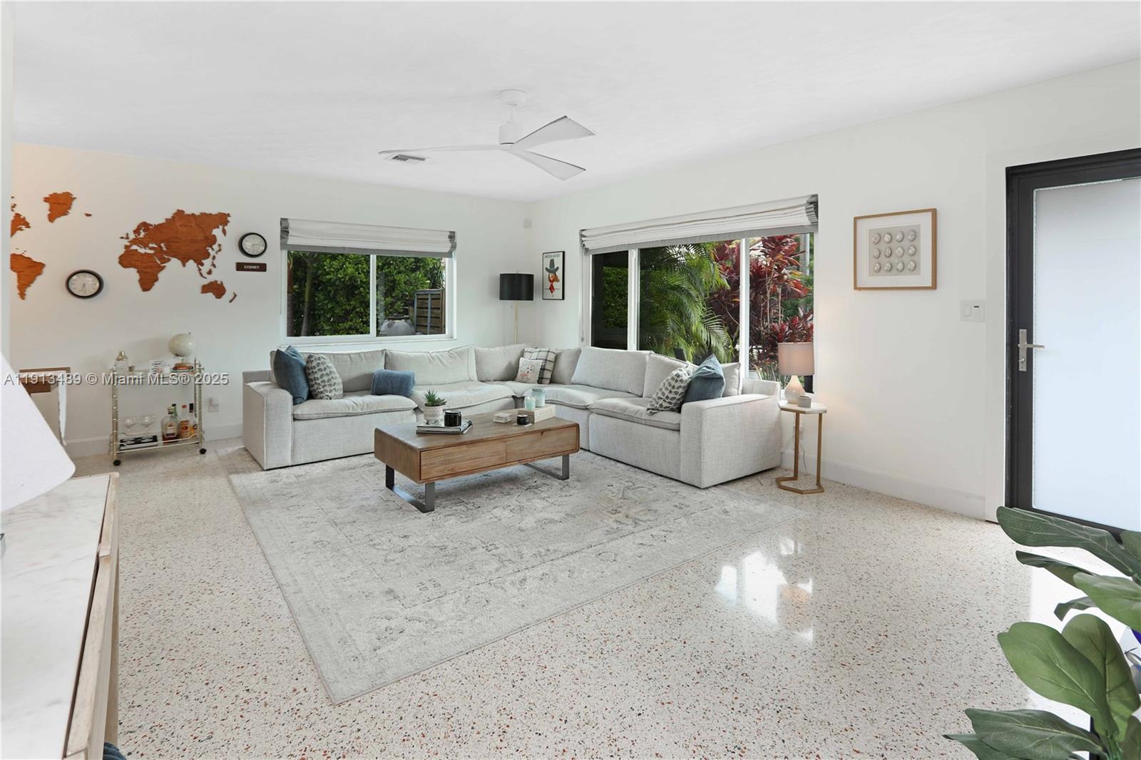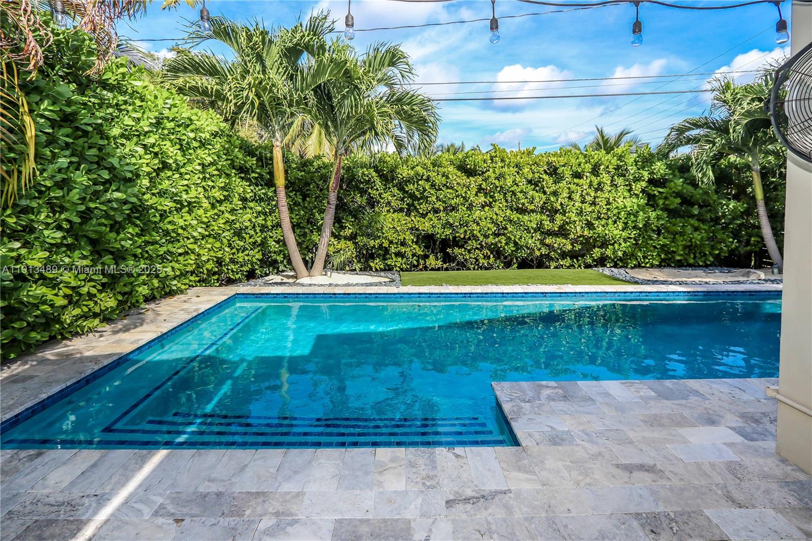 Step into timeless style and modern luxury with this beautiful 3 bed, 3 bath pool home just minutes from North Lake and the beach. This home has been meticulously maintained and thoughtfully upgraded through out the years, showcasing original terrazzo floors and an open floor plan perfect for entertaining. Enjoy a sleek newer kitchen with Italian two-tone cabinets, waterfall countertops, and stainless steel appliances. Featuring two primary en suites plus a guest bedroom and full bath, the layout is perfect for entertaining or hosting. Outside, your private tropical retreat awaits—complete with a gorgeous pool, summer kitchen, outdoor TV, lush landscaping and a shaded canopy. The Florida lifestyle at its finest!