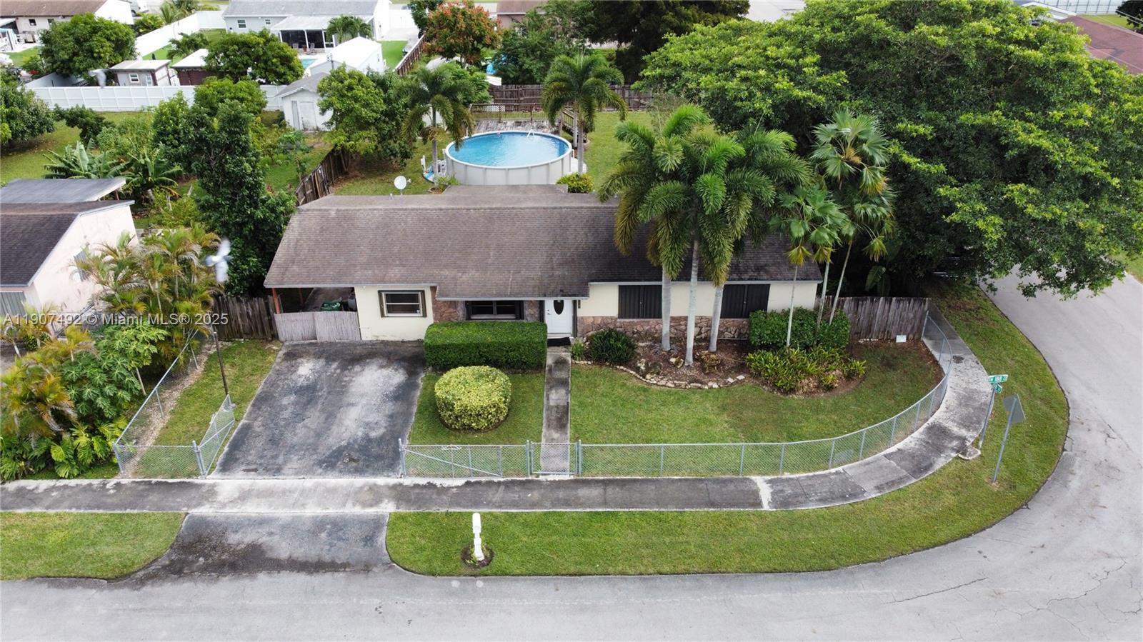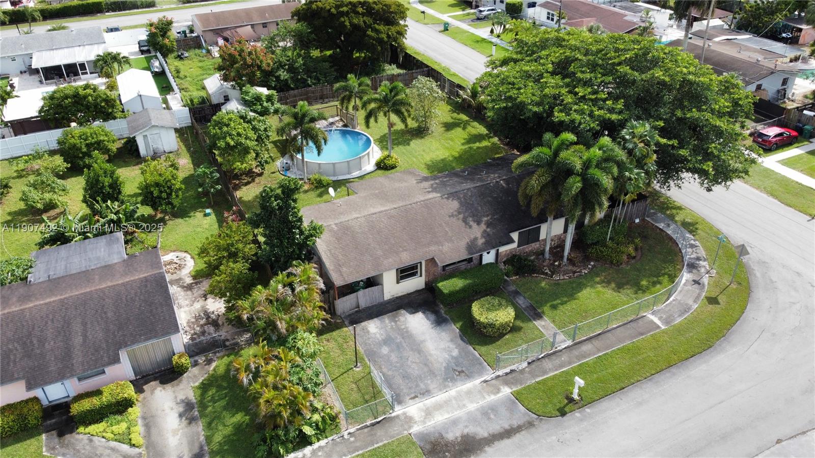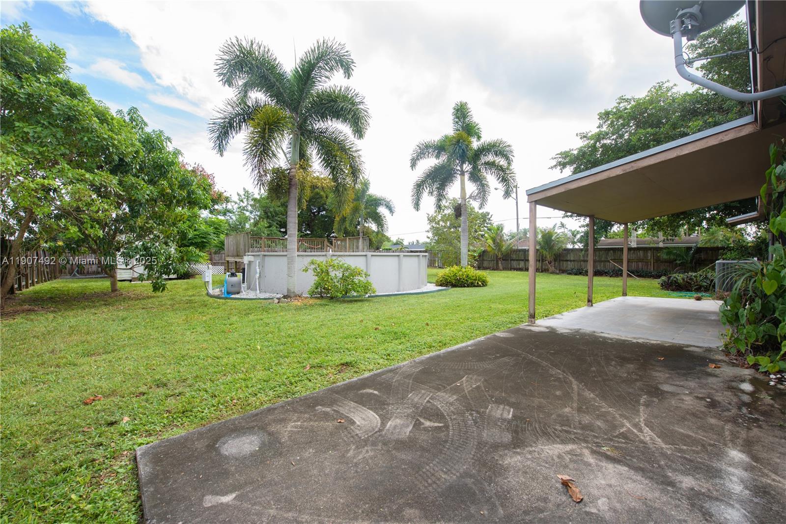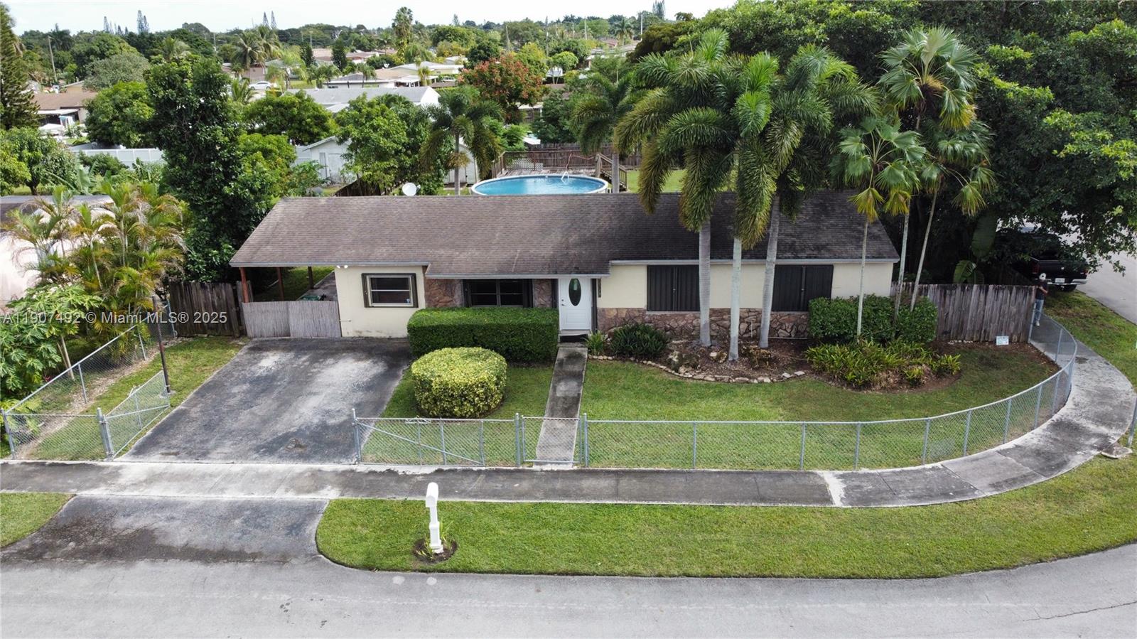 Beautiful 3/2 home in desirable Alfie Manor! Spacious layout with living & dining rooms, family room, and sliding doors to a lovely covered patio. Bright kitchen features light oak cabinets & pantry. Master suite offers walk-in & linen closets, plus a tub/shower bath. Secondary bedrooms with wall-to-wall closets. Enjoy a fenced corner lot with carport, front yard, shed, pool deck (as is), and fruit trees—banana, mango, coconut & avocado! PROOF OF FUNDS AND/OR PRE-APPROVAL LETTER REQUIRED PRIOR TO SCHEDULING A SHOWING OF THE PROPERTY.