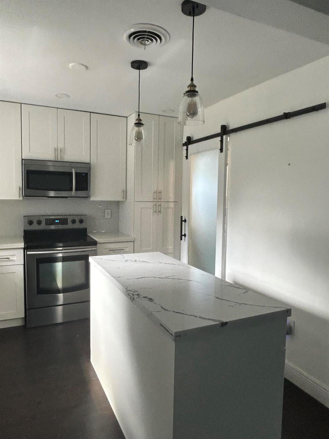 Contemporary 3/2 with pool in desirable Hollywood Hills. No HOA Motivated Seller. Updated kitchen with stainless, Island, ample storage, barn door access to large laundry room, French Doors lead out to the pool and porch with pavers and outdoor kitchen with built in grill. A/C smart thermostat ,impact windows, custom frosted doors and levers throughout, vinyl flooring throughout. Motion detector lighting. I1 car garage with circular driveway. Roof and A/C 2016.Minutes from I95 and Hollywood Beach.Large lot approx. 9380 sq ft.TV and Speakers convey.